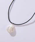 細めのコード紐とポイントのパールが女性らしいネックレス。