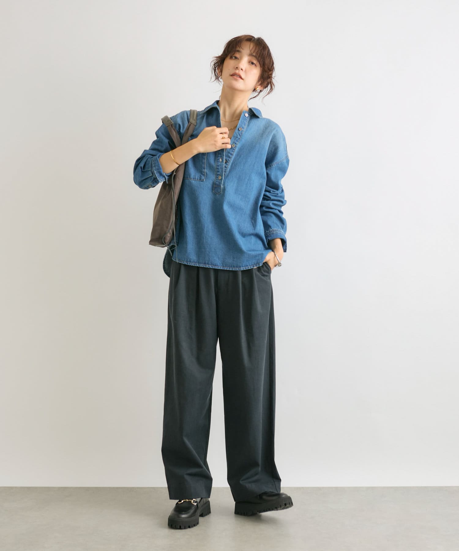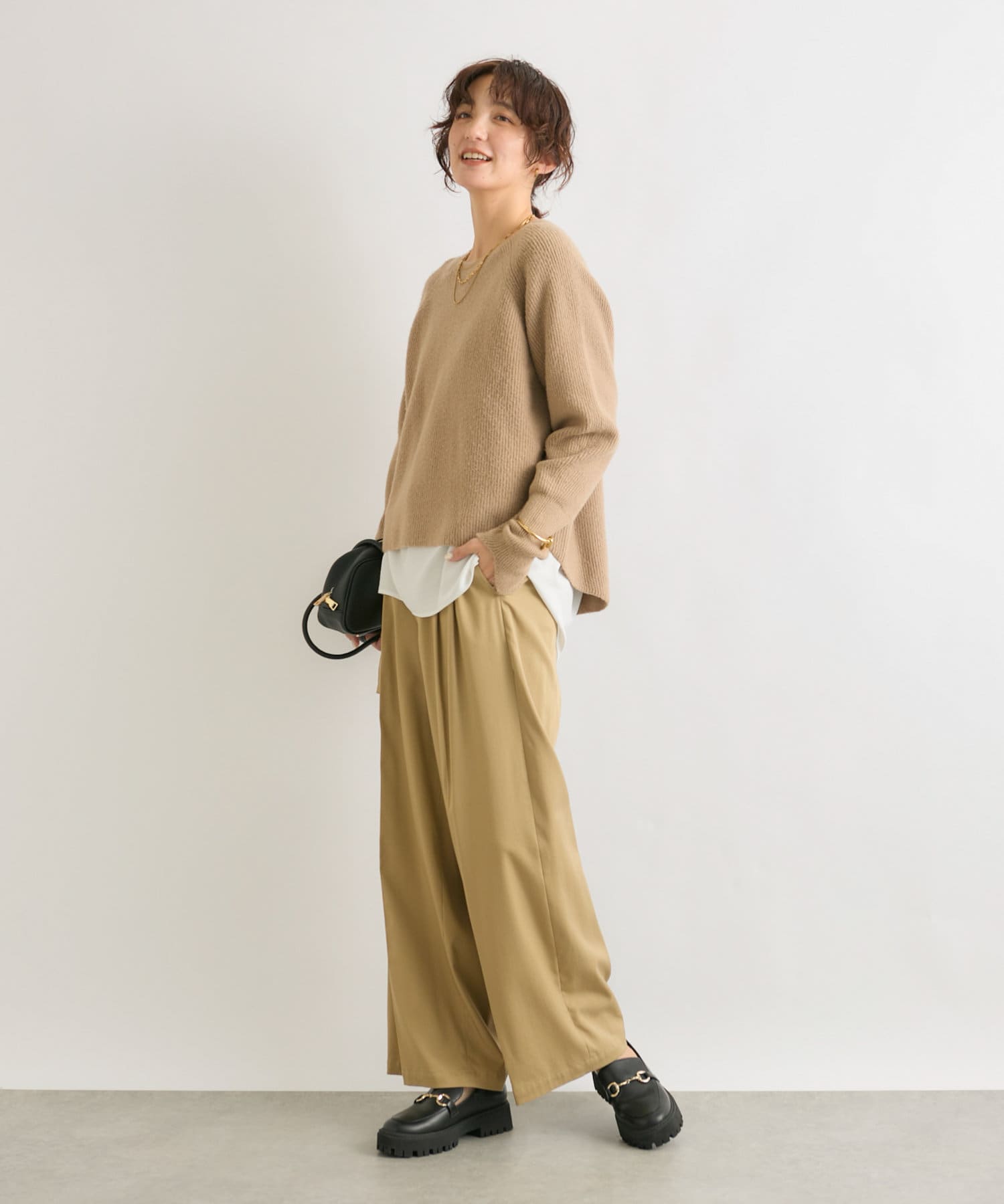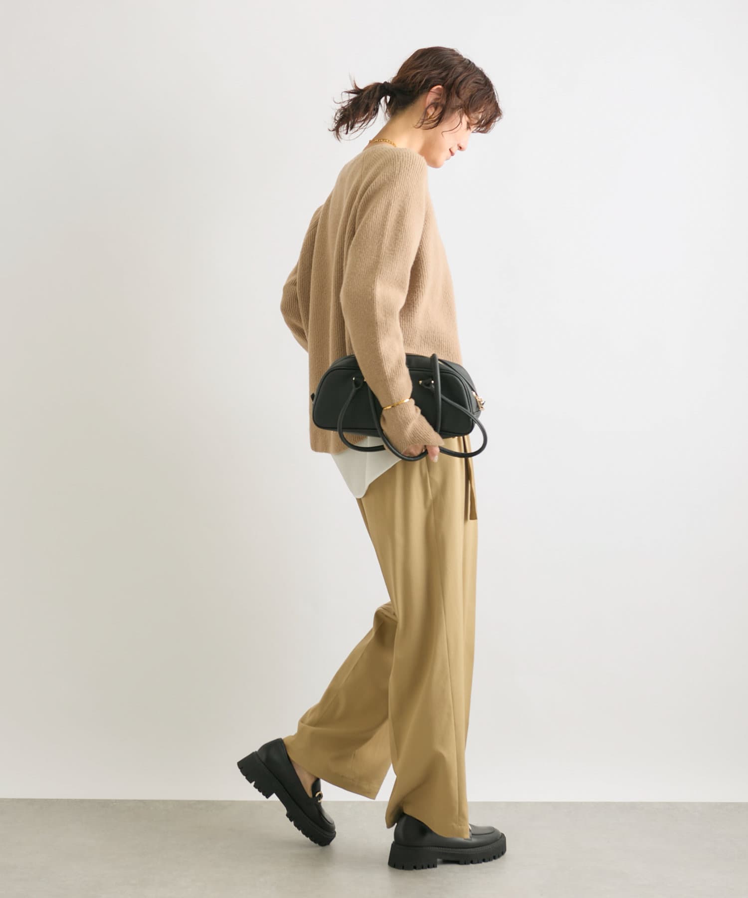 シンプルなタイトスカートだけでなく、ワイドパンツ等ボリュームのあるスタイリングに合わせていただくのもおすすめ。