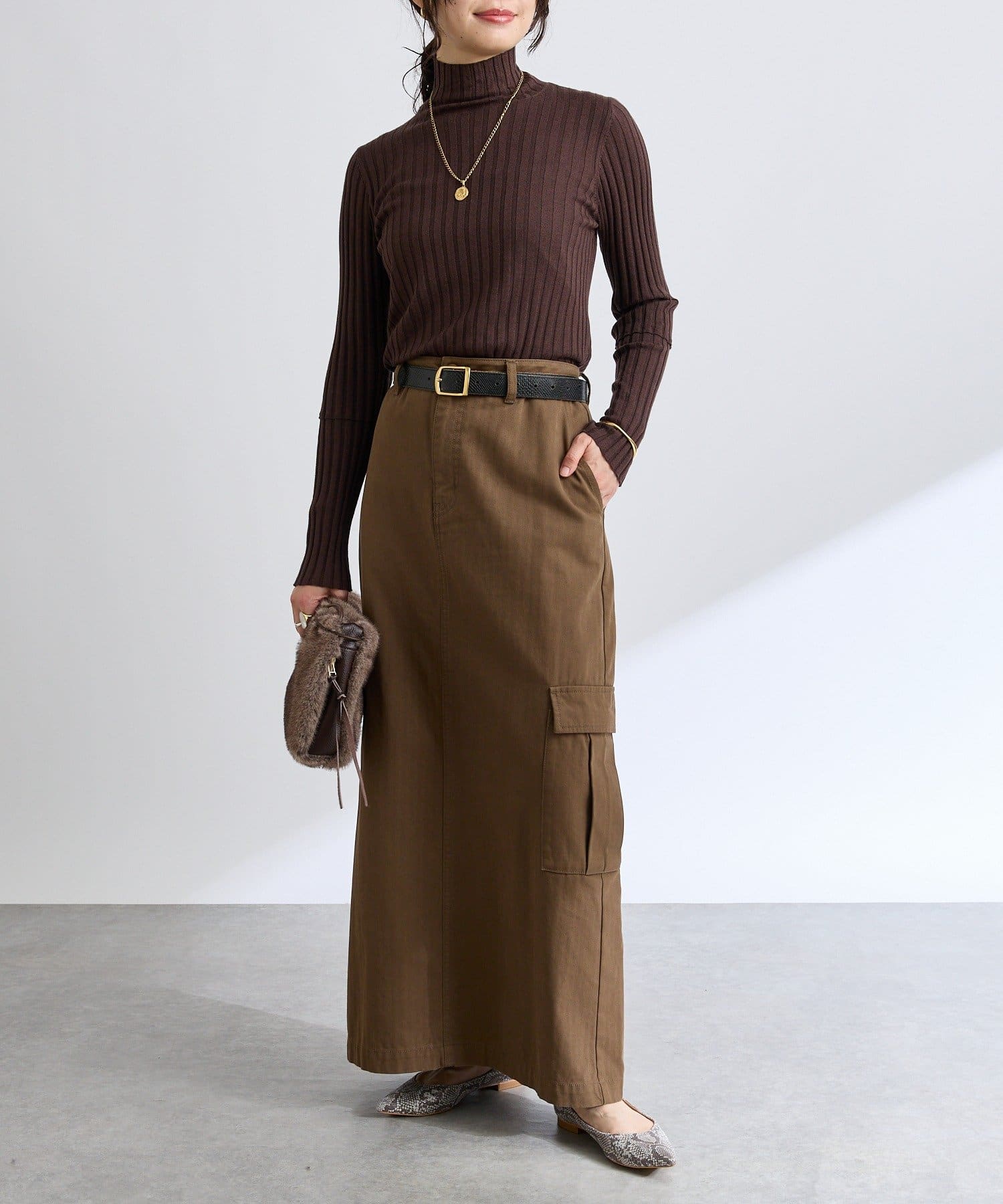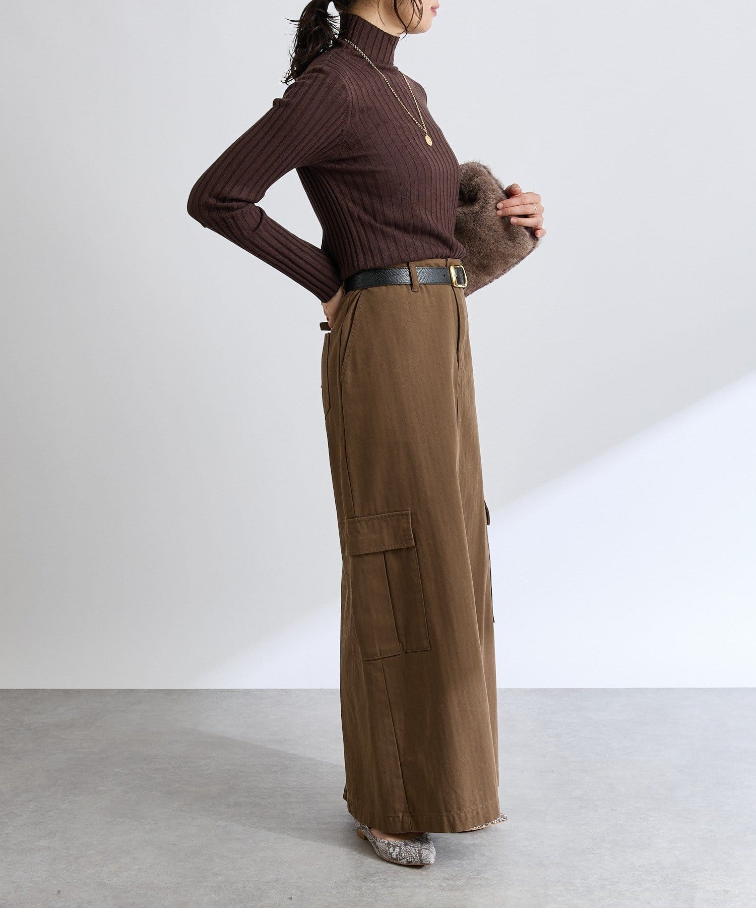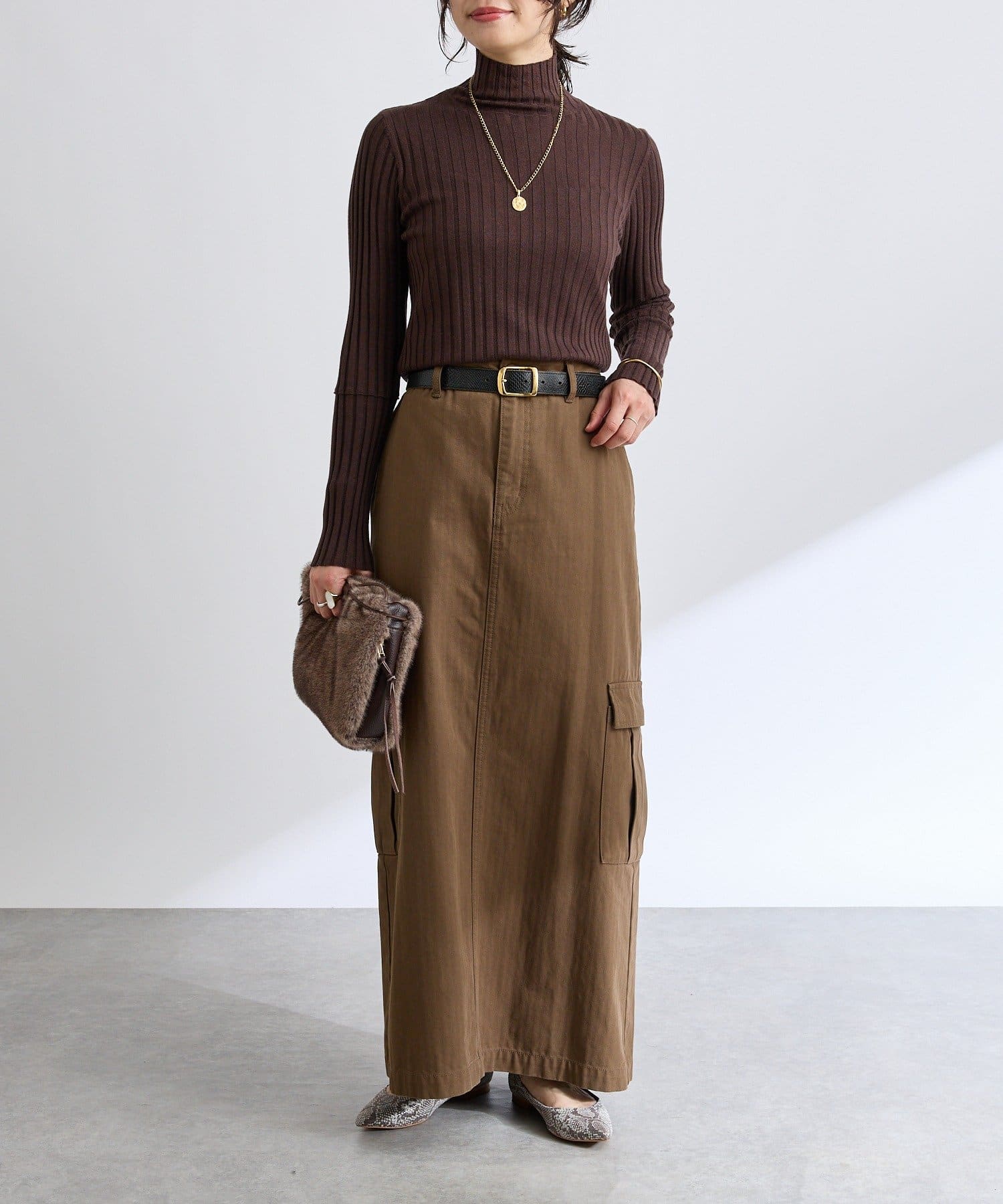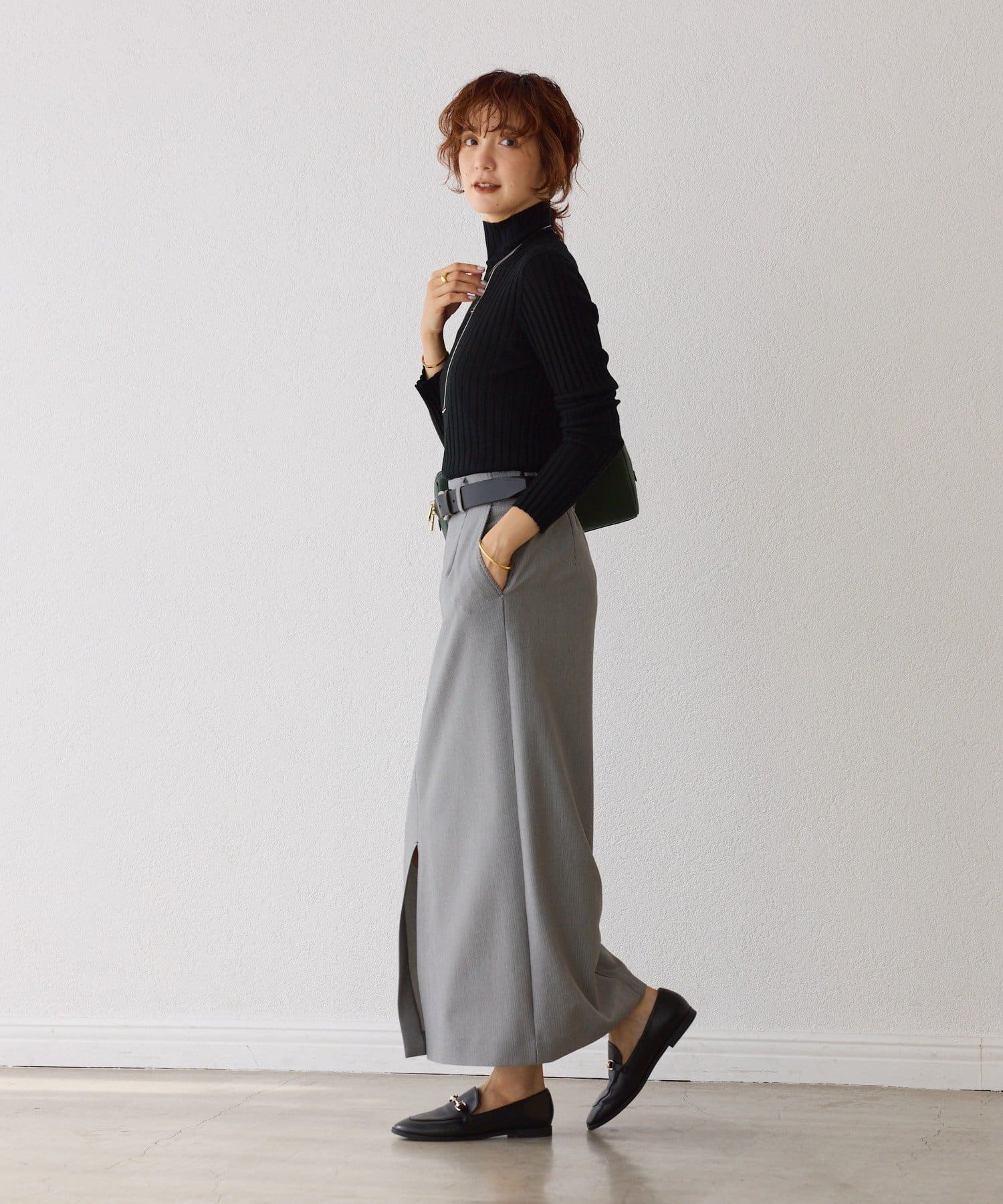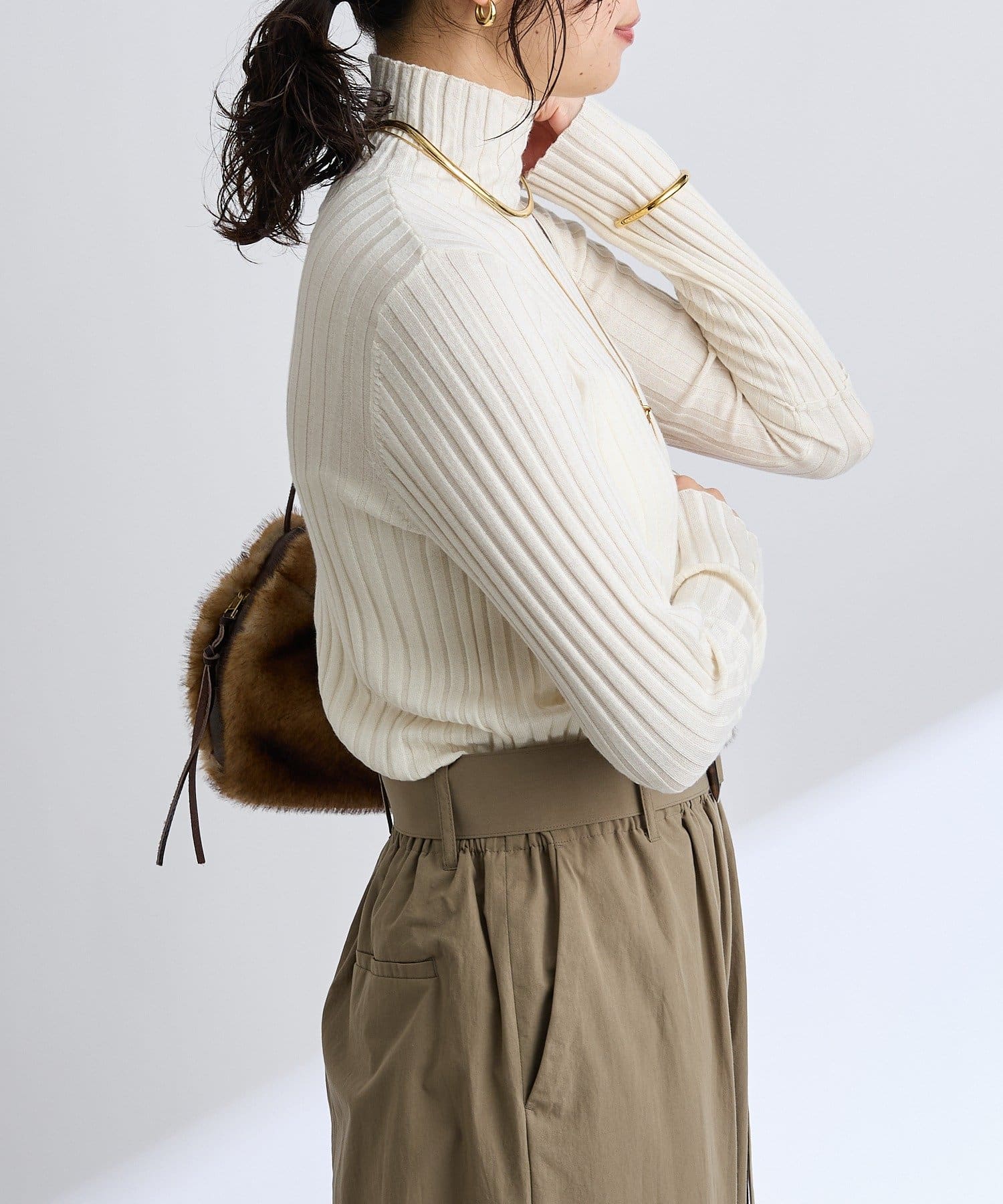 上品なニットなので、ON/OFFともに素敵に着用いただけます。