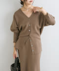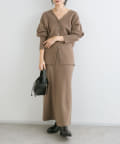 同じ編地を使用したとニュアンスフレアニットスカートとセットアップで着用いただくとフェミニン且つモードなスタイルを楽しんでいただけます。