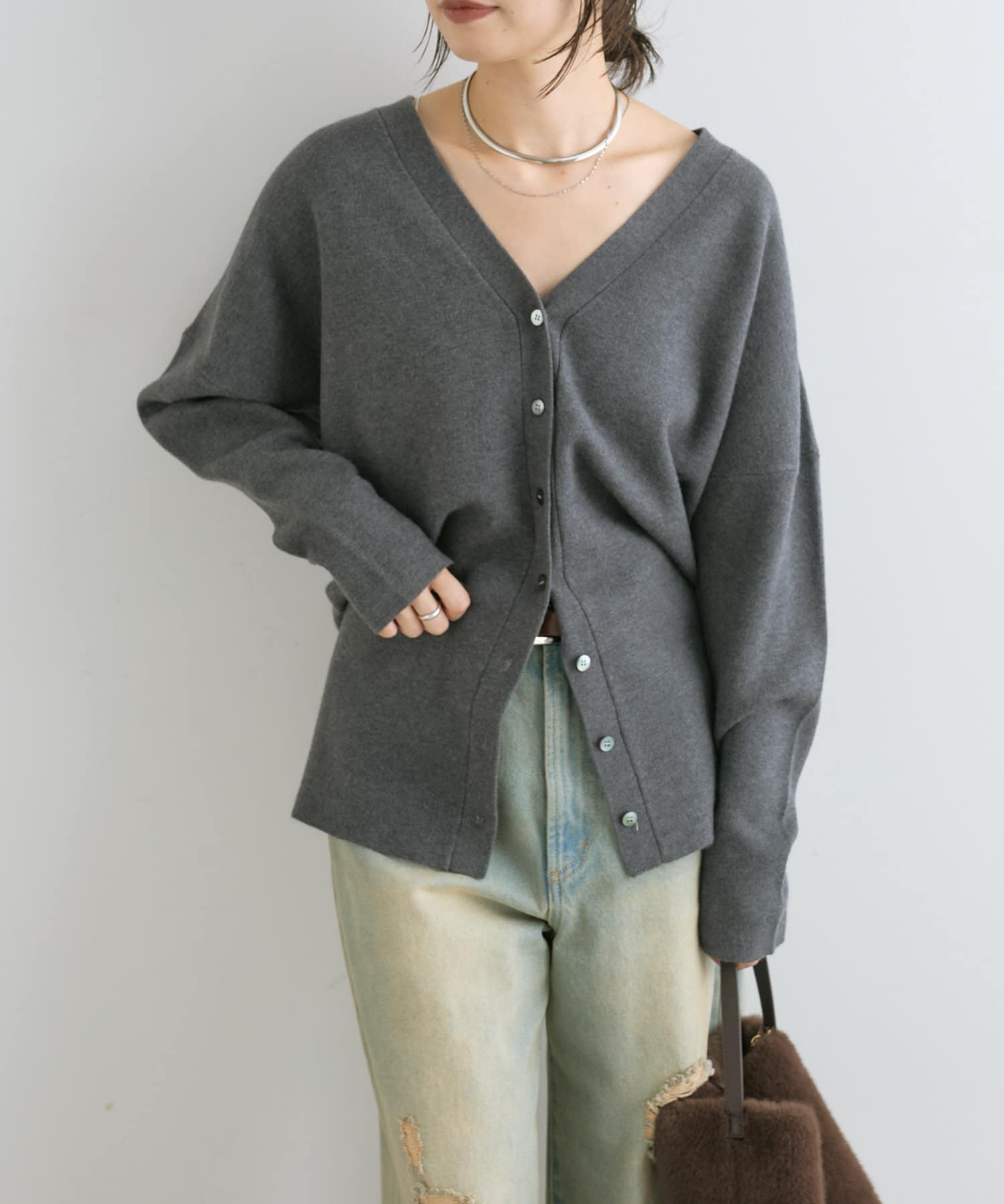 肌触りのいい素材感と、デザイン性のあるシルエットが特徴のカーデ