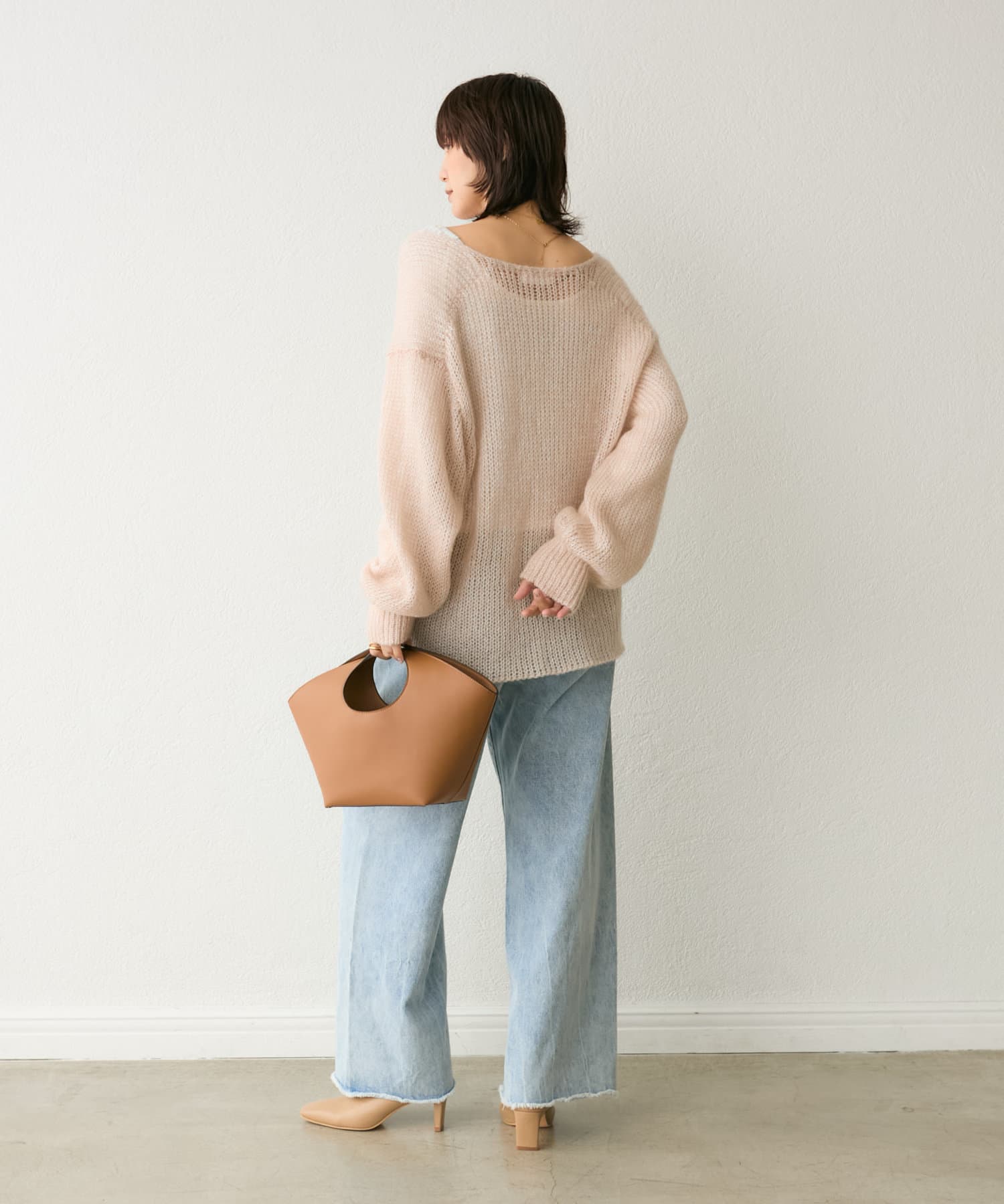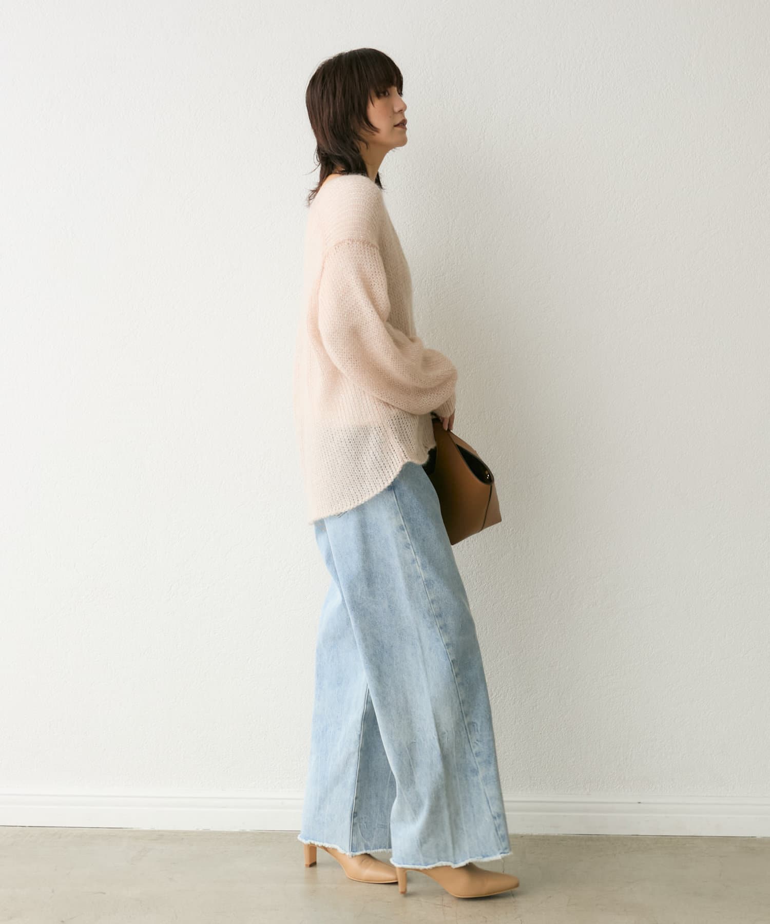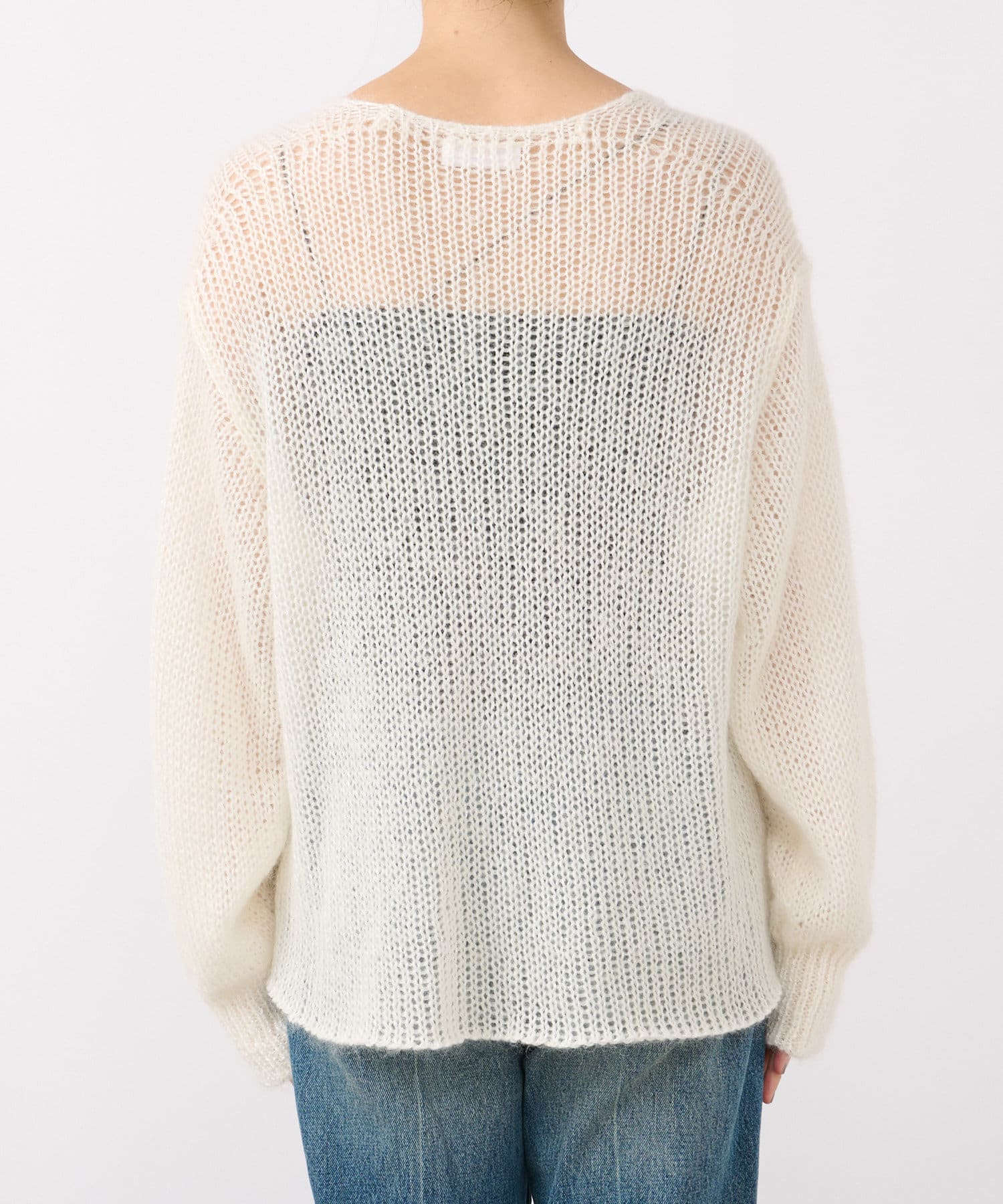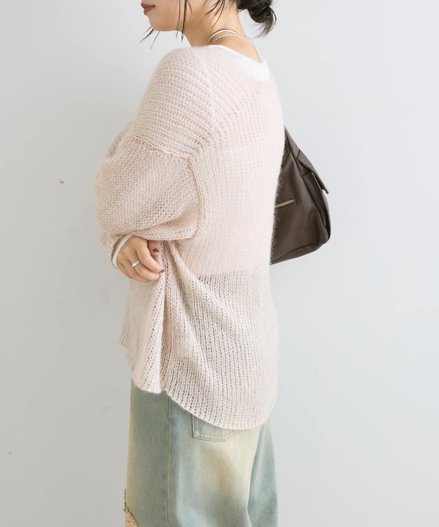 ブライトリリヤーンとモヘアを使用した透け感がかわいいプルオーバー。