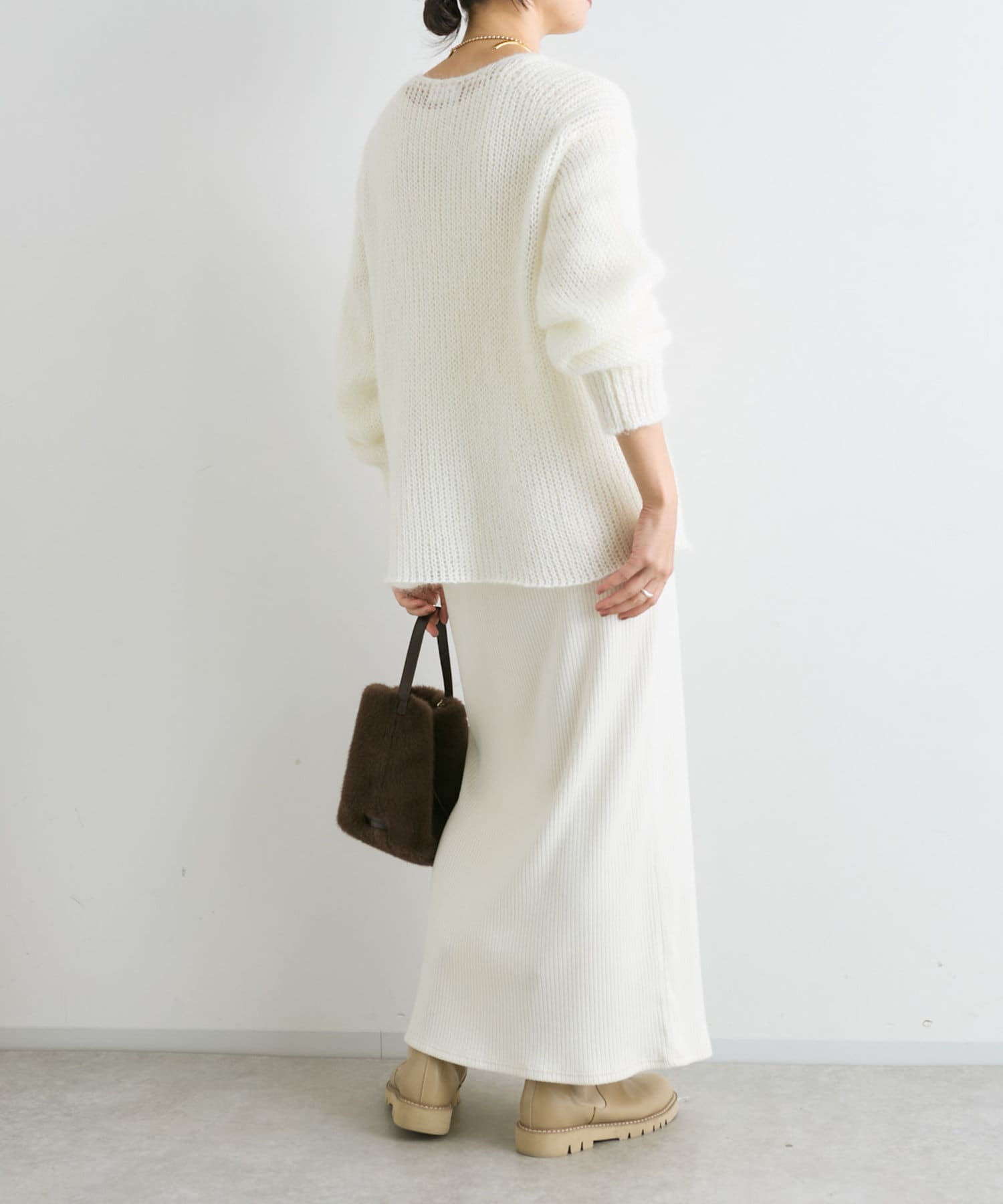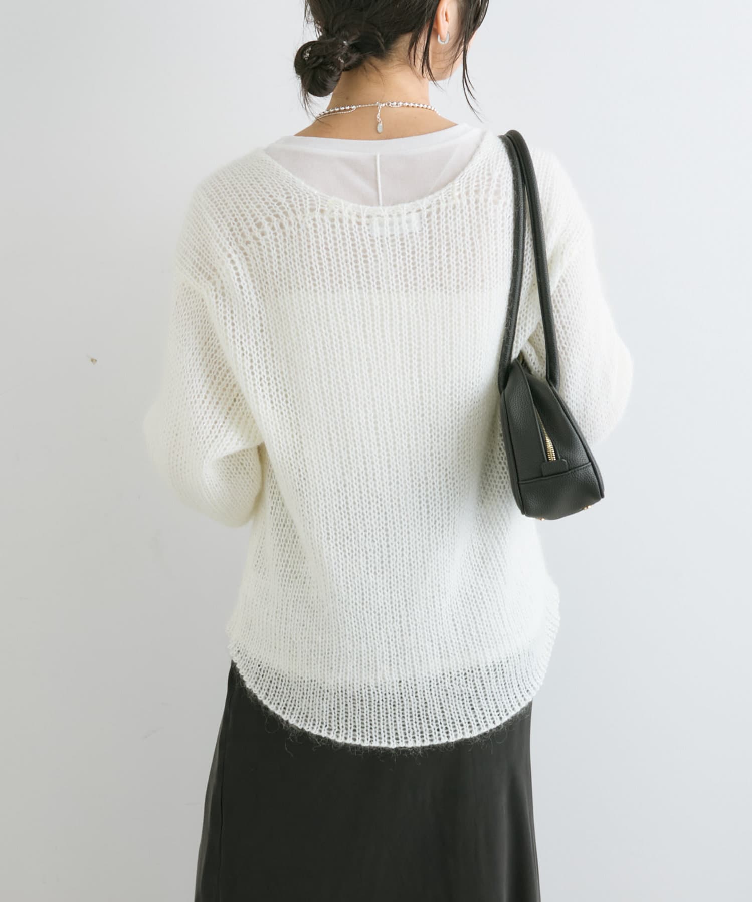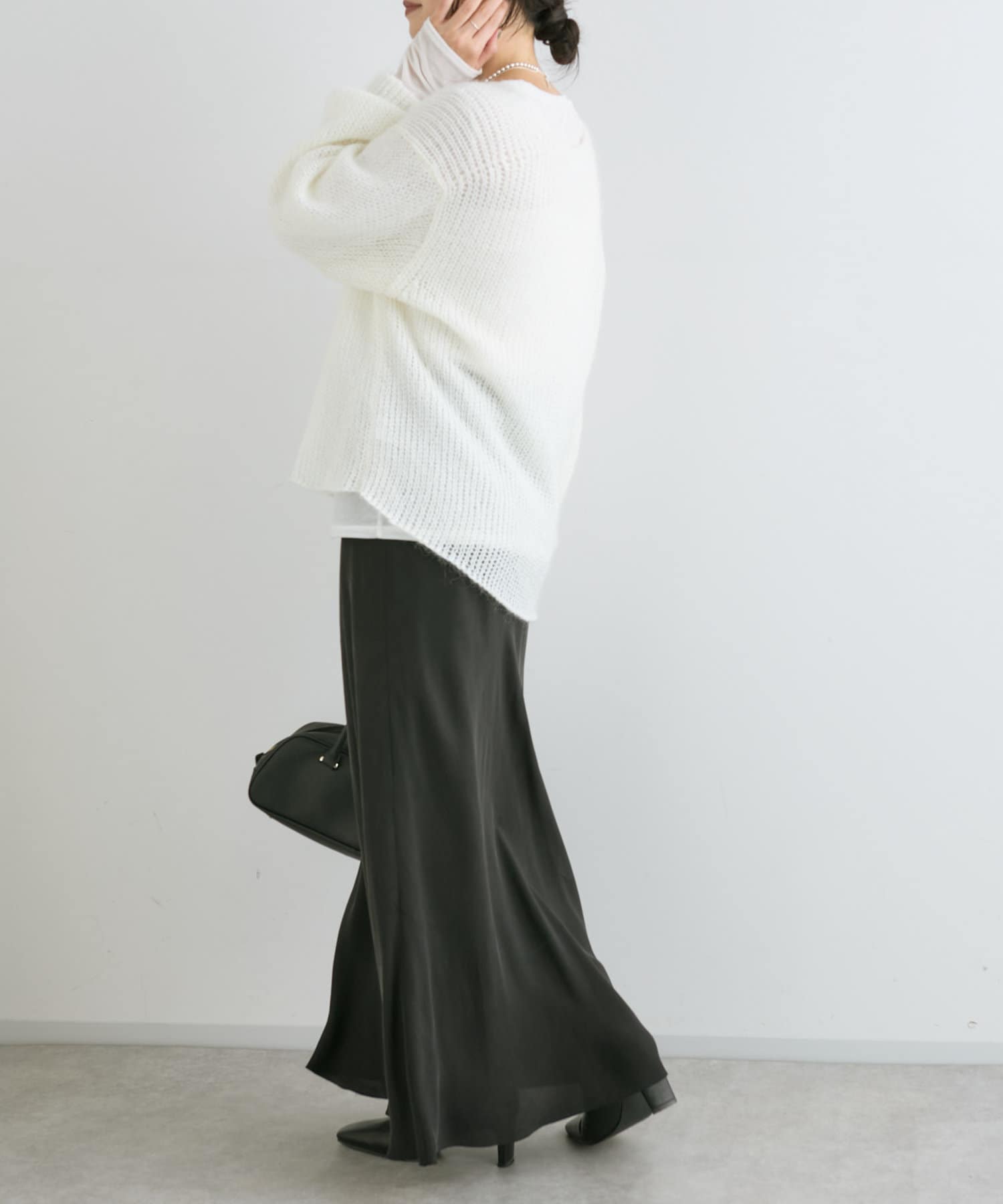 ※敏感肌の方は、ニットが直接肌に触れることでチクチク感じる場合がございますので、その場合はインナーにカットソーなどを合わせていただくことをおすすめいたします。