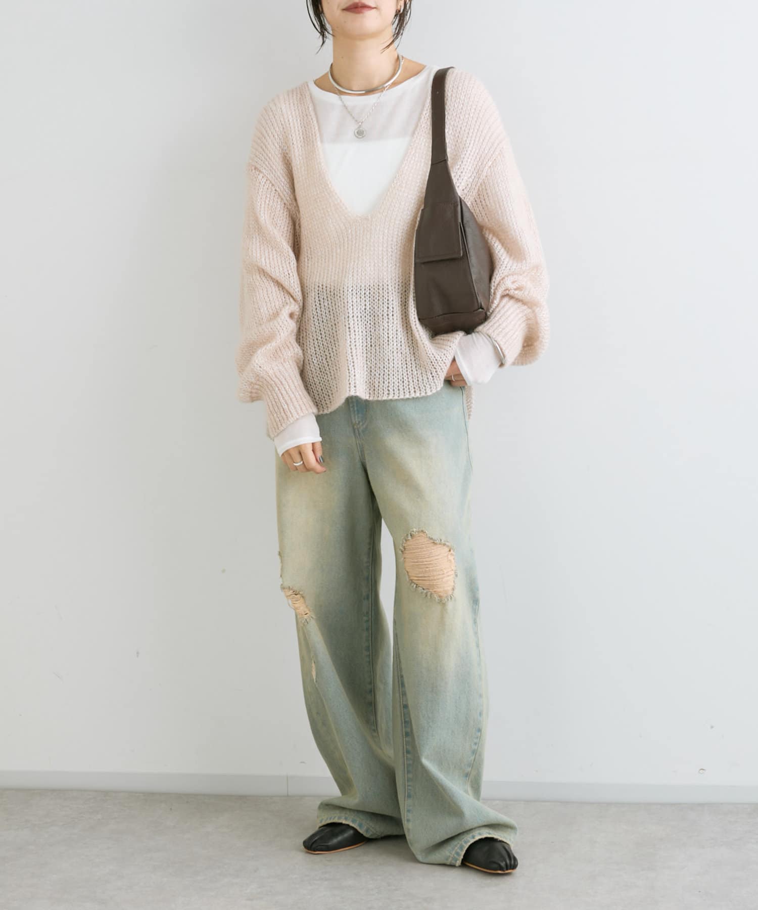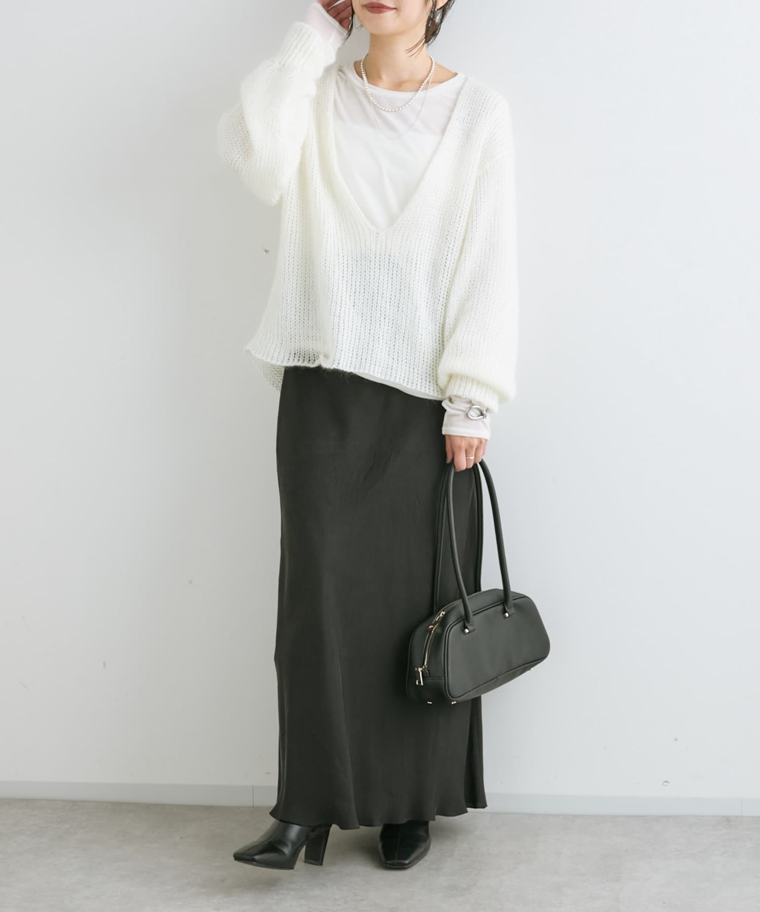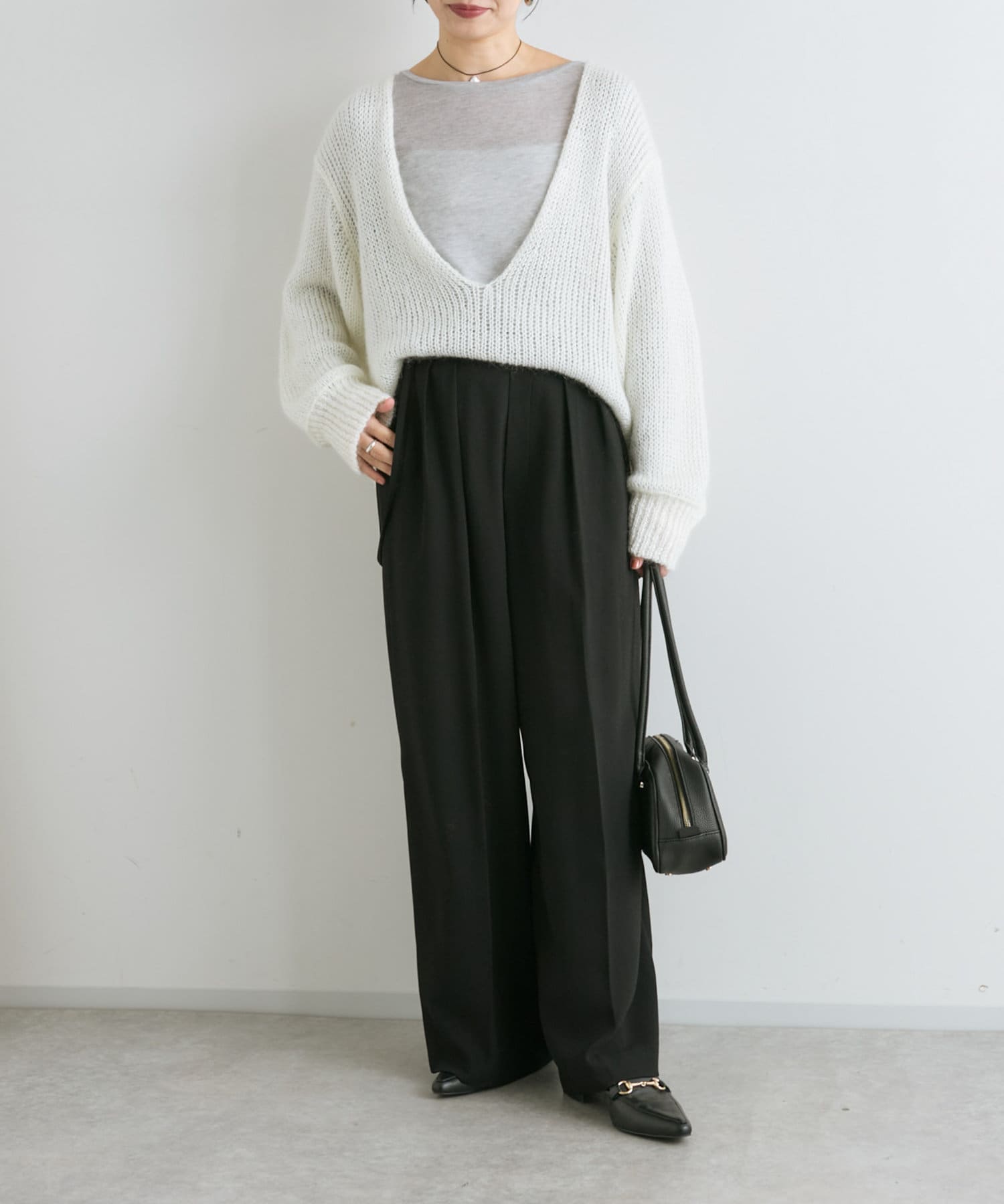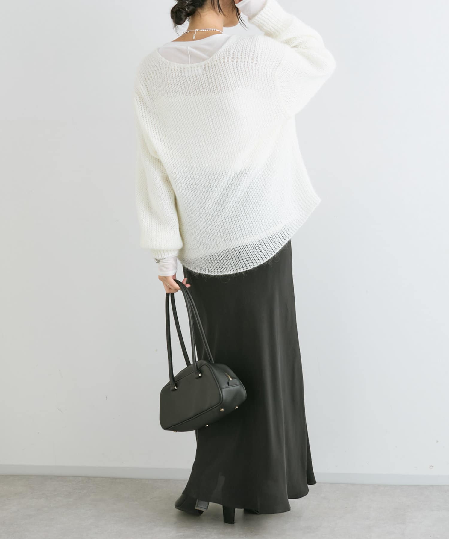 ※敏感肌の方は、ニットが直接肌に触れることでチクチク感じる場合がございますので、その場合はインナーにカットソーなどを合わせていただくことをおすすめいたします。