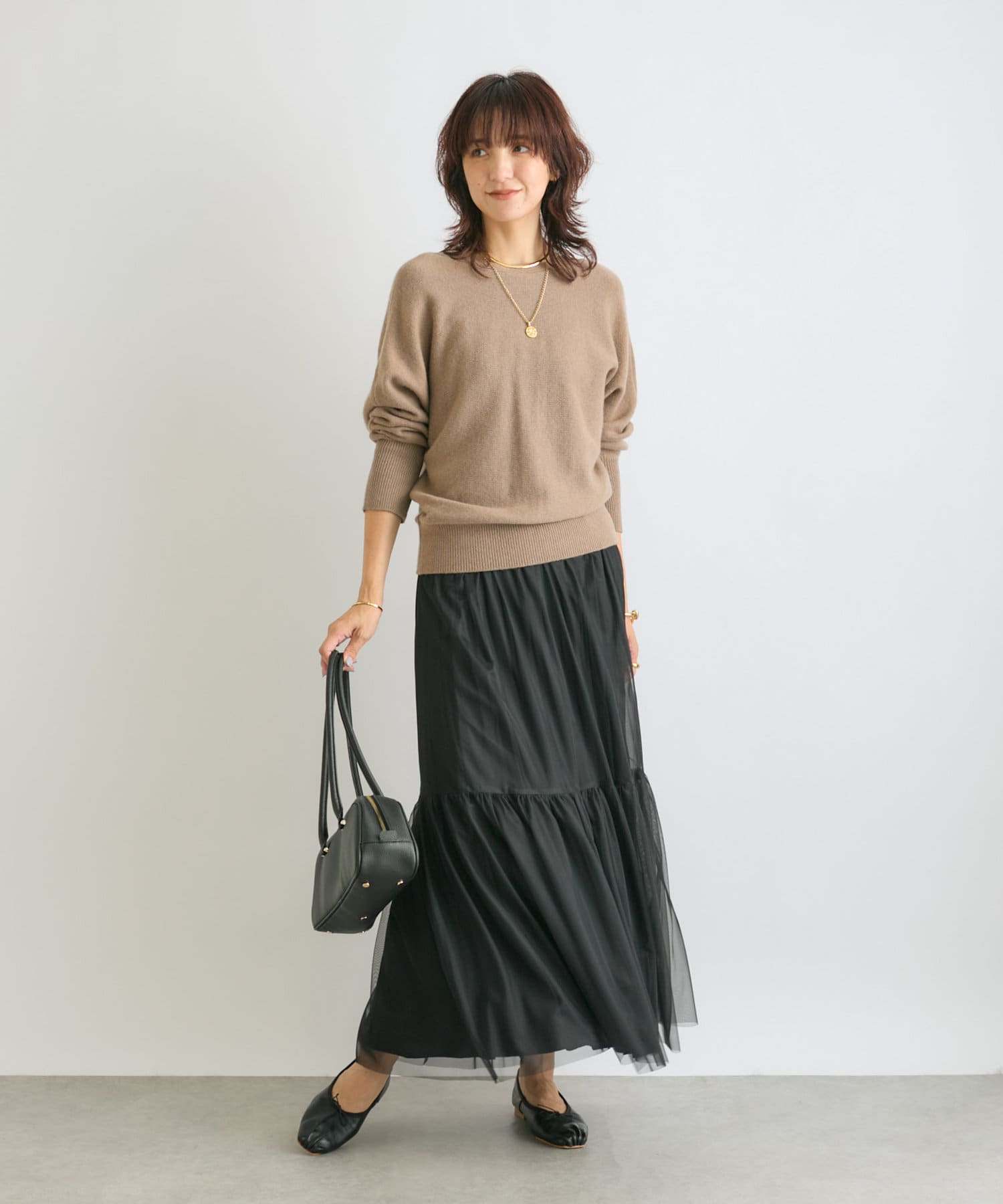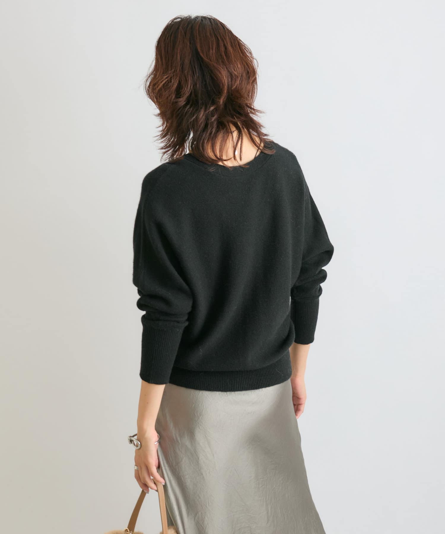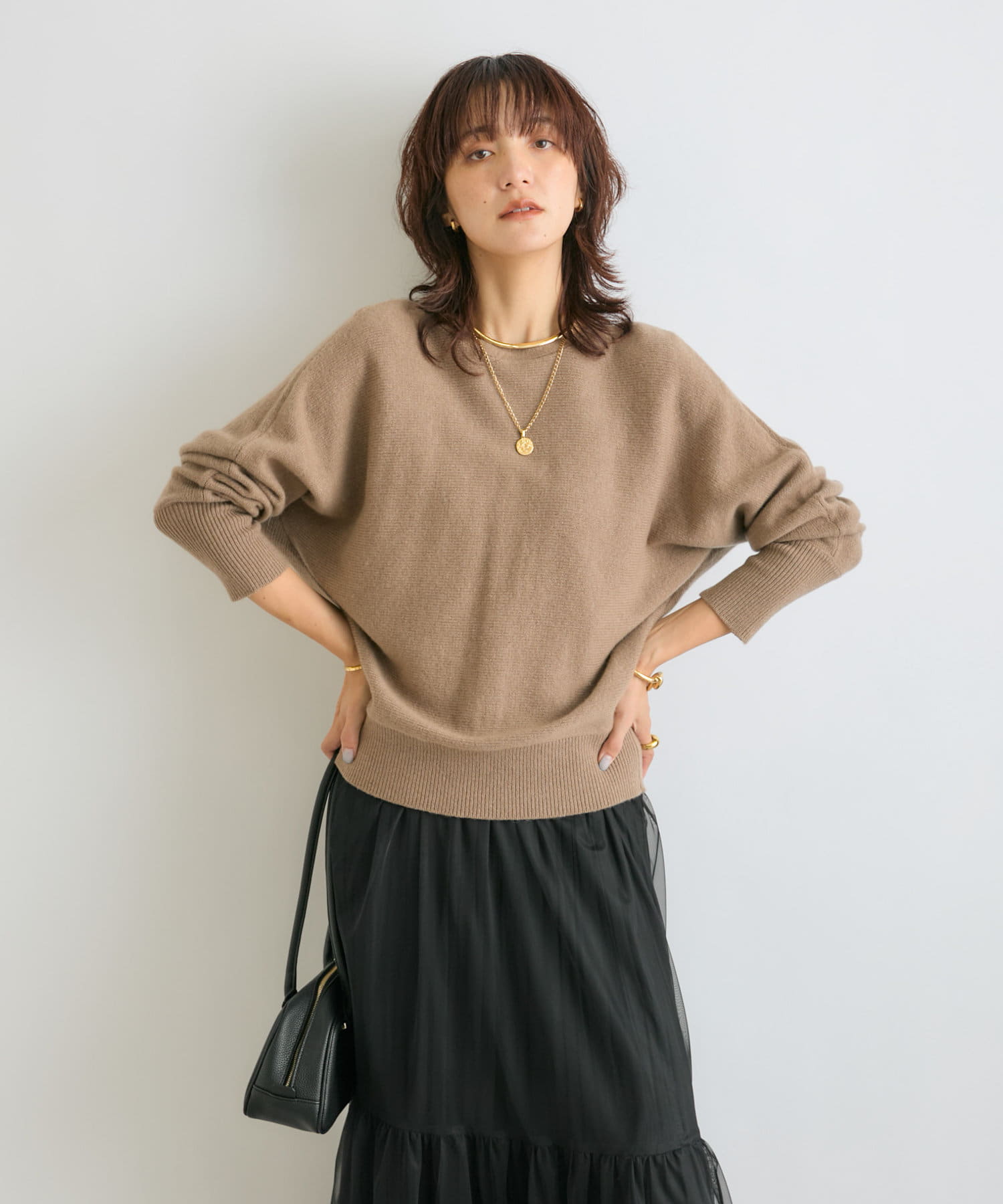 カシミヤブレンドの紡毛糸を使用した柔らかな冬のドルマンニット。