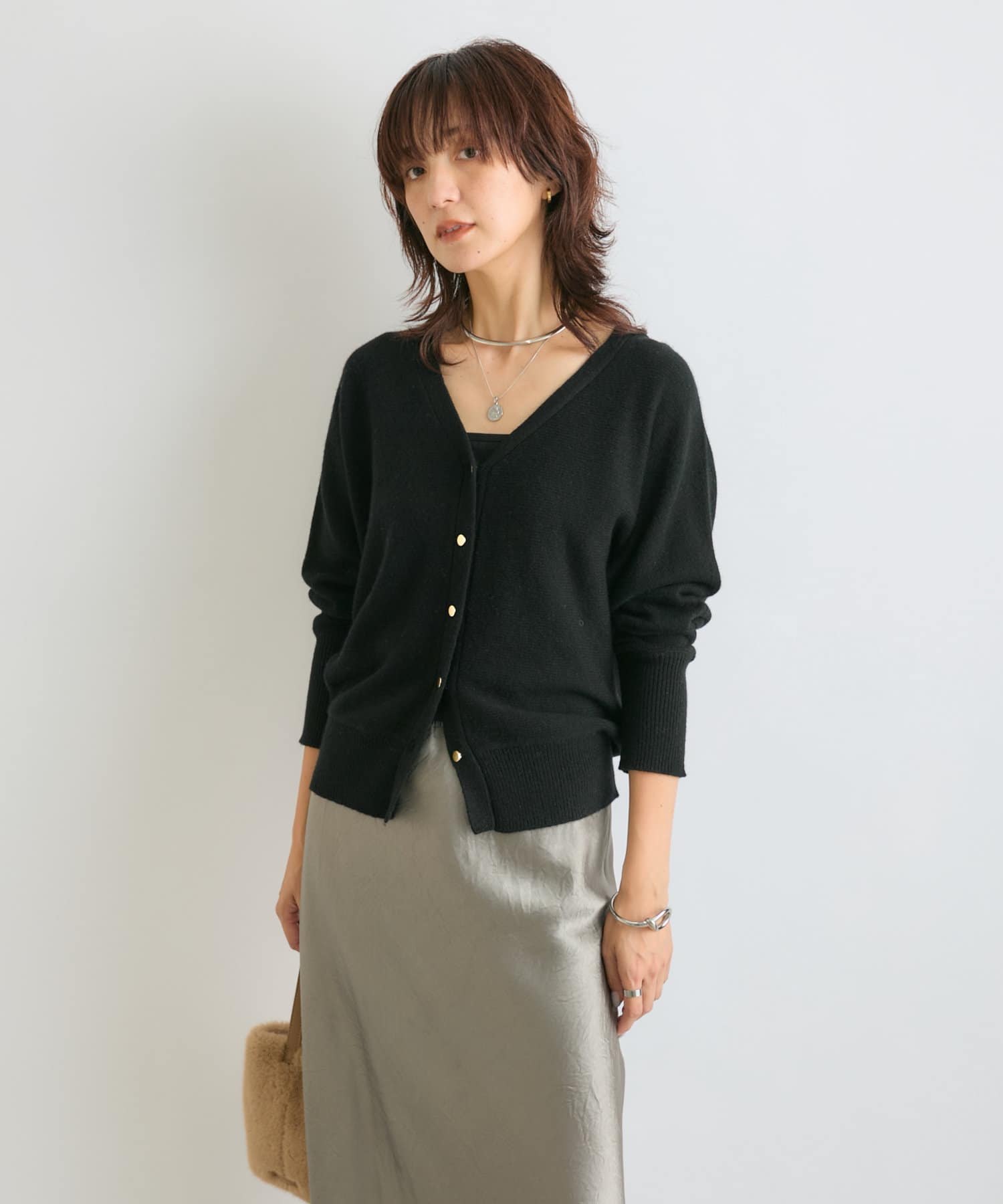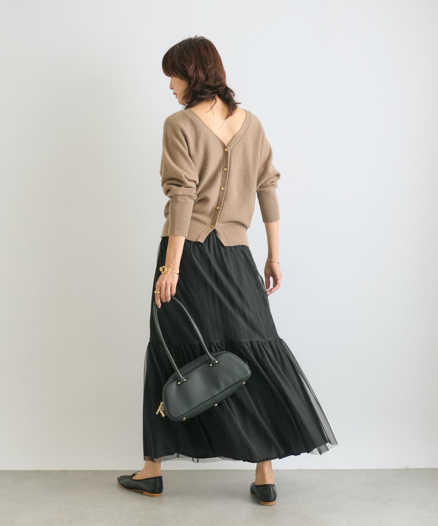 マットゴールドのボタンも品よく華やかなアクセントに。