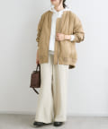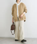 オーバーサイズが苦手な方は衿を抜いていただく着こなしもおすすめ。