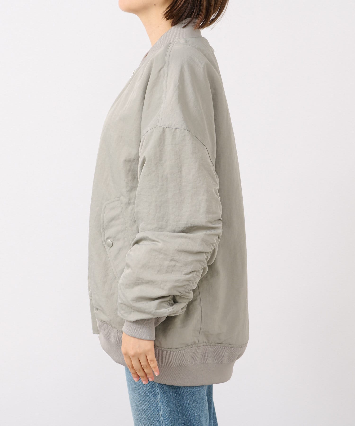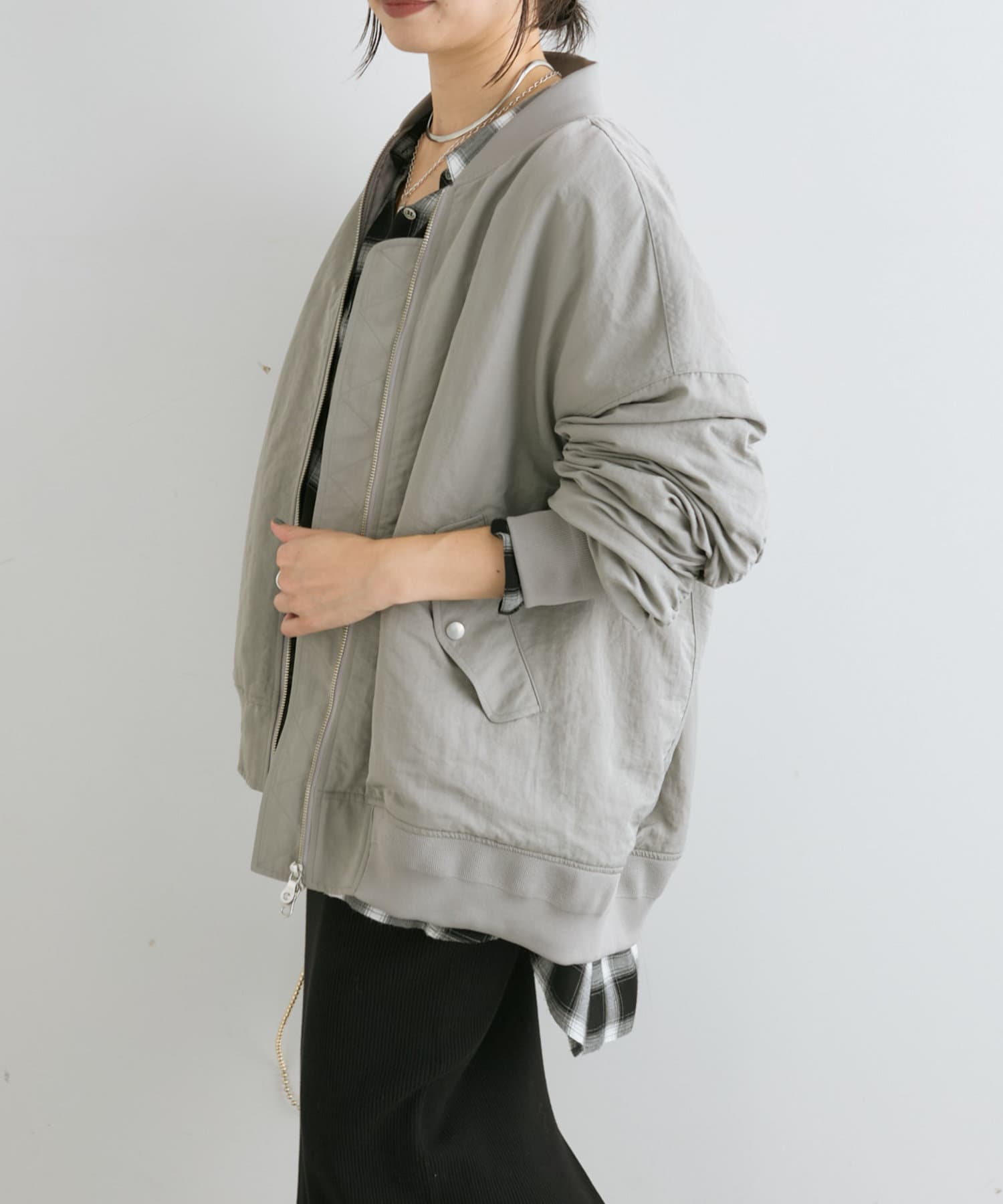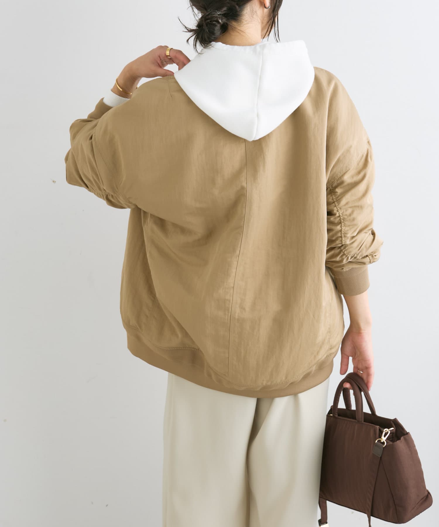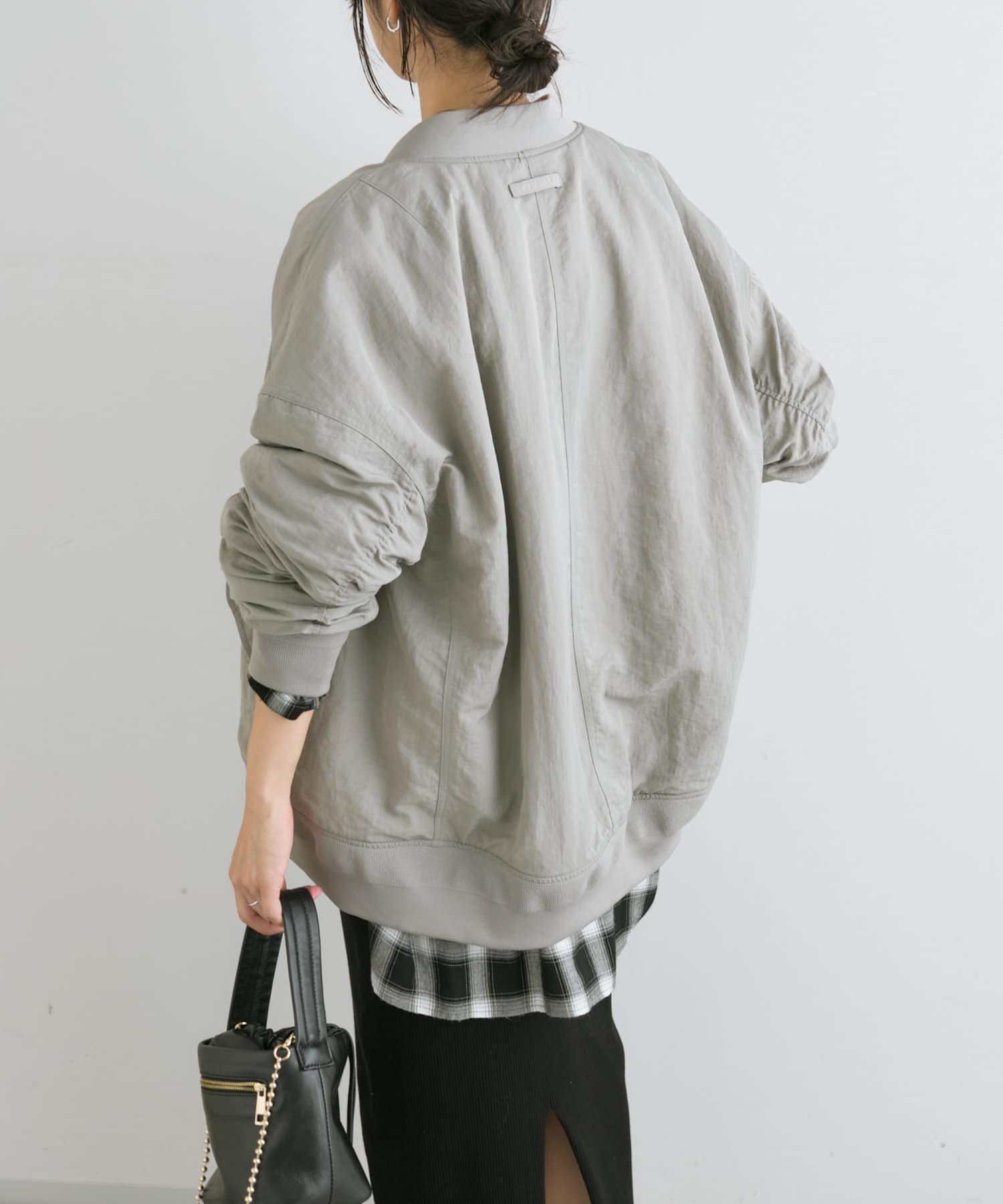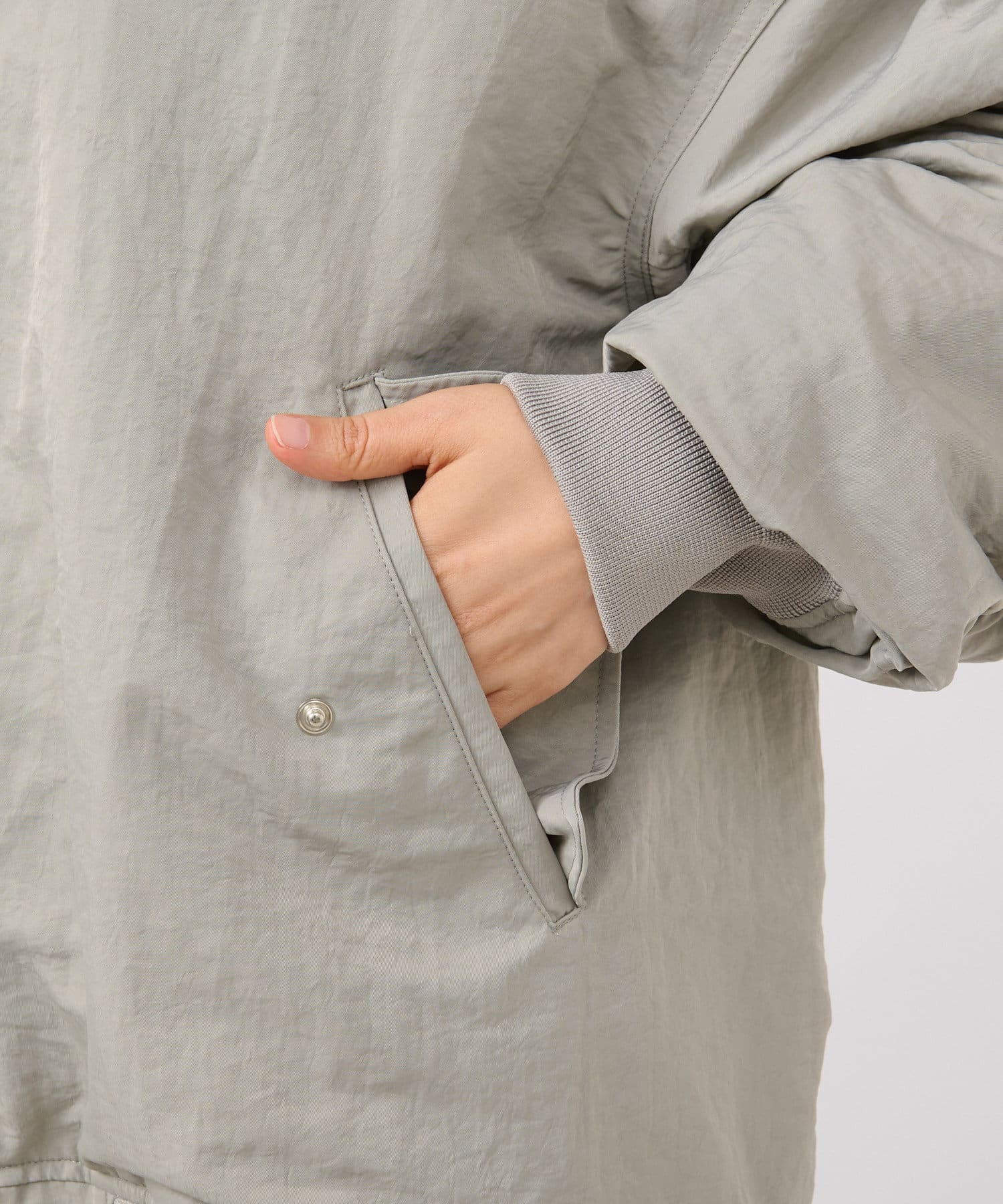 オーバーサイズでもハードにならないようにソフトタッチのナイロンツイルを使用。軽い着用感にもこだわった1着です。