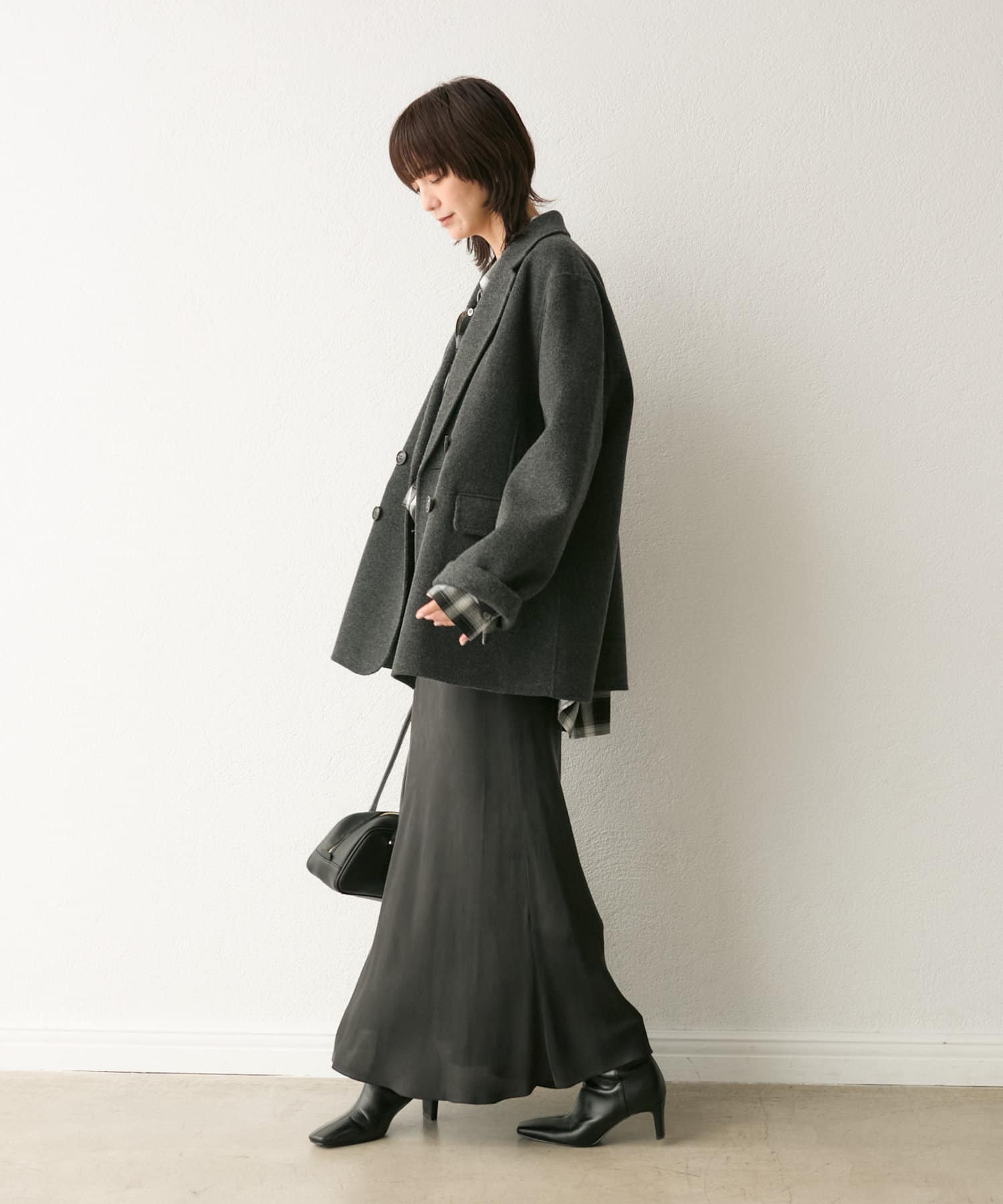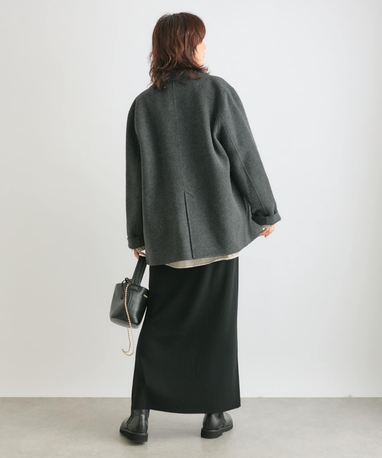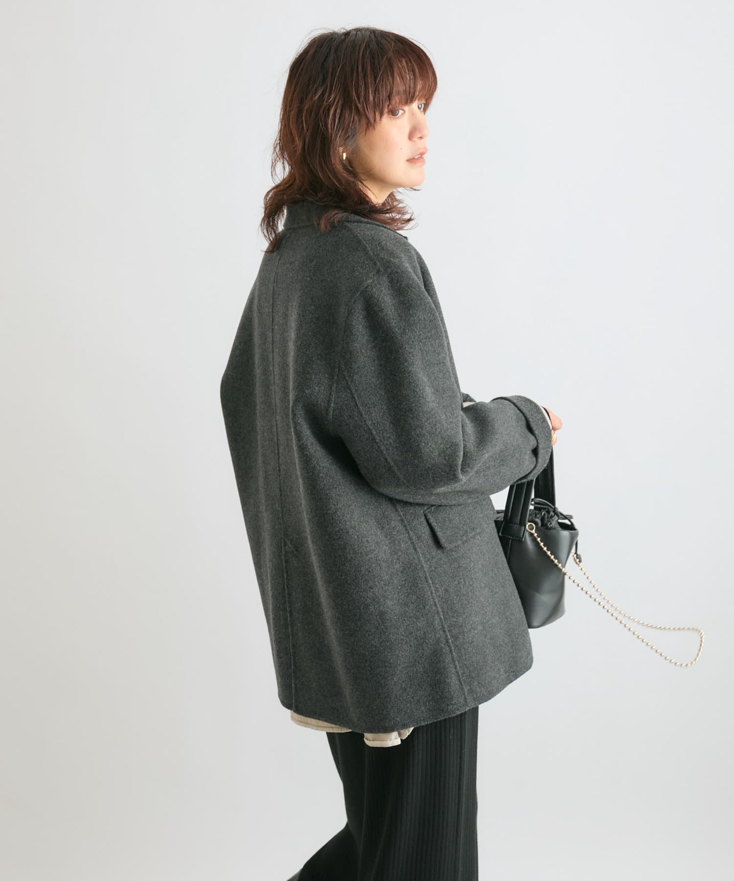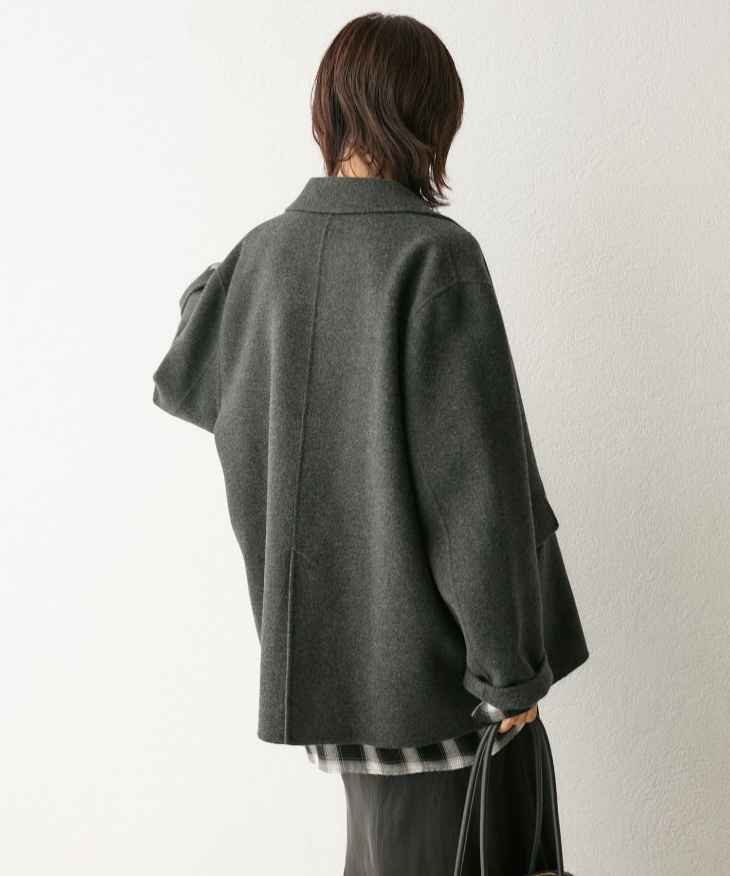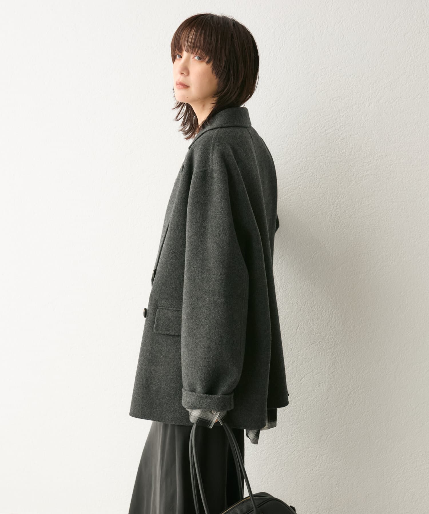 ややオーバーなシルエットに拘り、羽織るだけで女性らしい抜け感と丸みがでるようになっています。