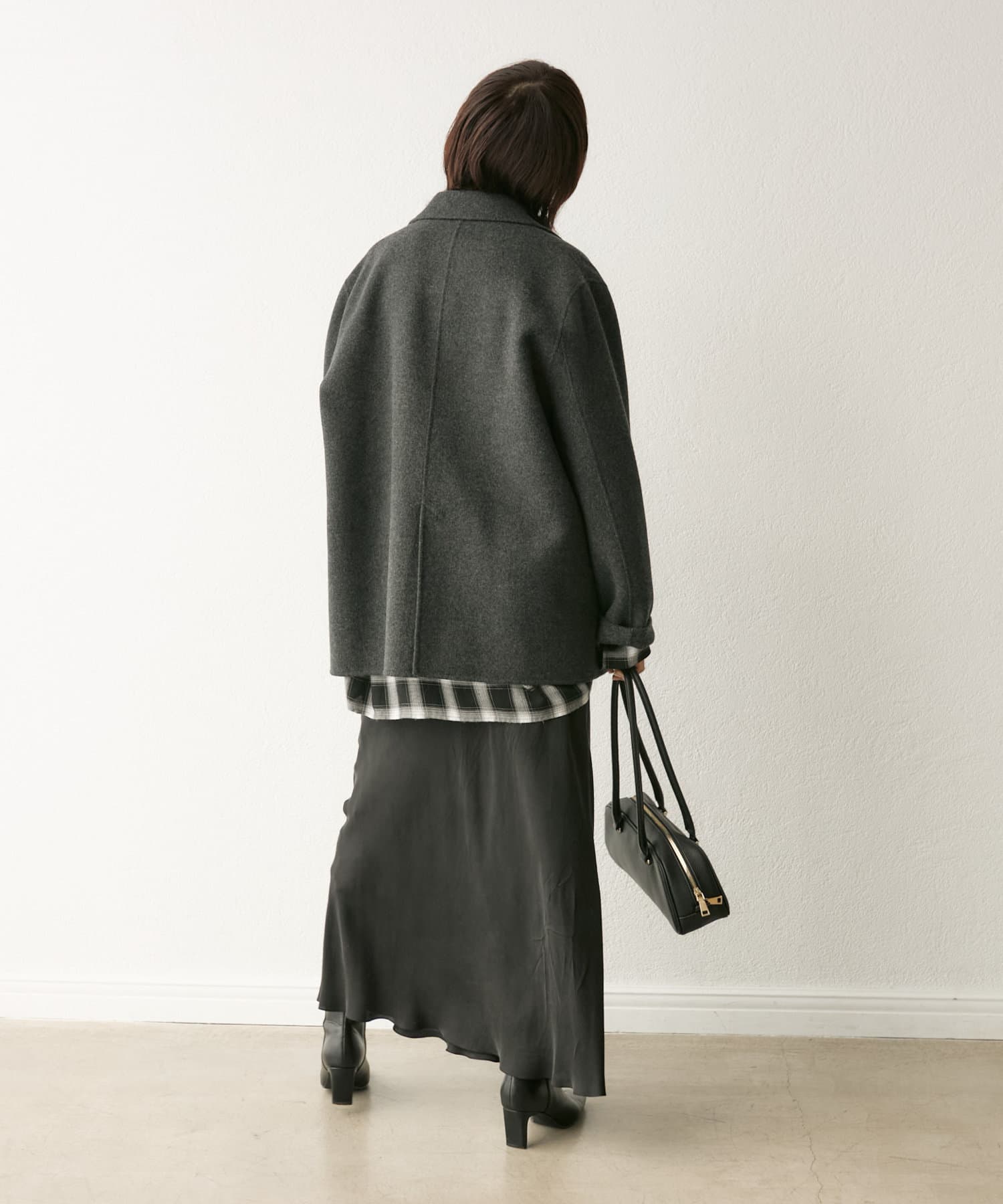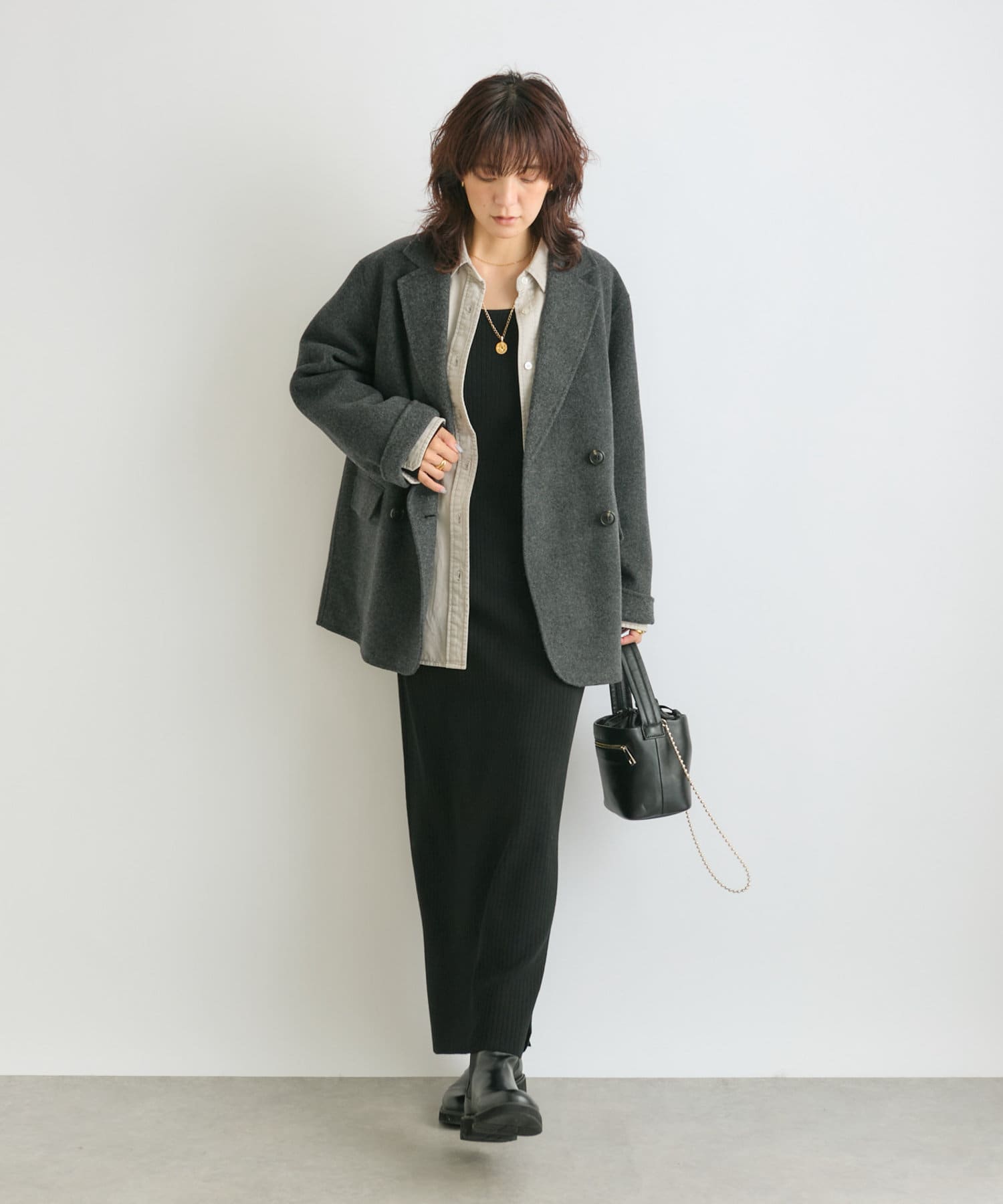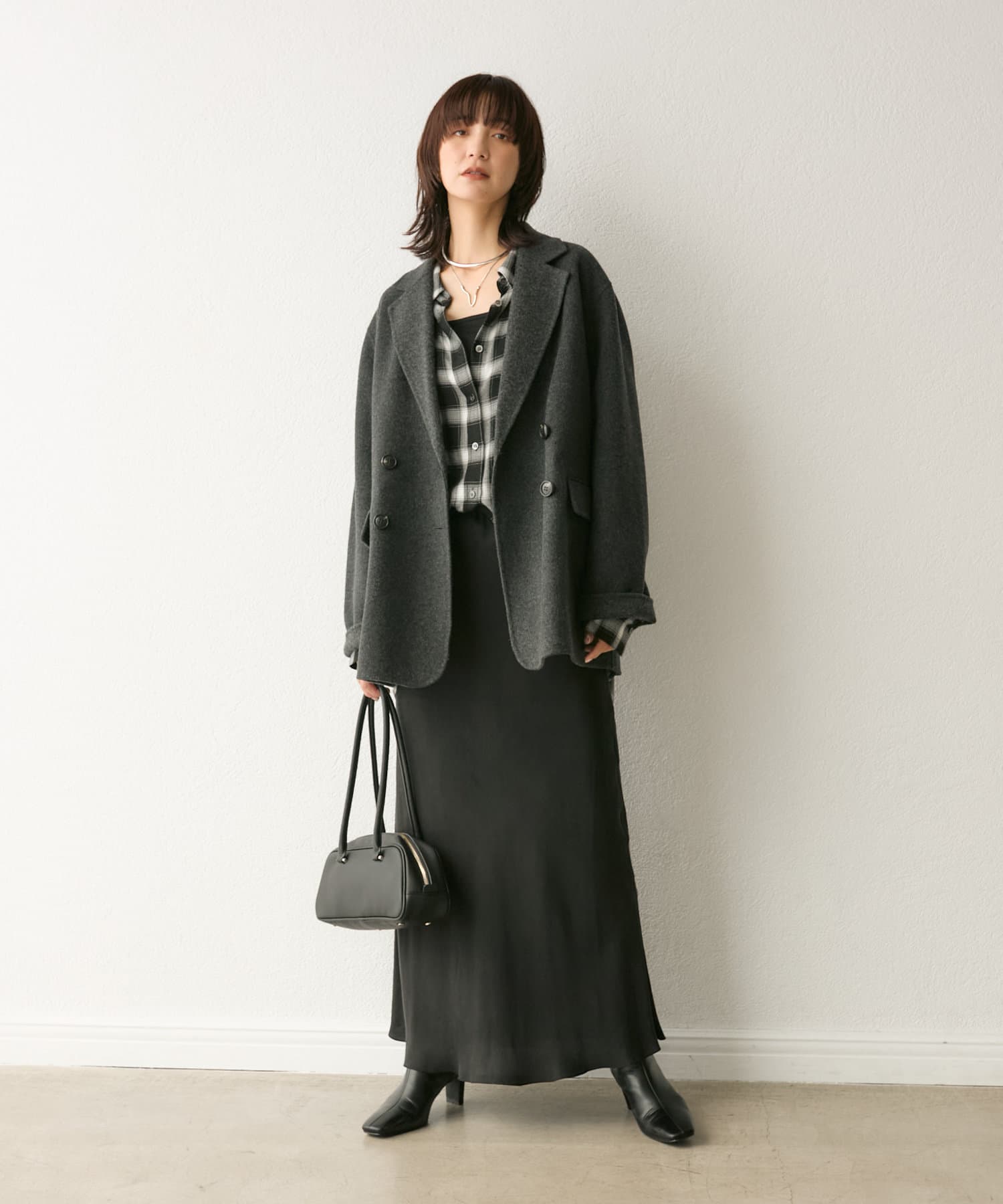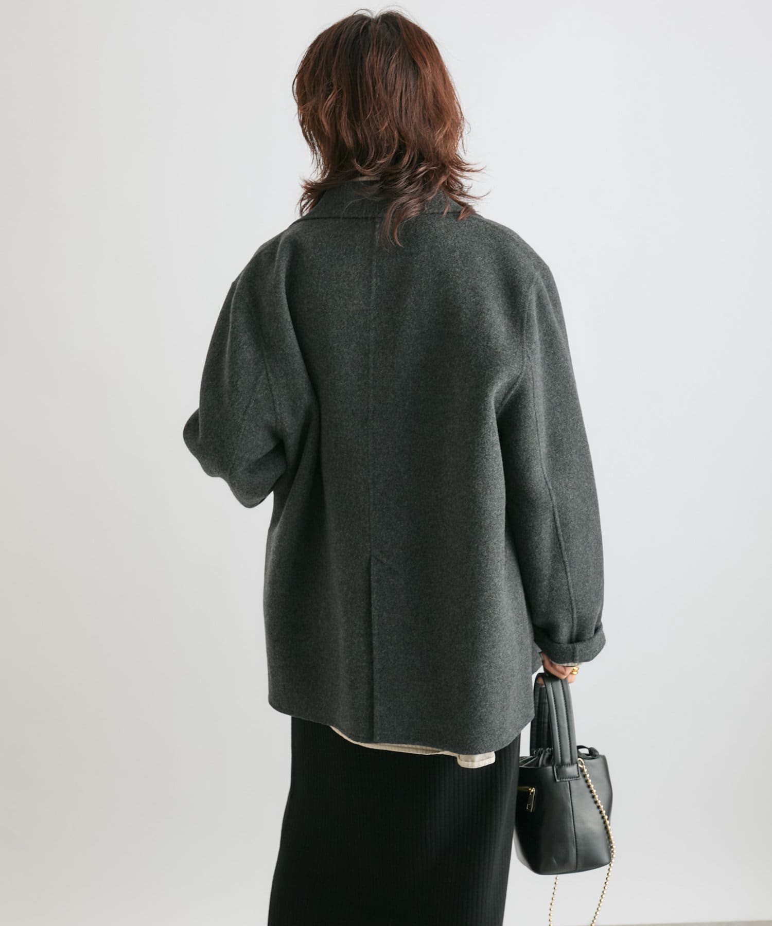 ややオーバーなシルエットに拘り、羽織るだけで女性らしい抜け感と丸みがでるようになっています。