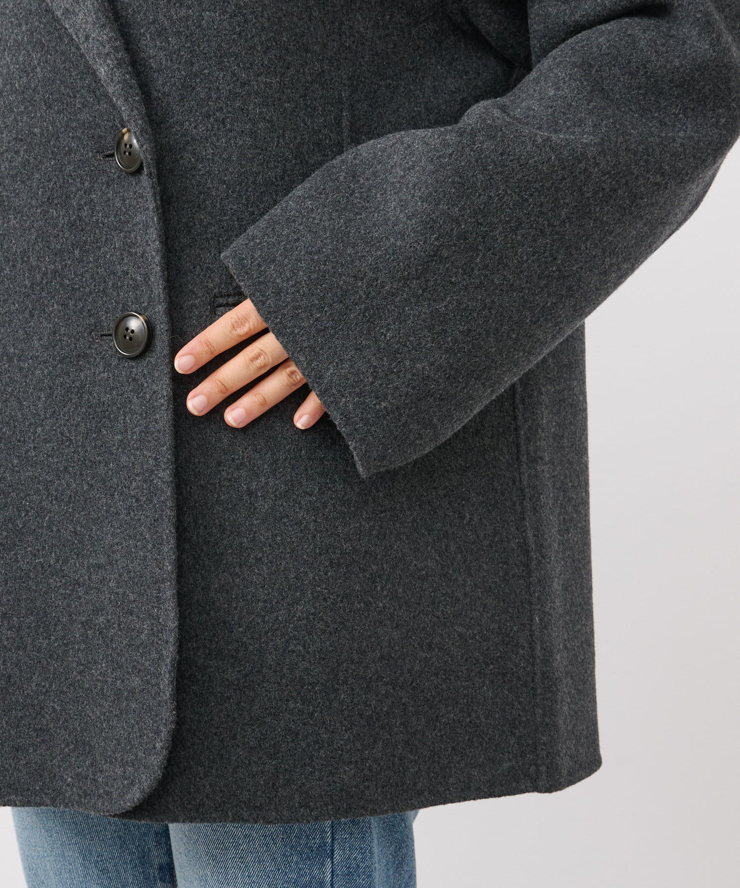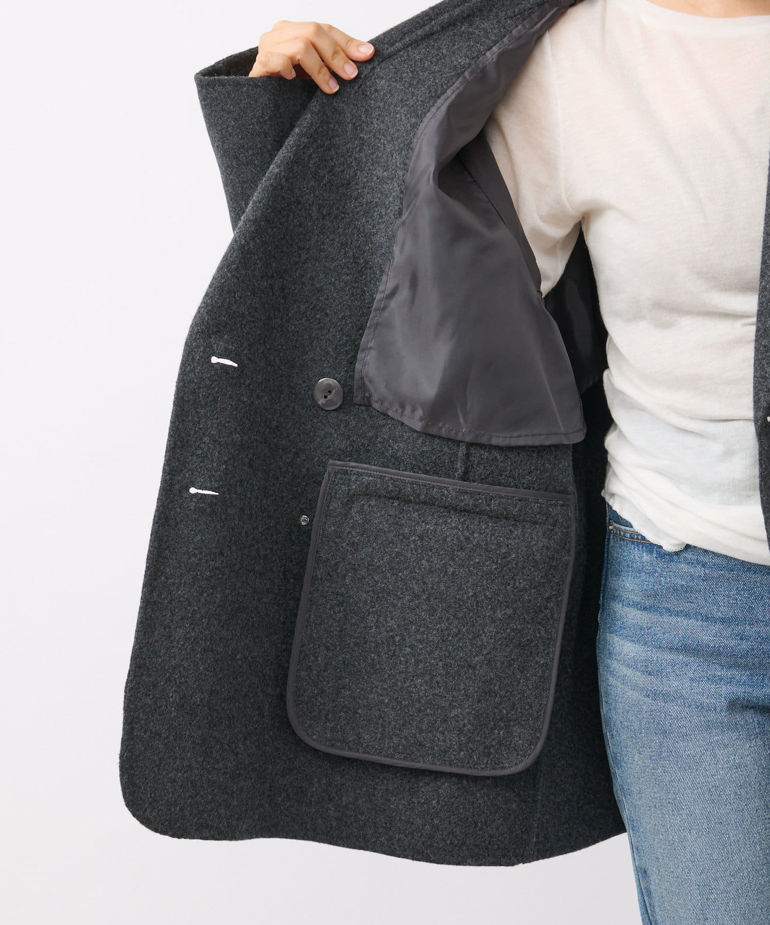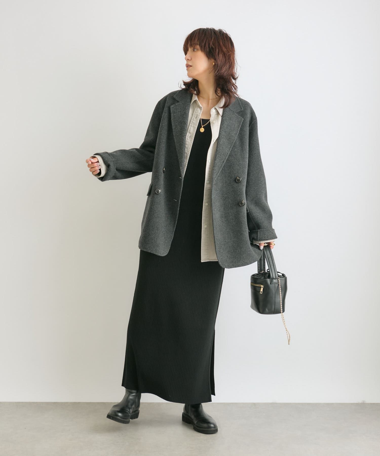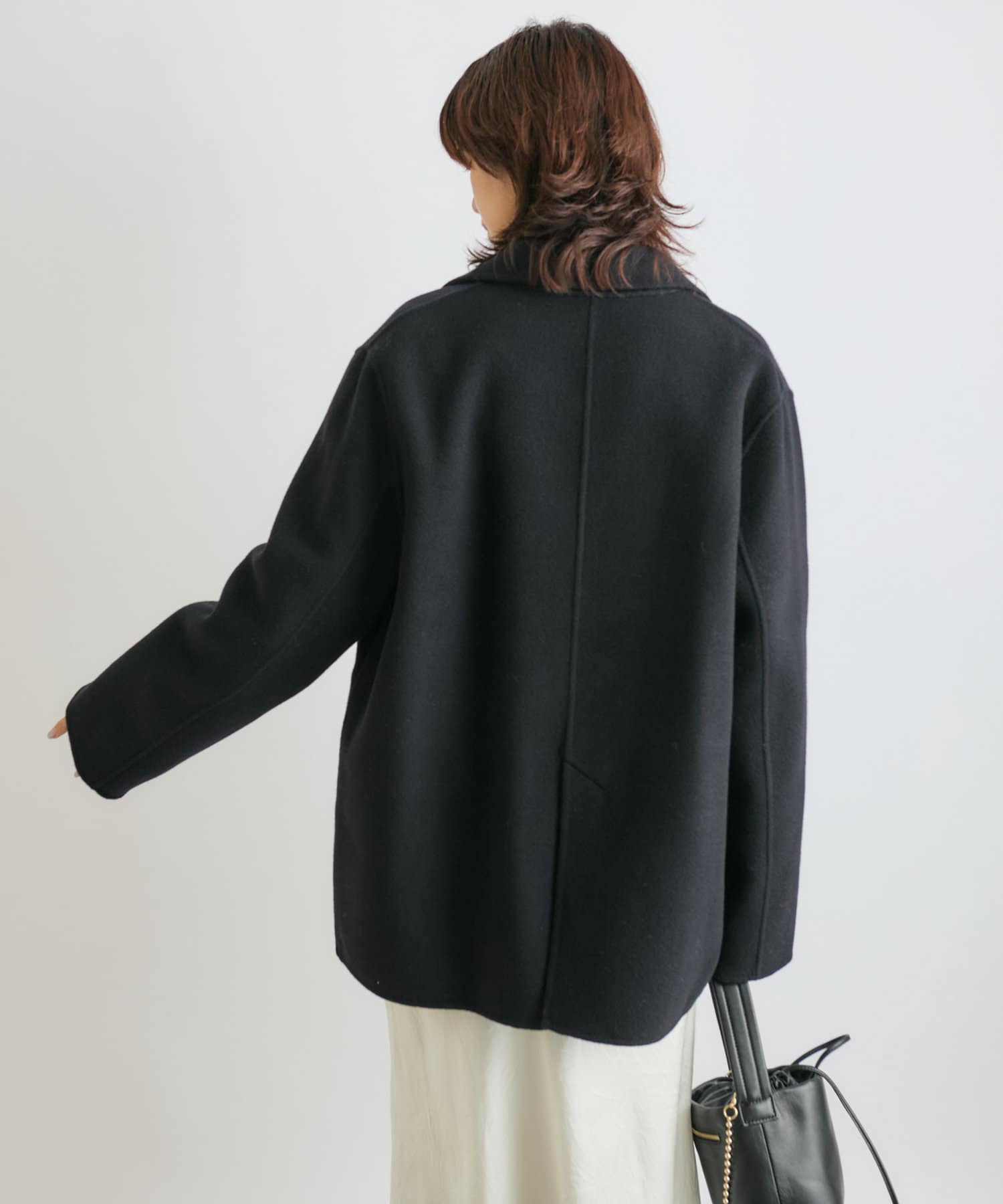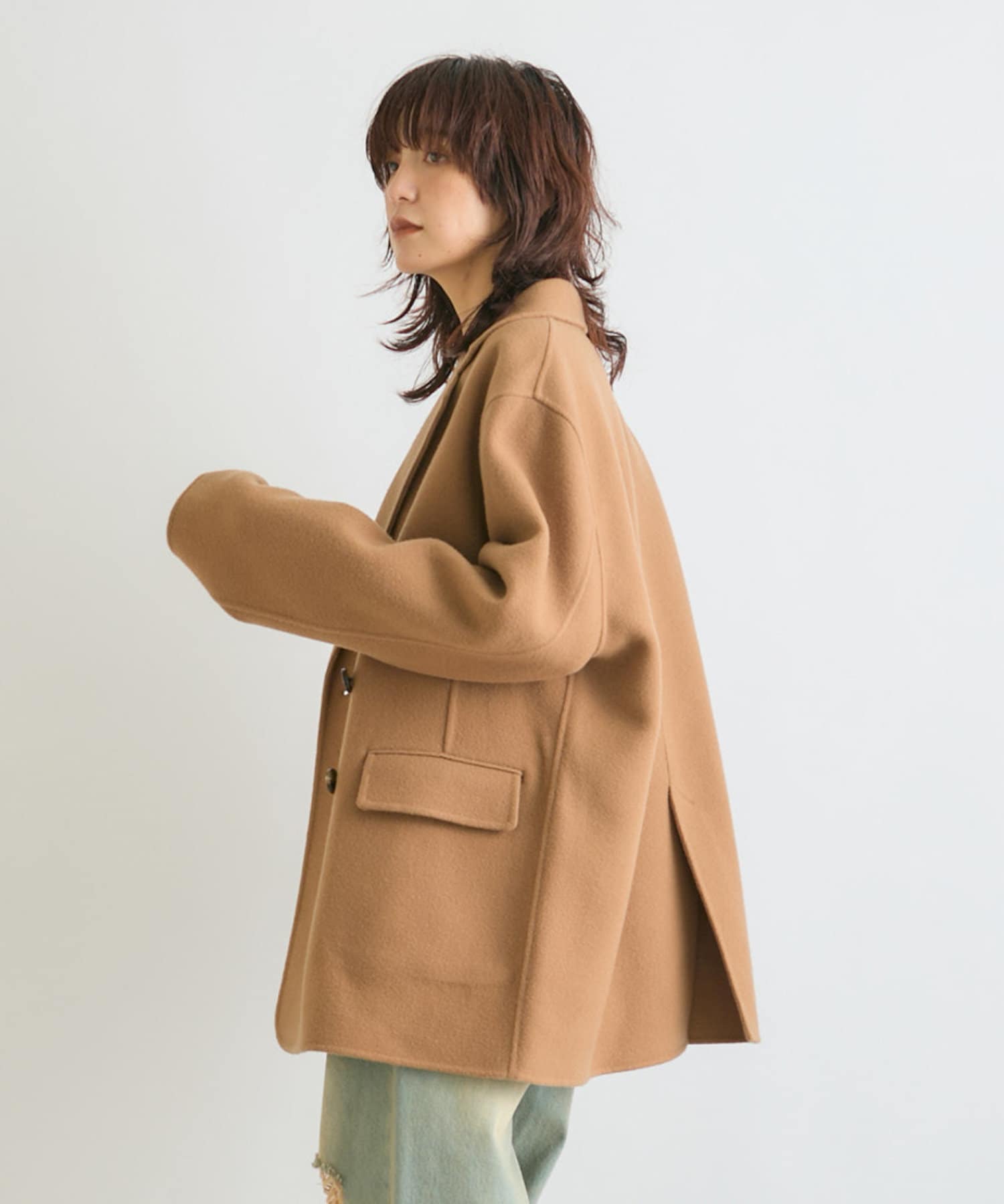 ややオーバーなシルエットに拘り、羽織るだけで女性らしい抜け感と丸みがでるようになっています。