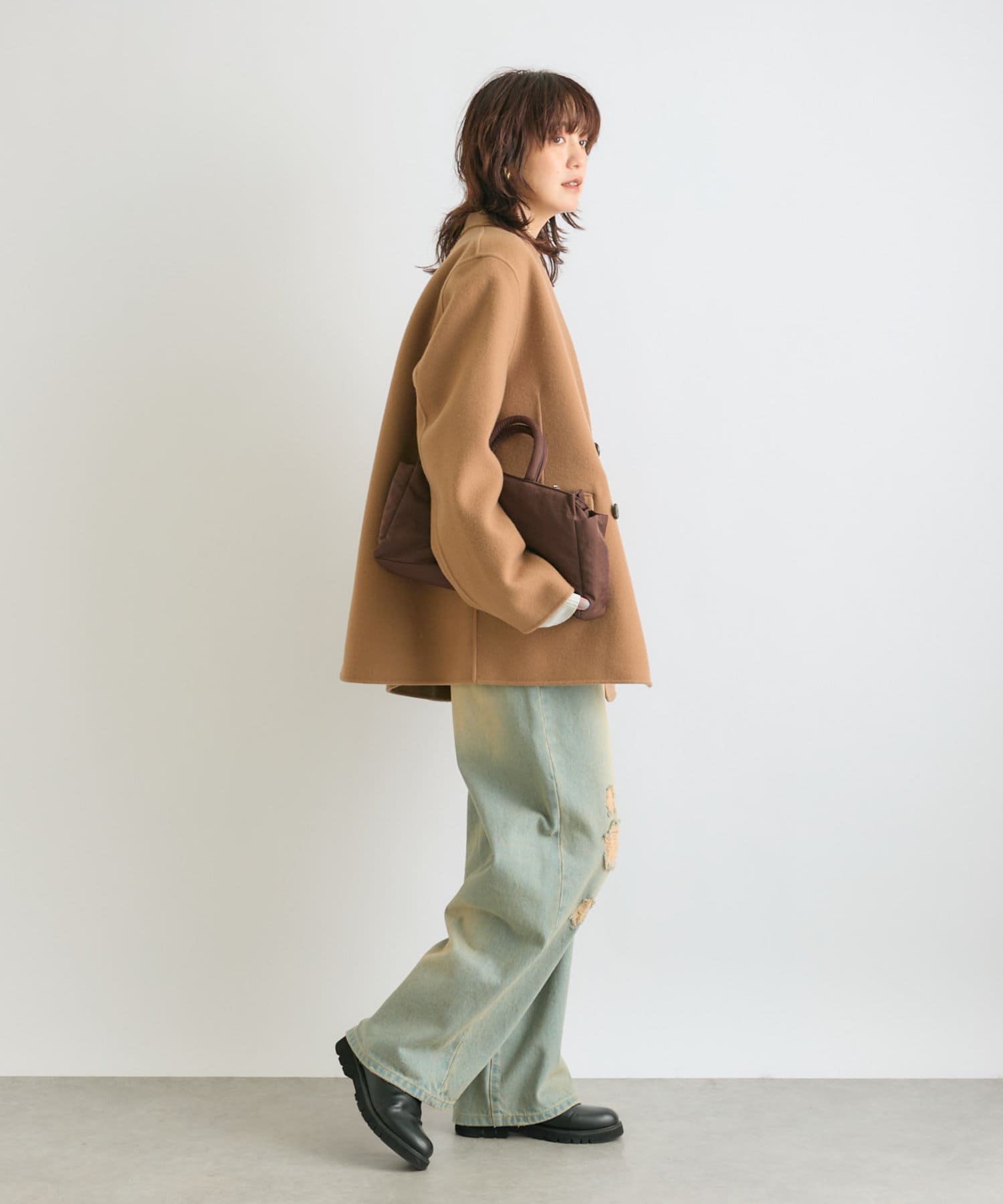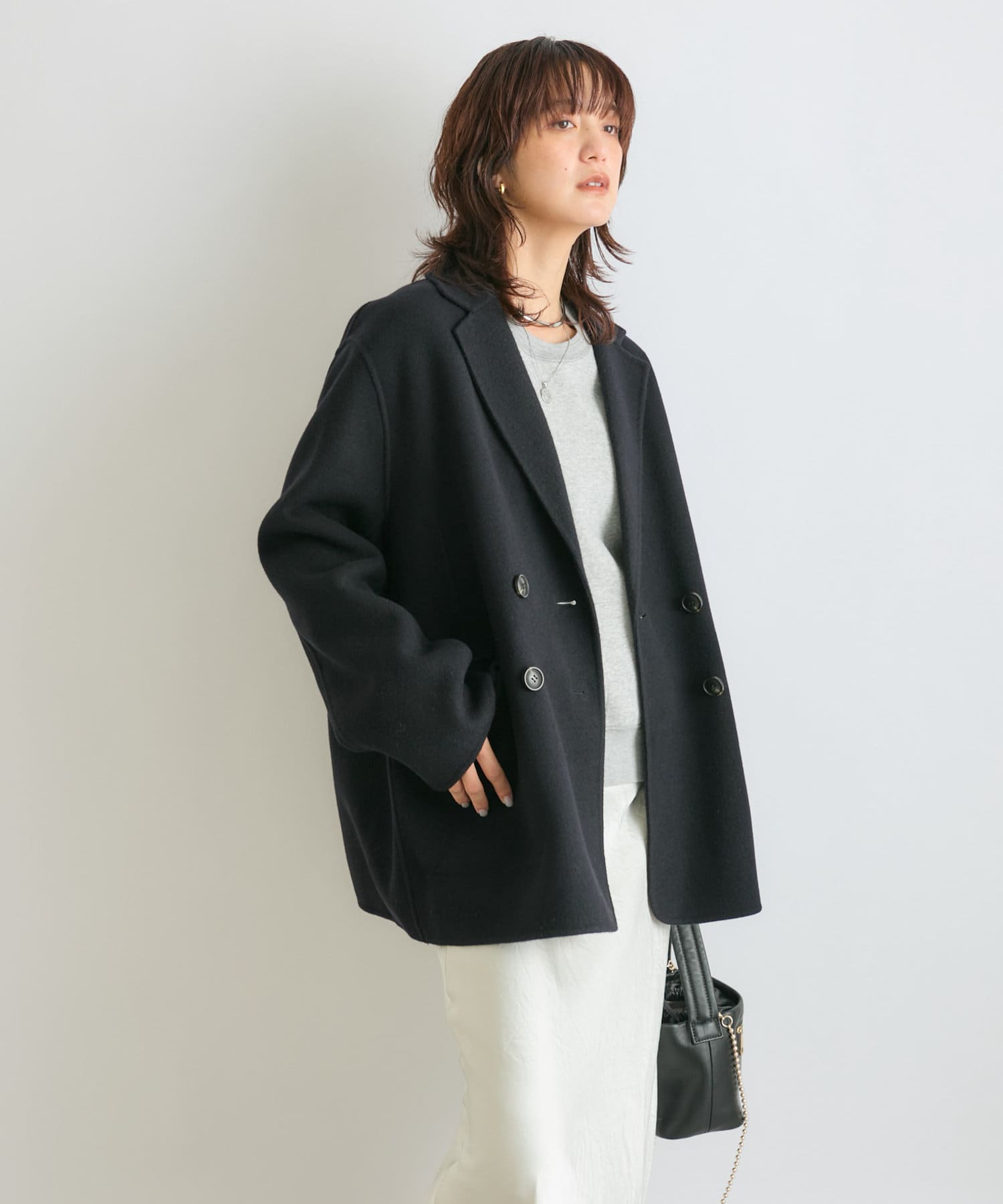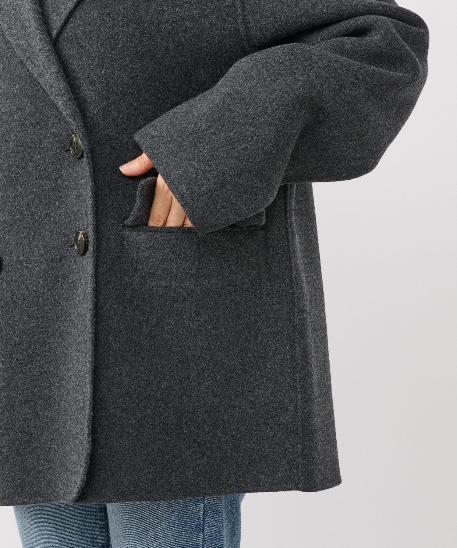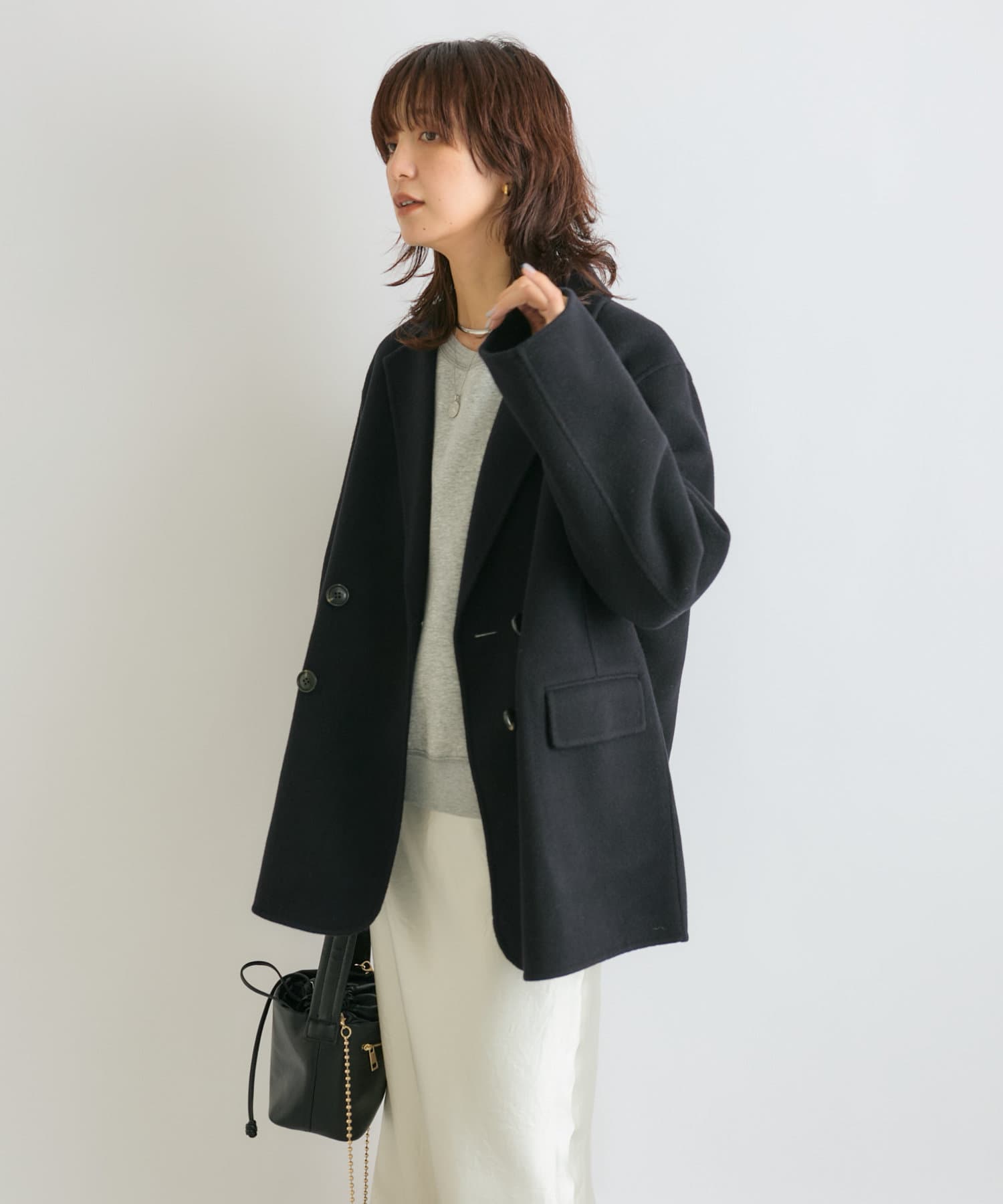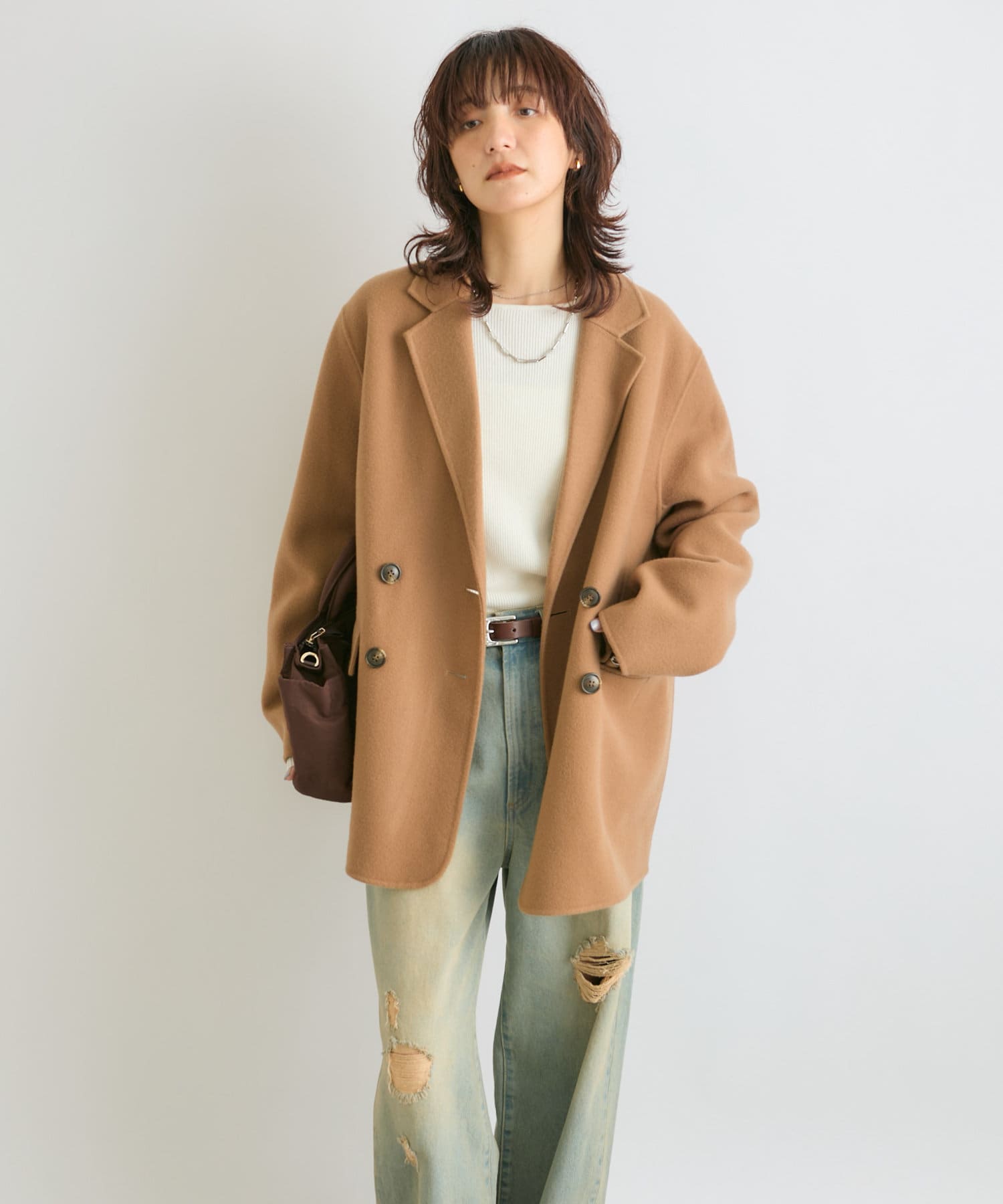 ややオーバーなシルエットに拘り、羽織るだけで女性らしい抜け感と丸みがでるようになっています。