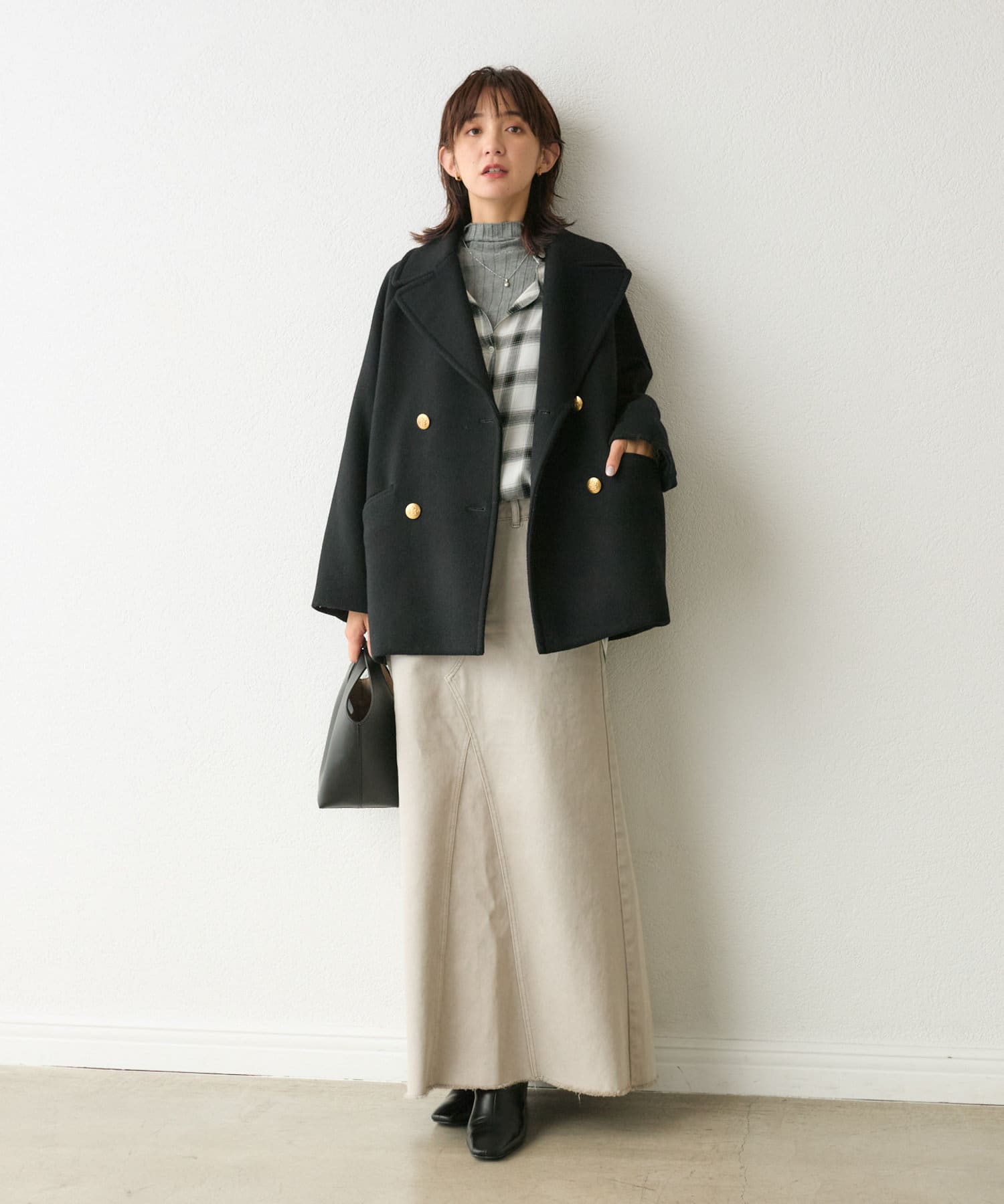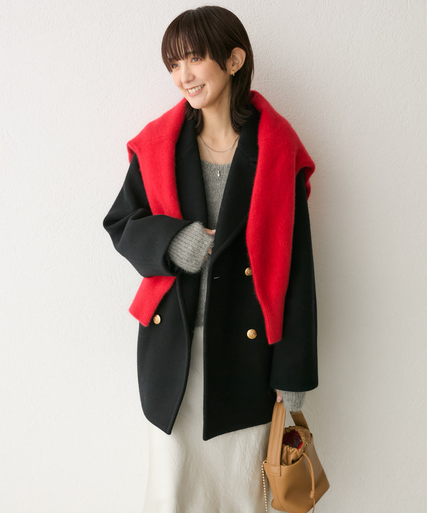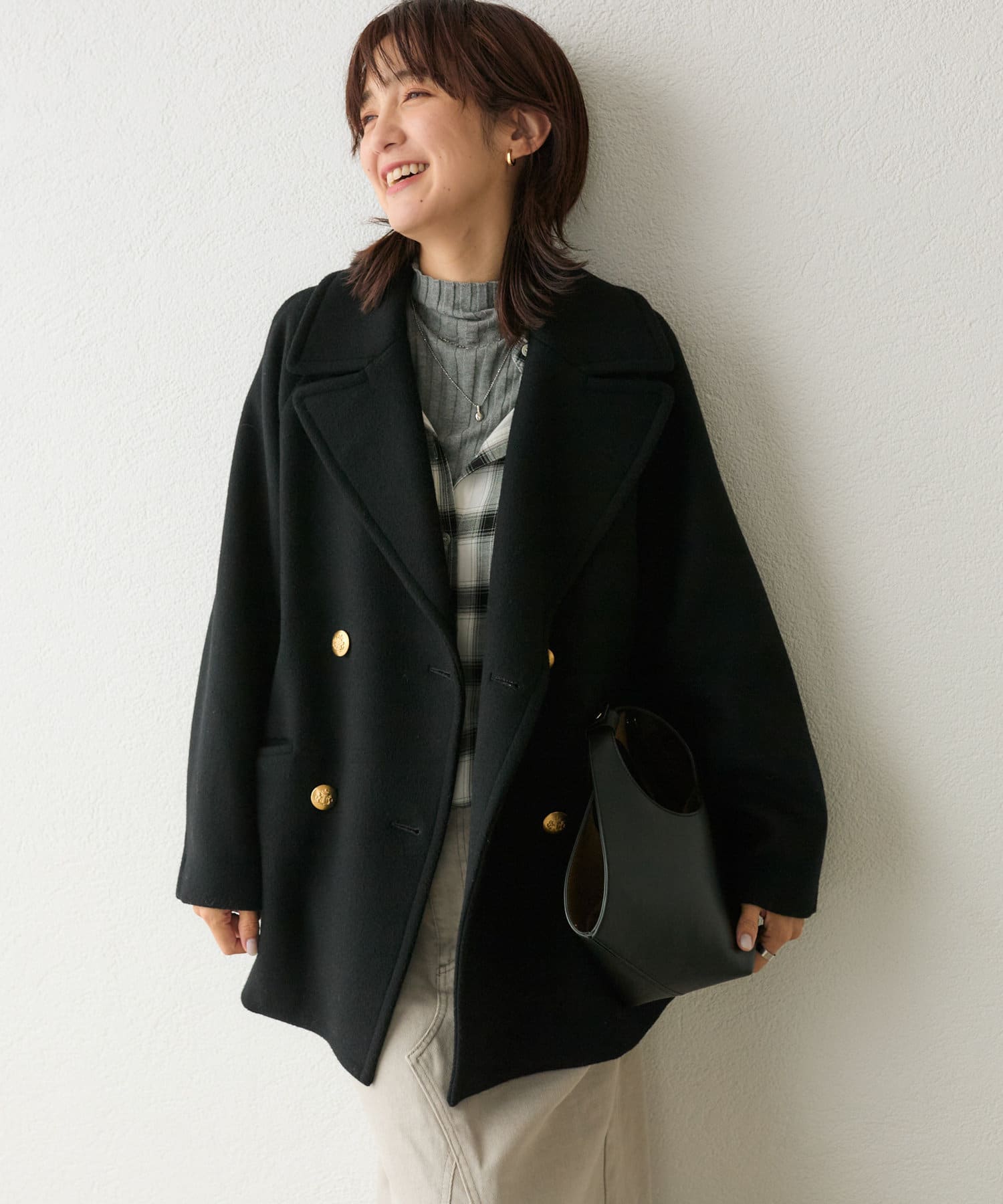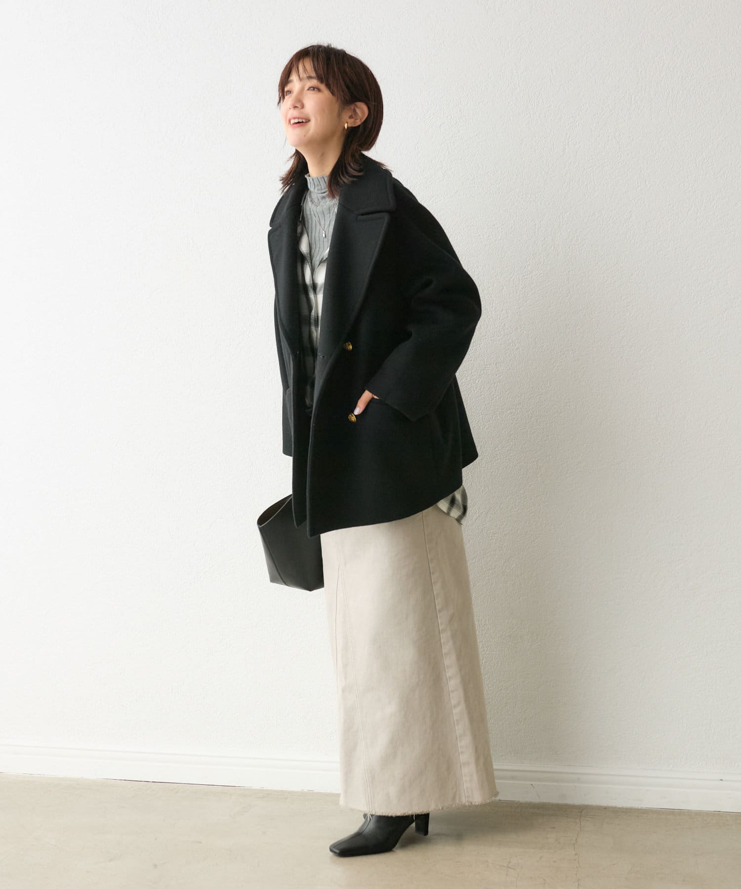 インスタで初めて見た時からベージュを買う!と決めていました。試着無しでネットで買うのは心配でしたが、インスタライブを参考にさせてもらい買って大正解でした。とにかく形が可愛い.丈の長さもバッチリ!Pコートはたくさんのブランドで出ていましたがこんなに素敵なコートとは!大満足です。