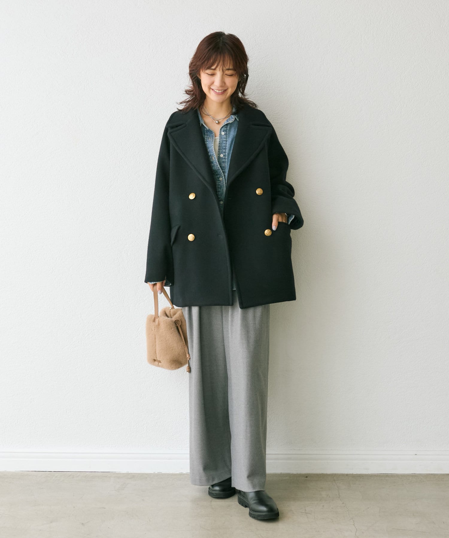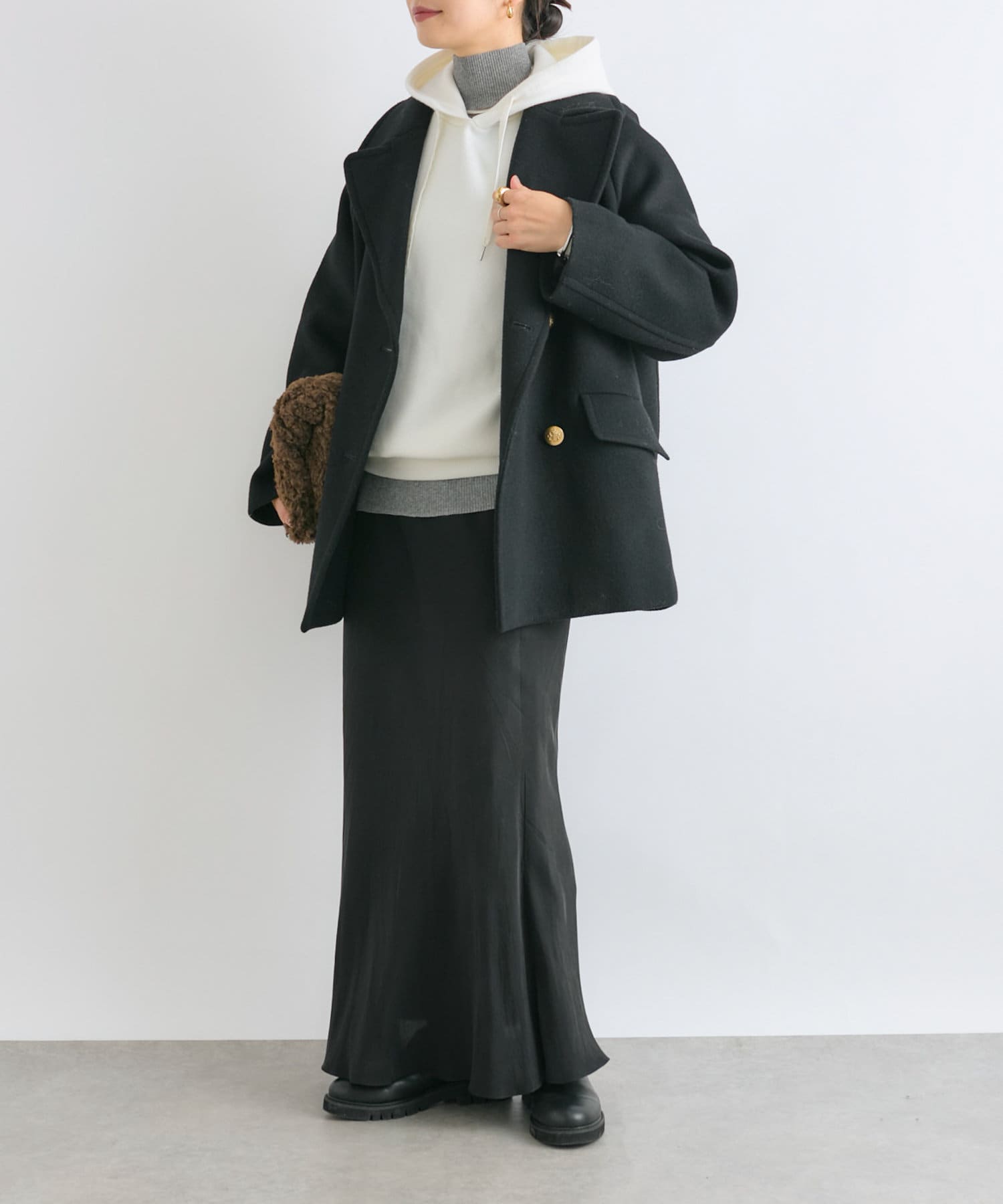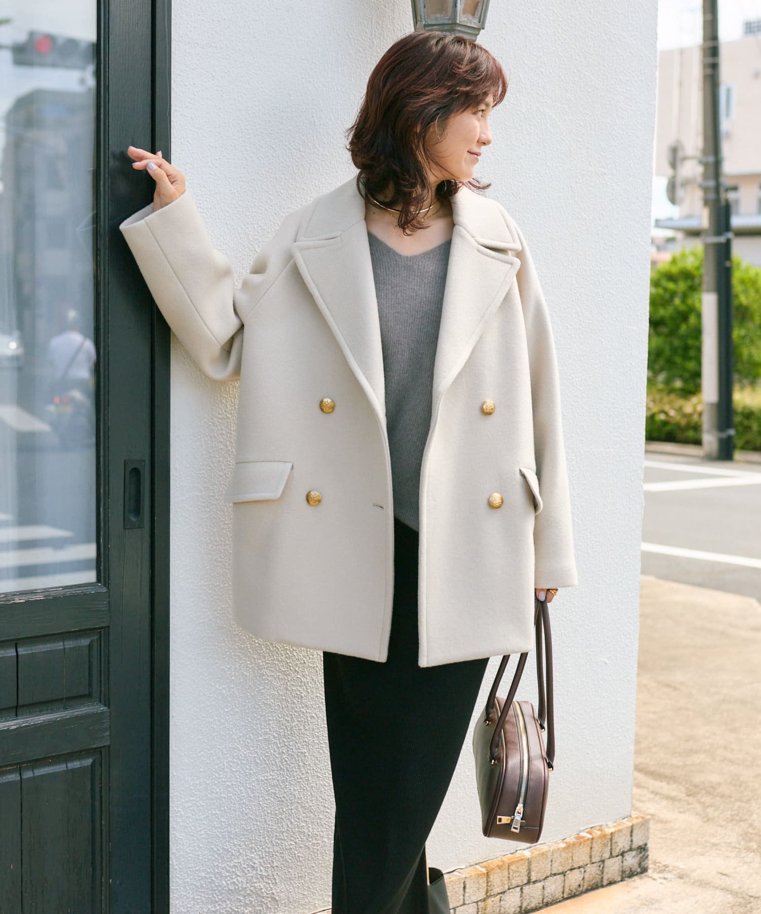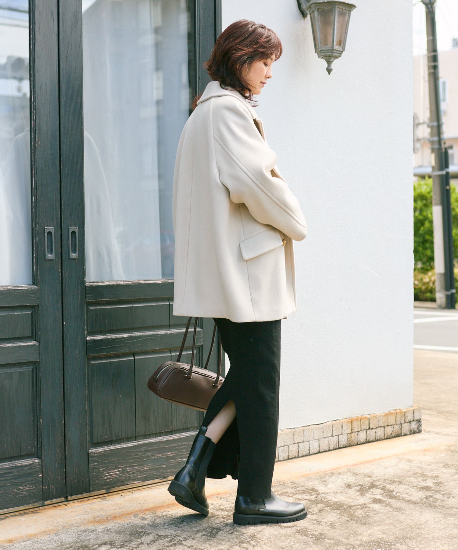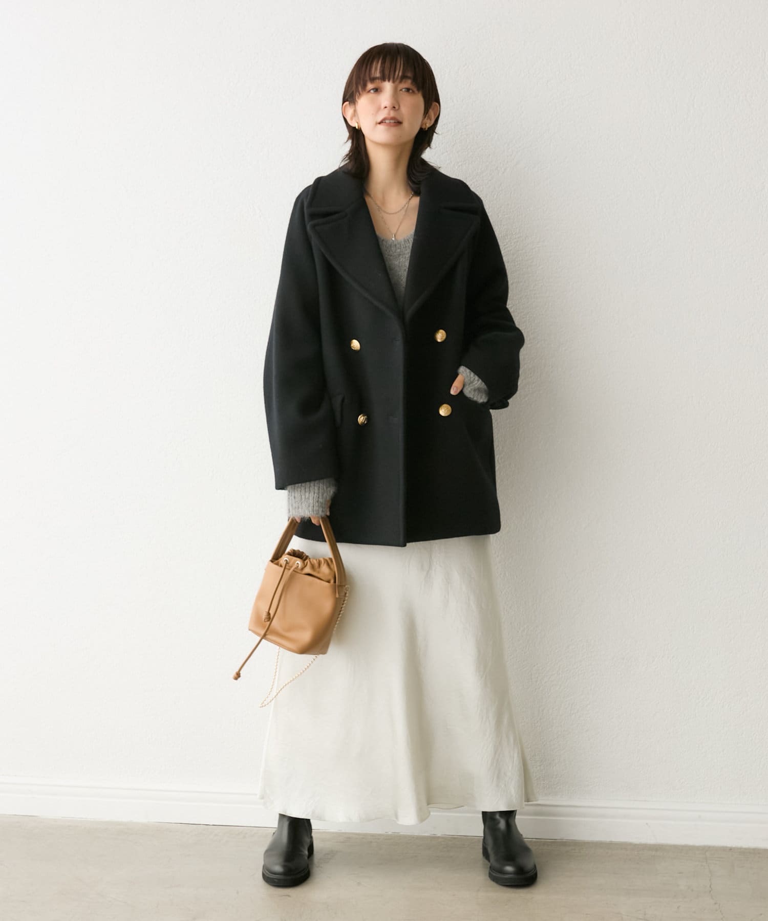 インスタで初めて見た時からベージュを買う!と決めていました。試着無しでネットで買うのは心配でしたが、インスタライブを参考にさせてもらい買って大正解でした。とにかく形が可愛い.丈の長さもバッチリ!Pコートはたくさんのブランドで出ていましたがこんなに素敵なコートとは!大満足です。
