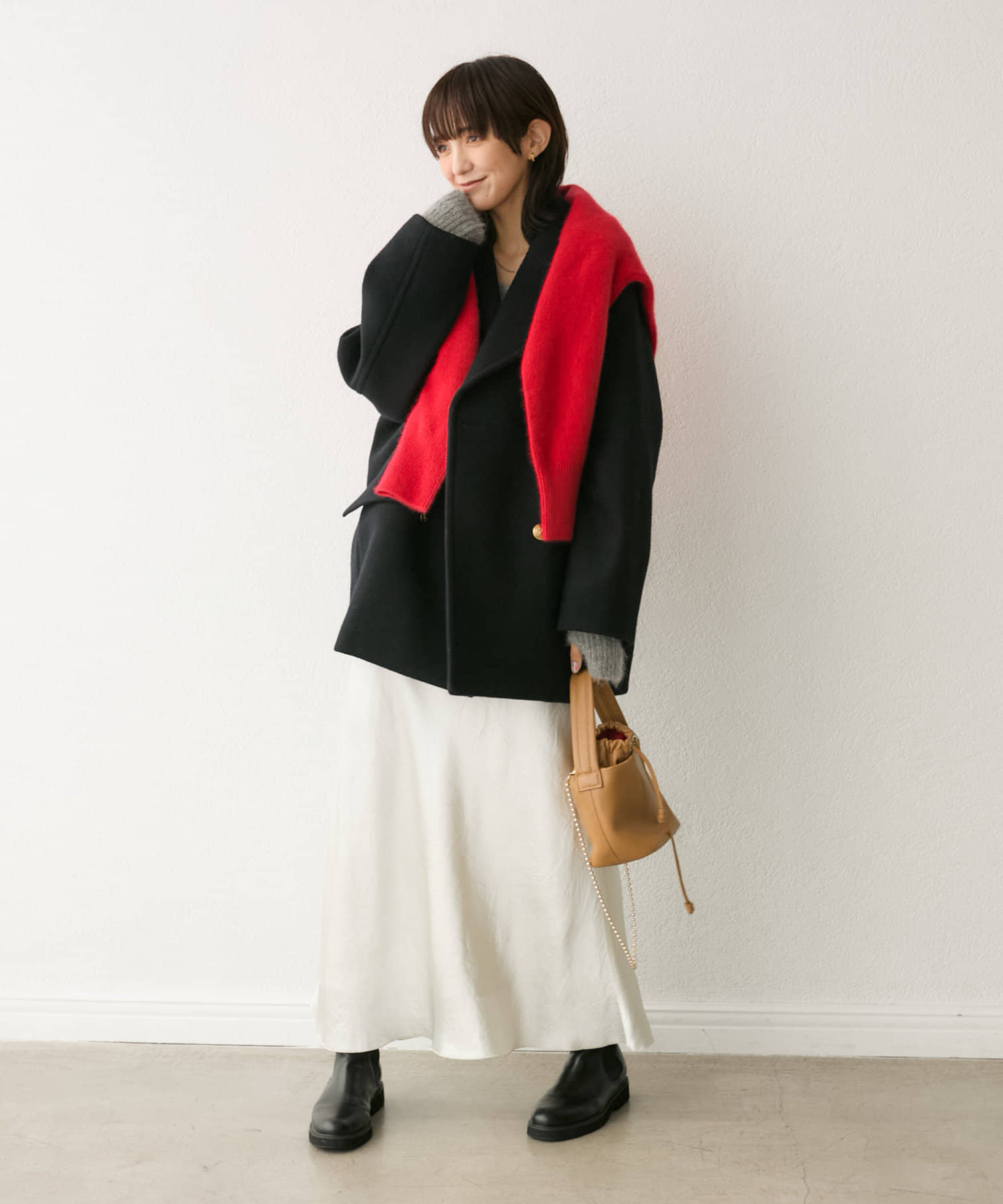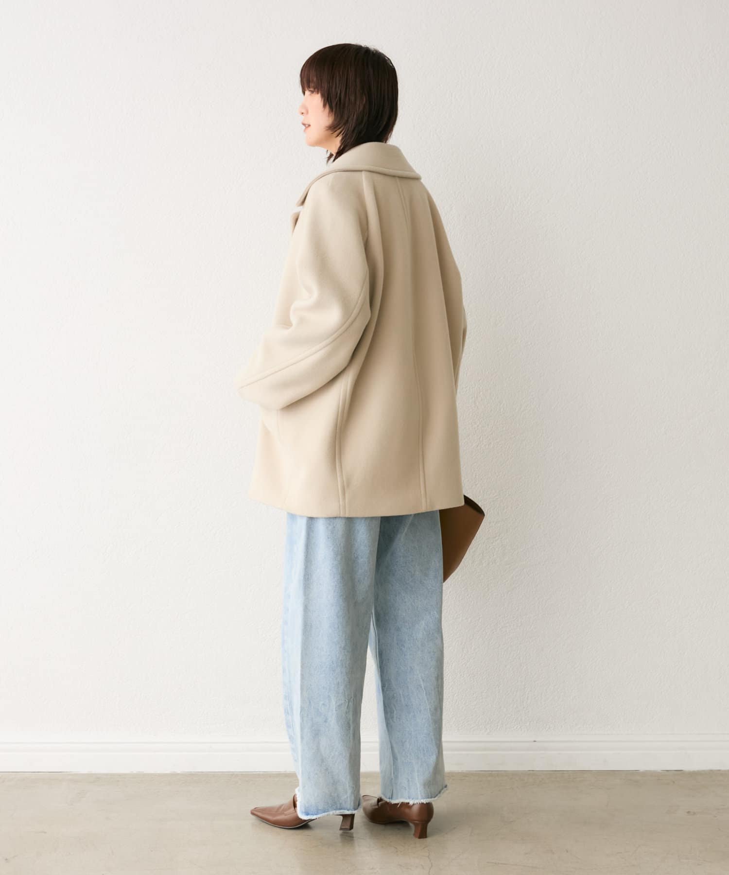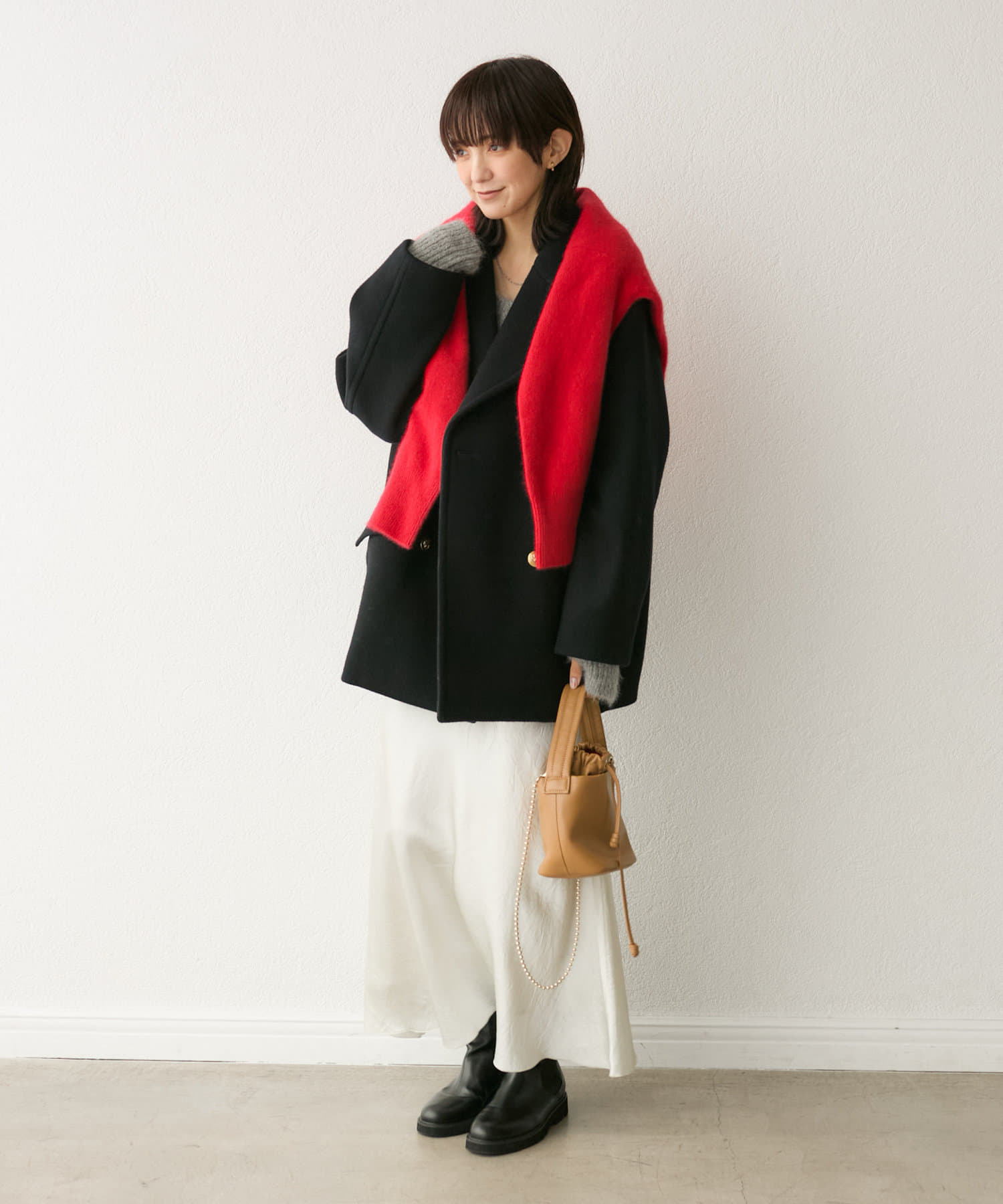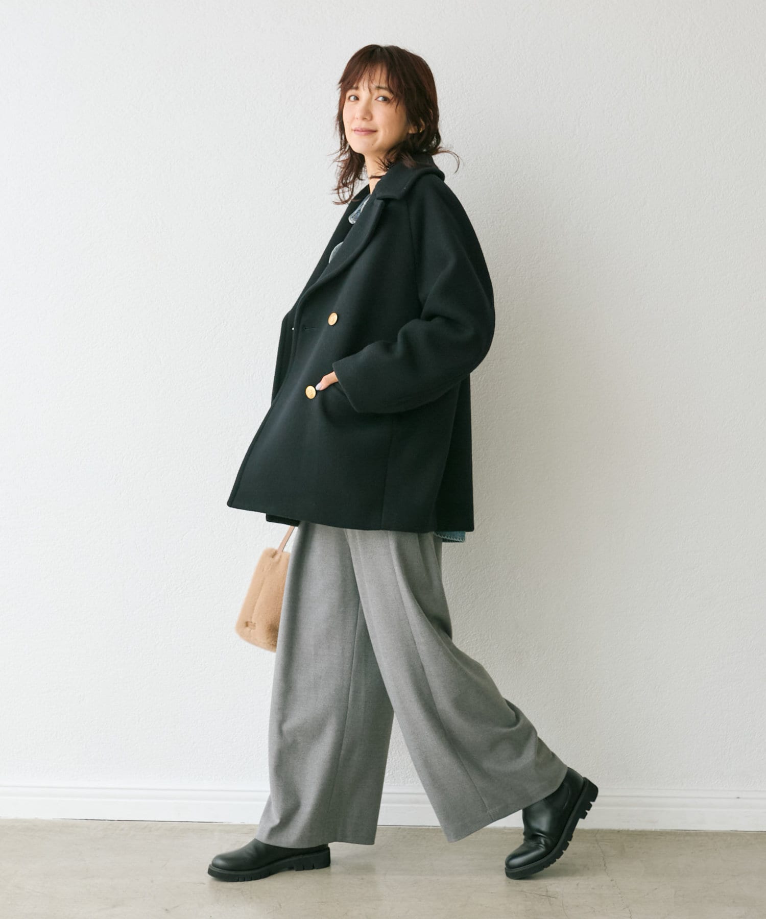 インスタで初めて見た時からベージュを買う!と決めていました。試着無しでネットで買うのは心配でしたが、インスタライブを参考にさせてもらい買って大正解でした。とにかく形が可愛い.丈の長さもバッチリ!Pコートはたくさんのブランドで出ていましたがこんなに素敵なコートとは!大満足です。