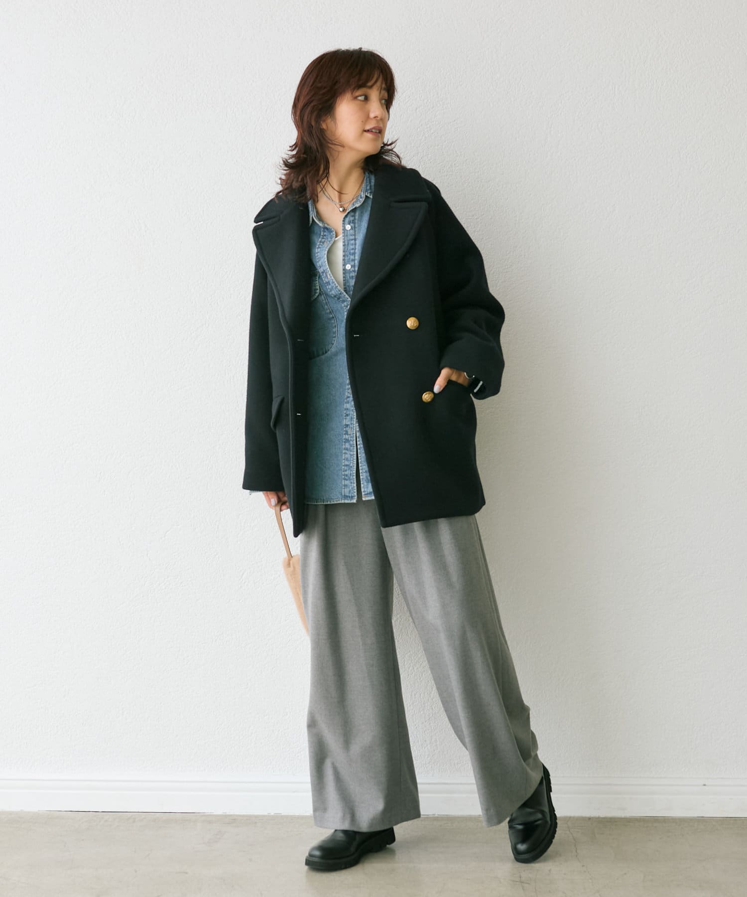 Pコートって硬めで重量感のあるイメージですが、このコートは軽くて柔らかいです!
