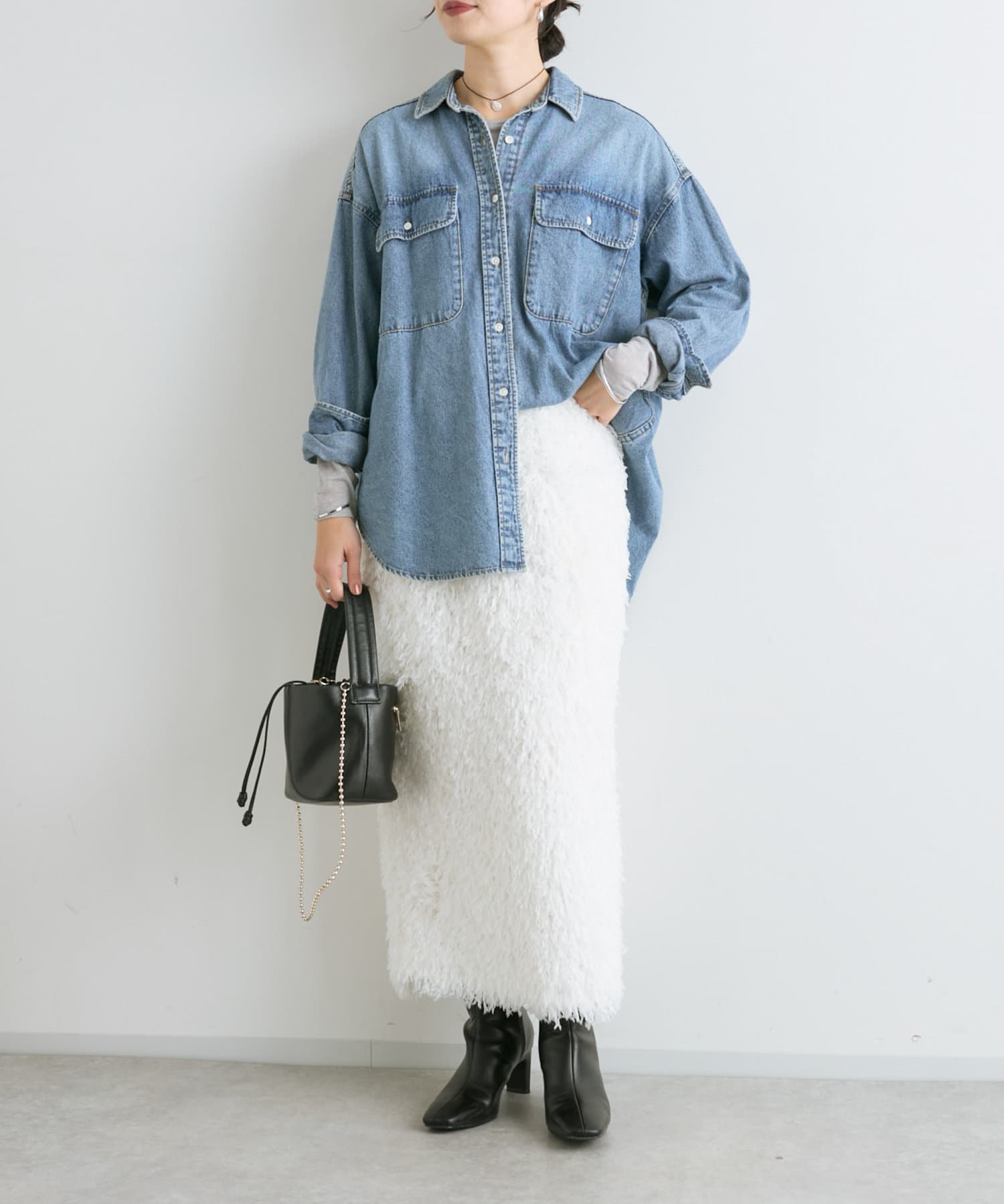 デニムシャツやデニムジャケットを合わせたカジュアルスタイルなどもおすすめです。