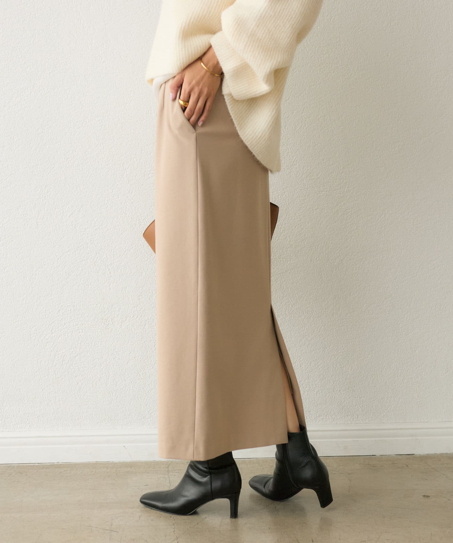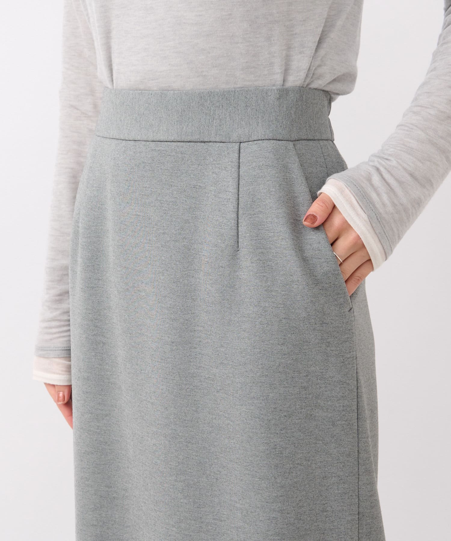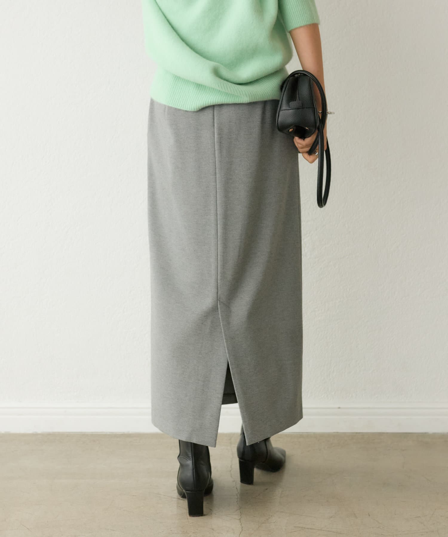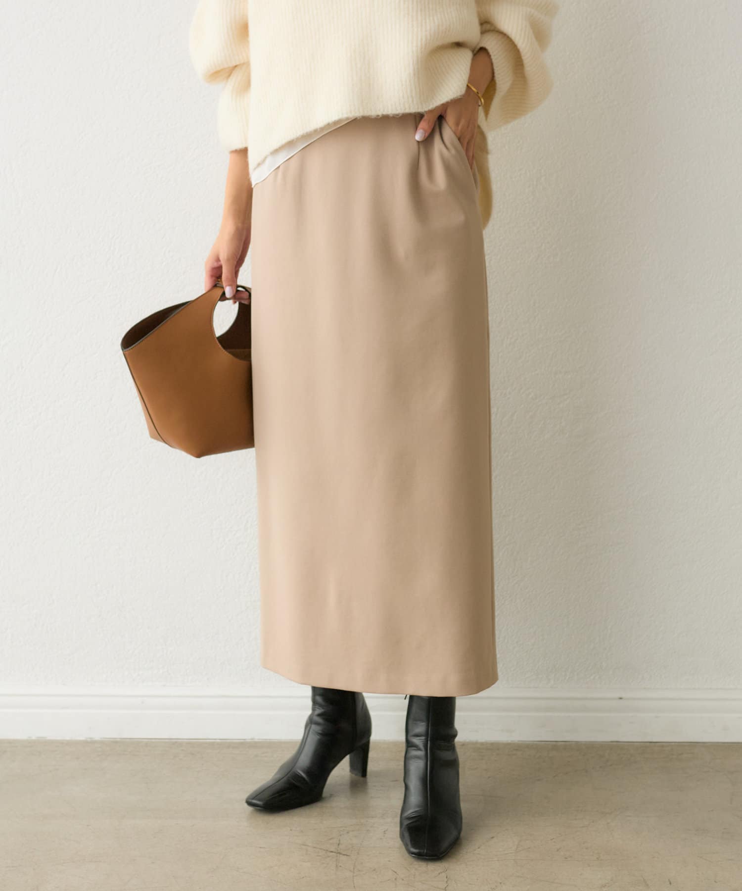 ストレッチポンチを使用したIラインシルエットのタイトスカート。