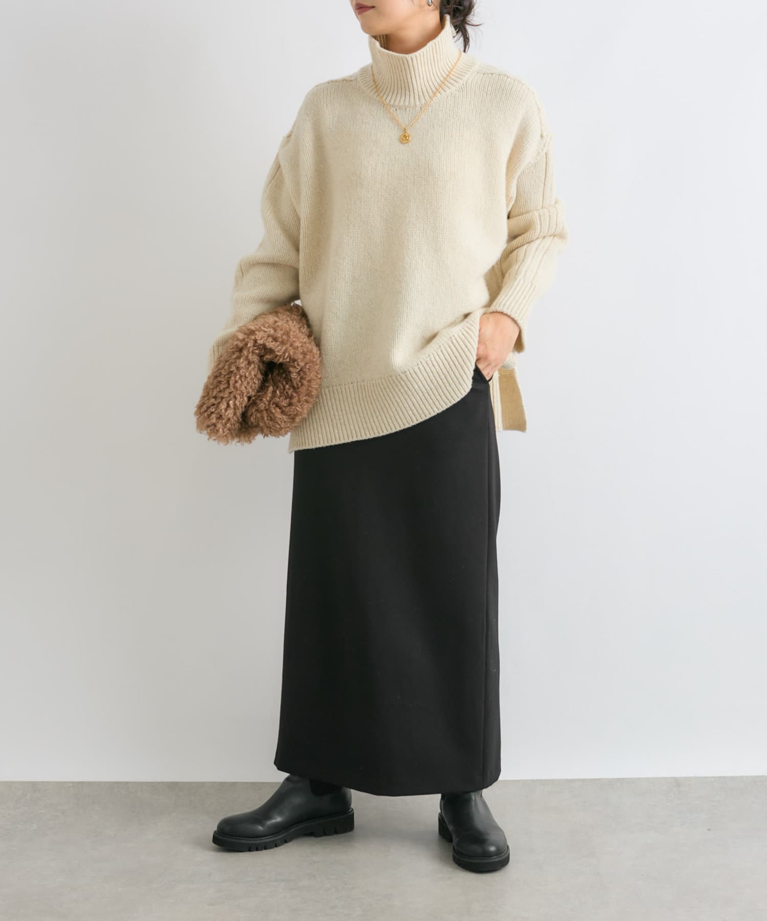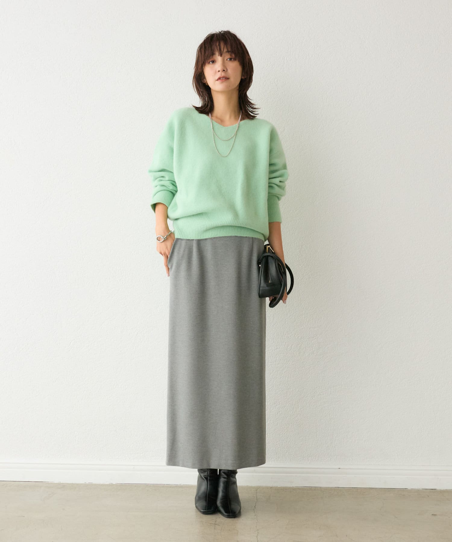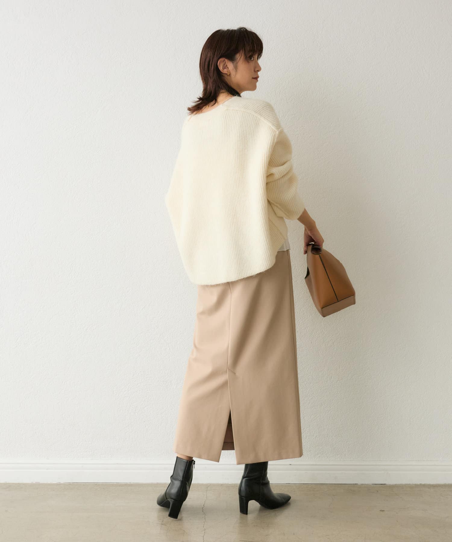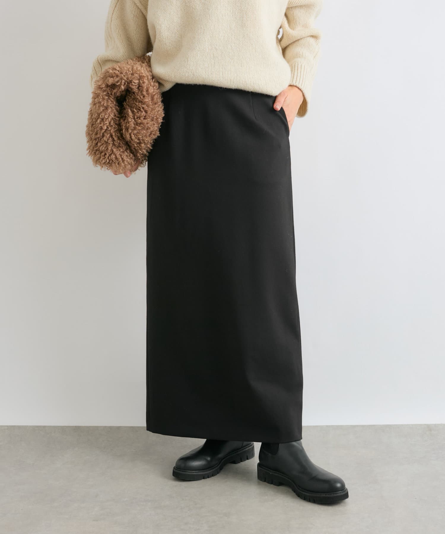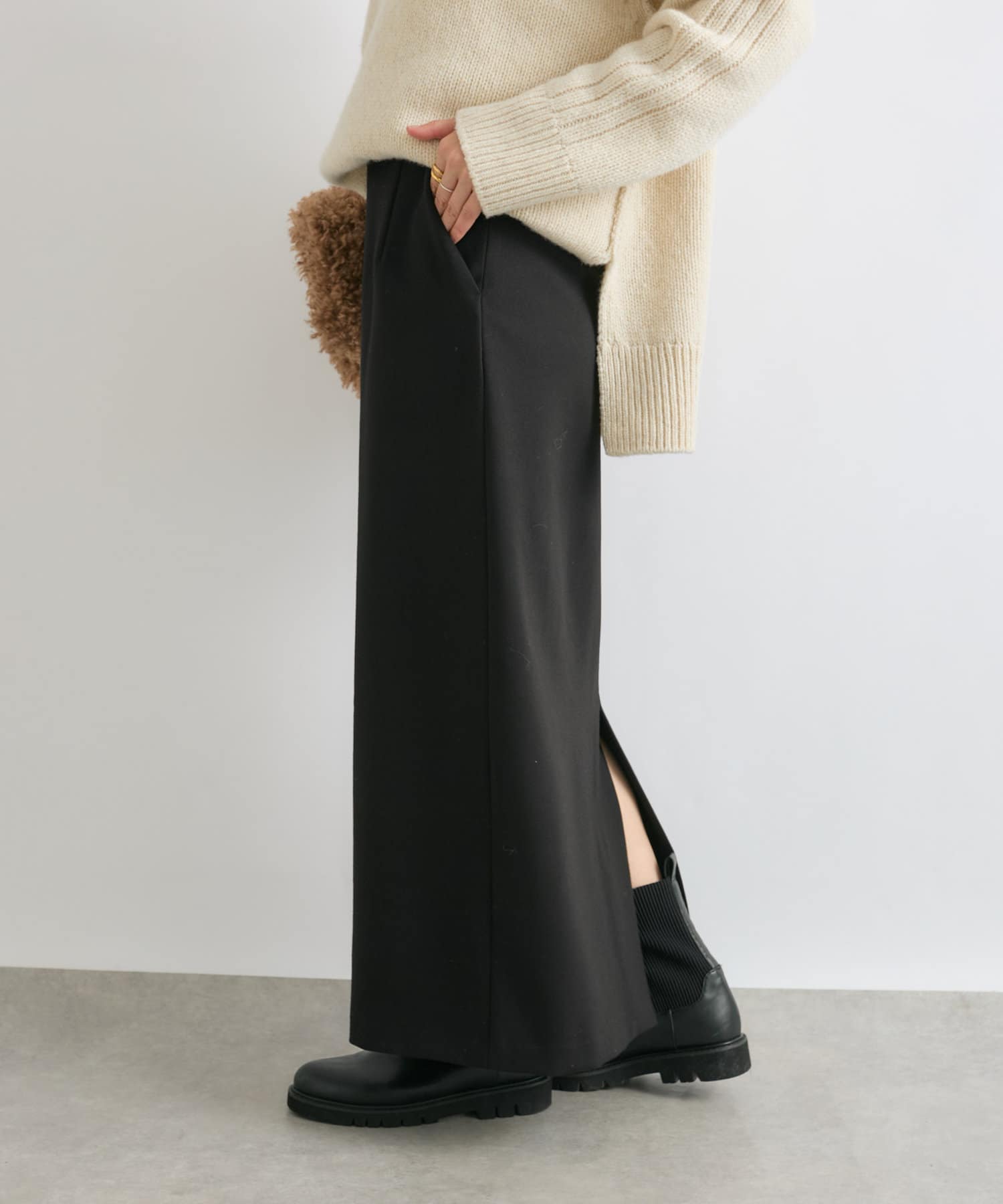 ストレッチポンチを使用したIラインシルエットのタイトスカート。