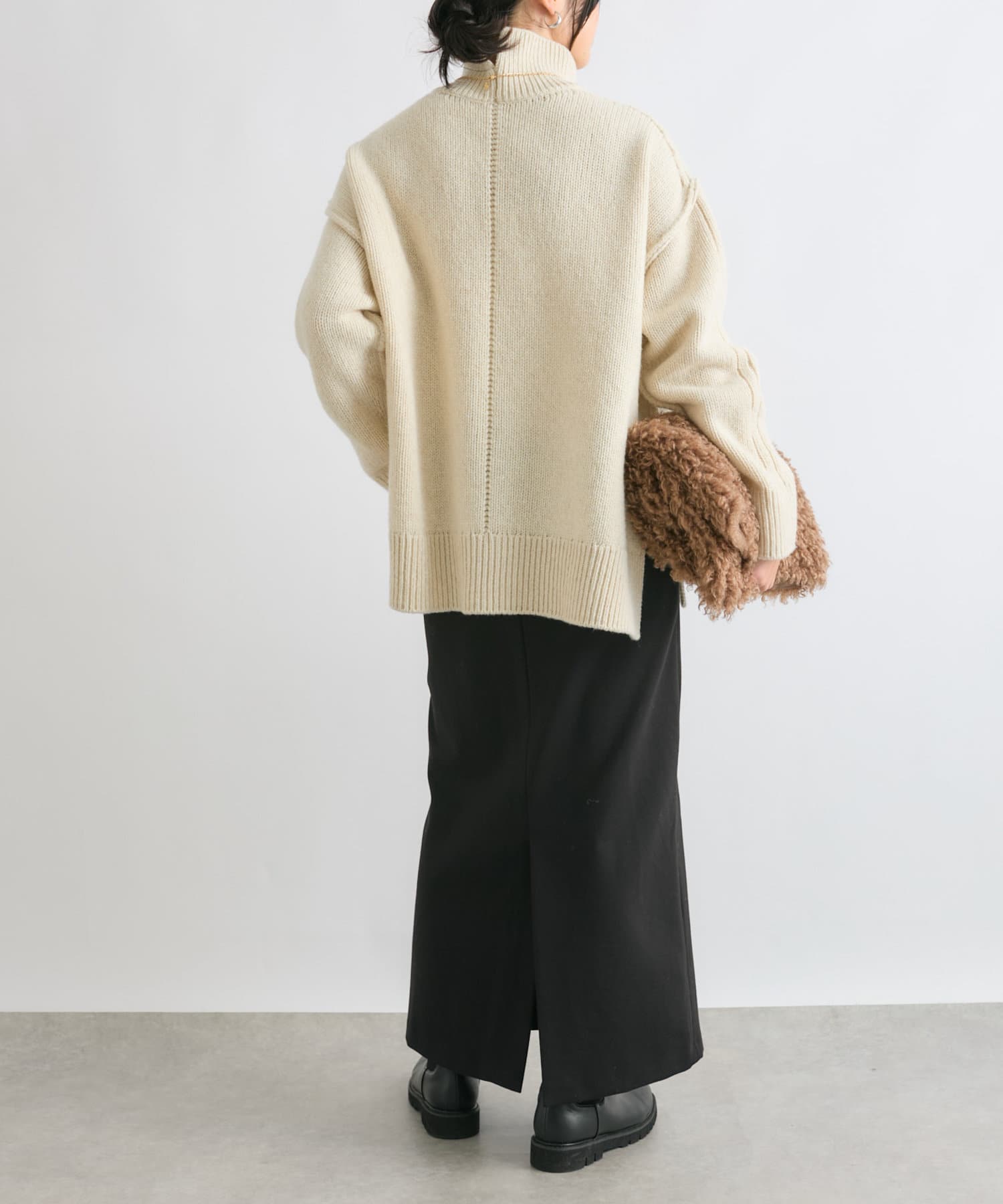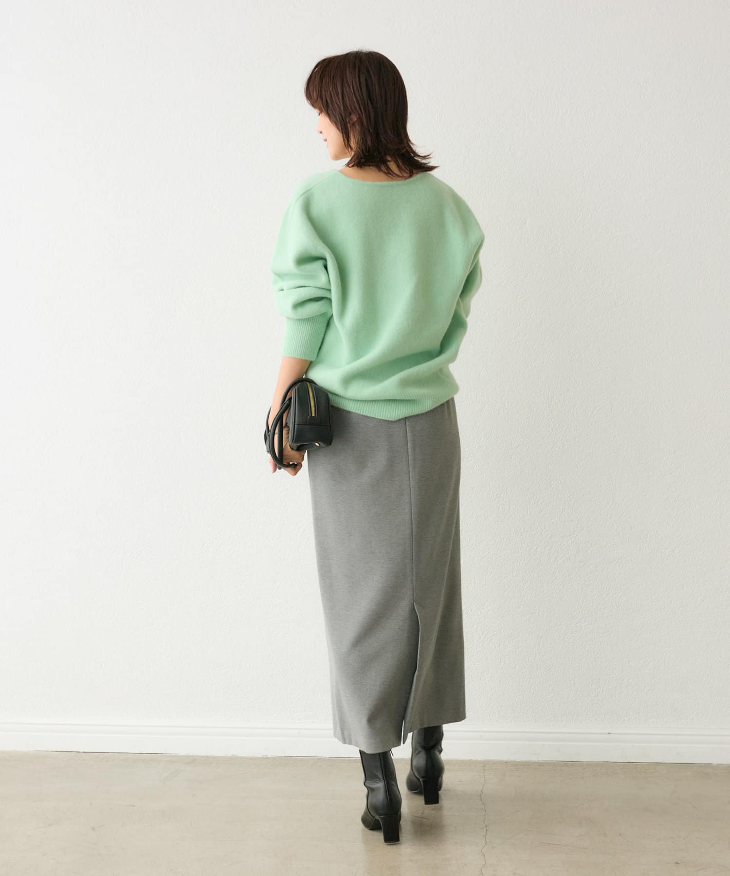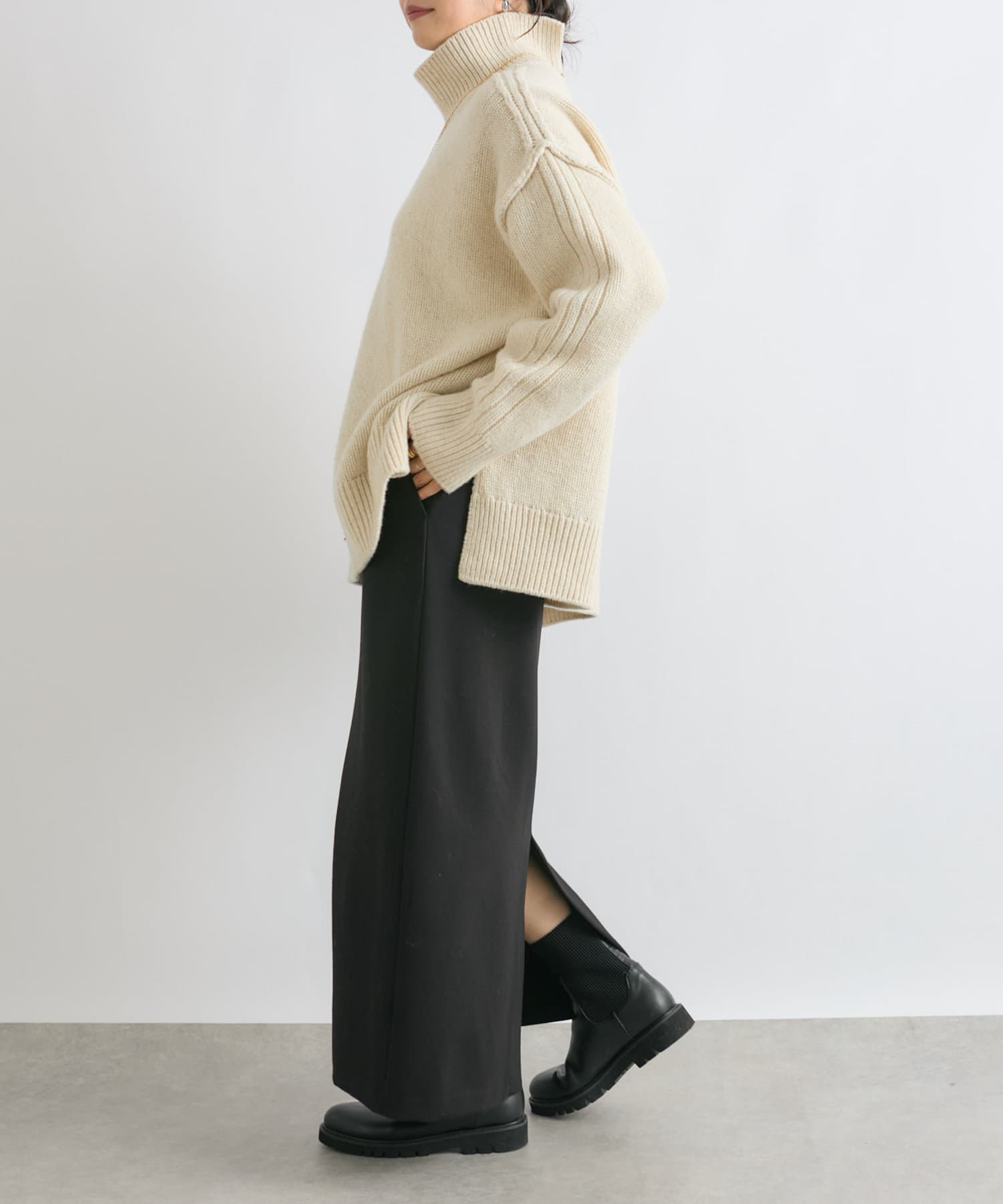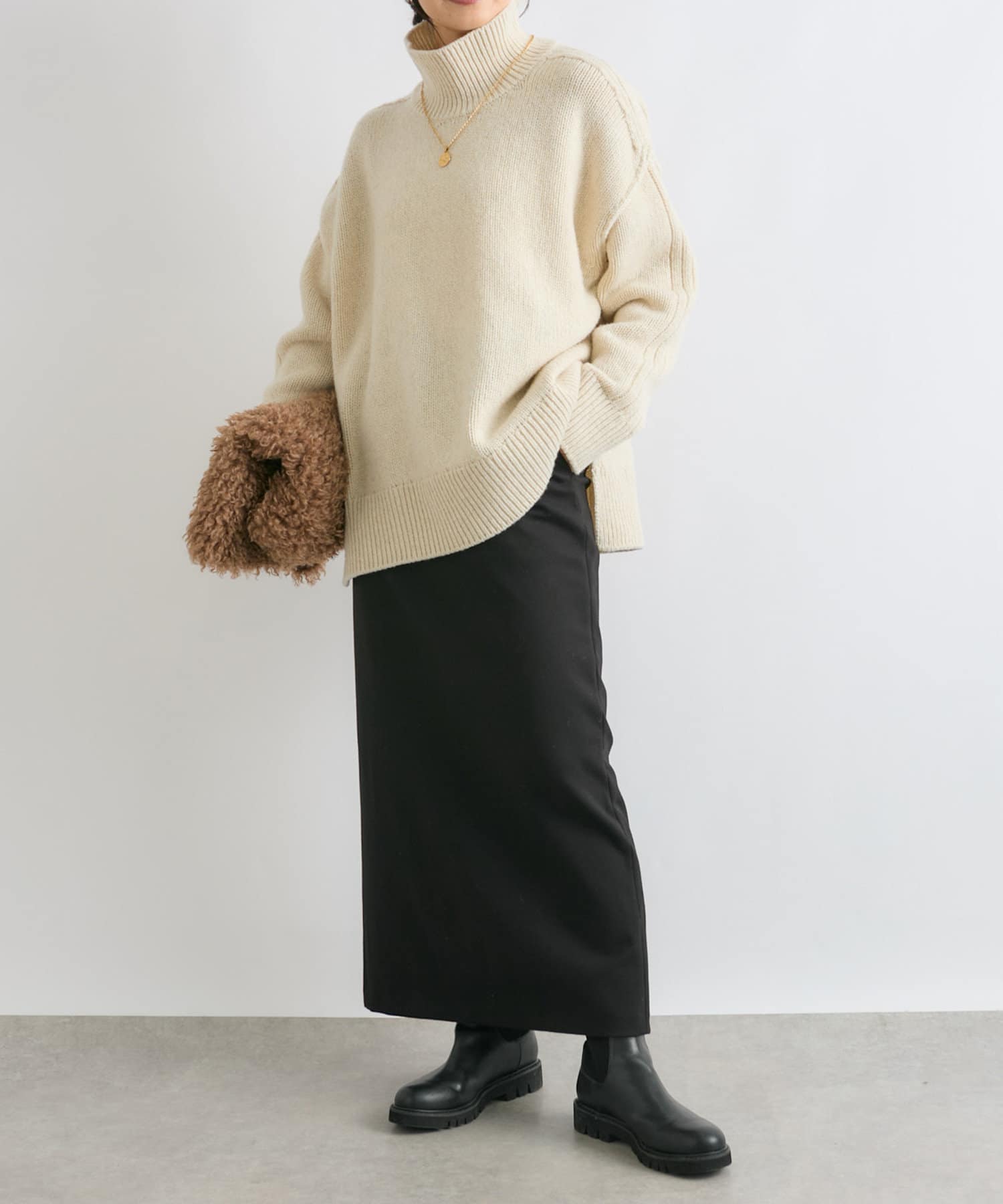 ストレッチポンチを使用したIラインシルエットのタイトスカート。