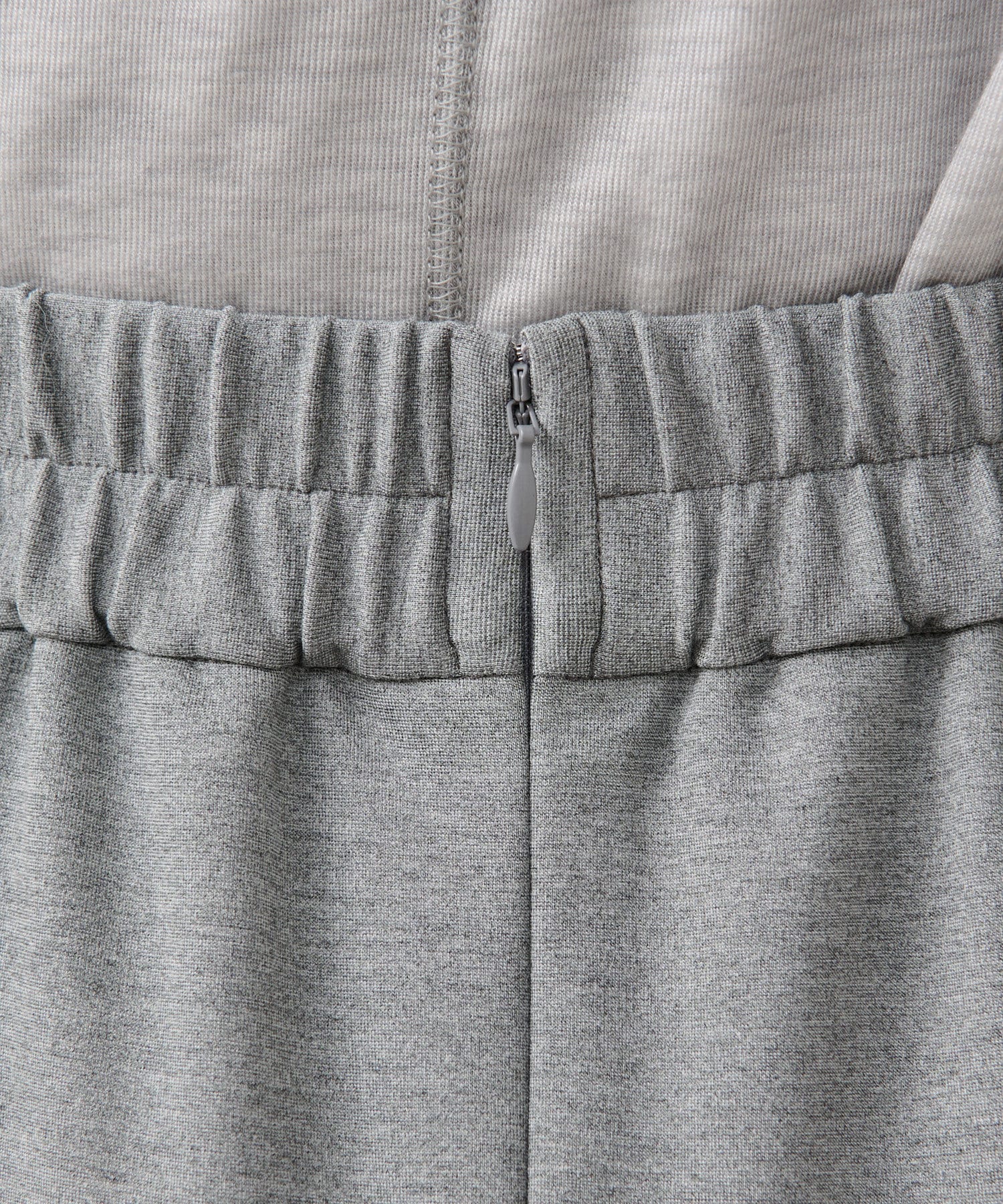ウエストラインがきれいに見えるハイウエストデザインで、ストレッチ素材+後ゴム仕様で締め付け感なく着用いただけます。
