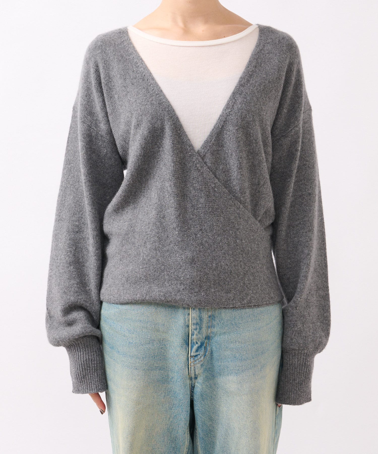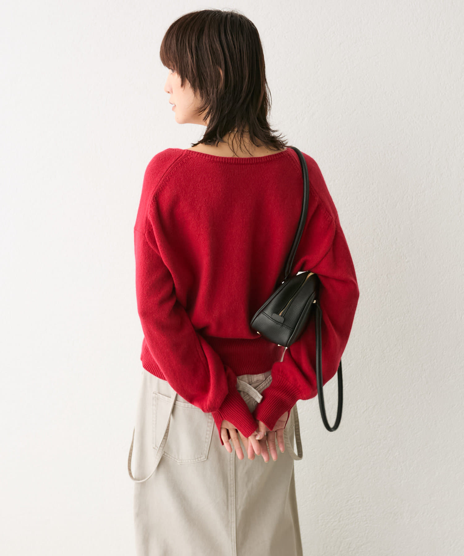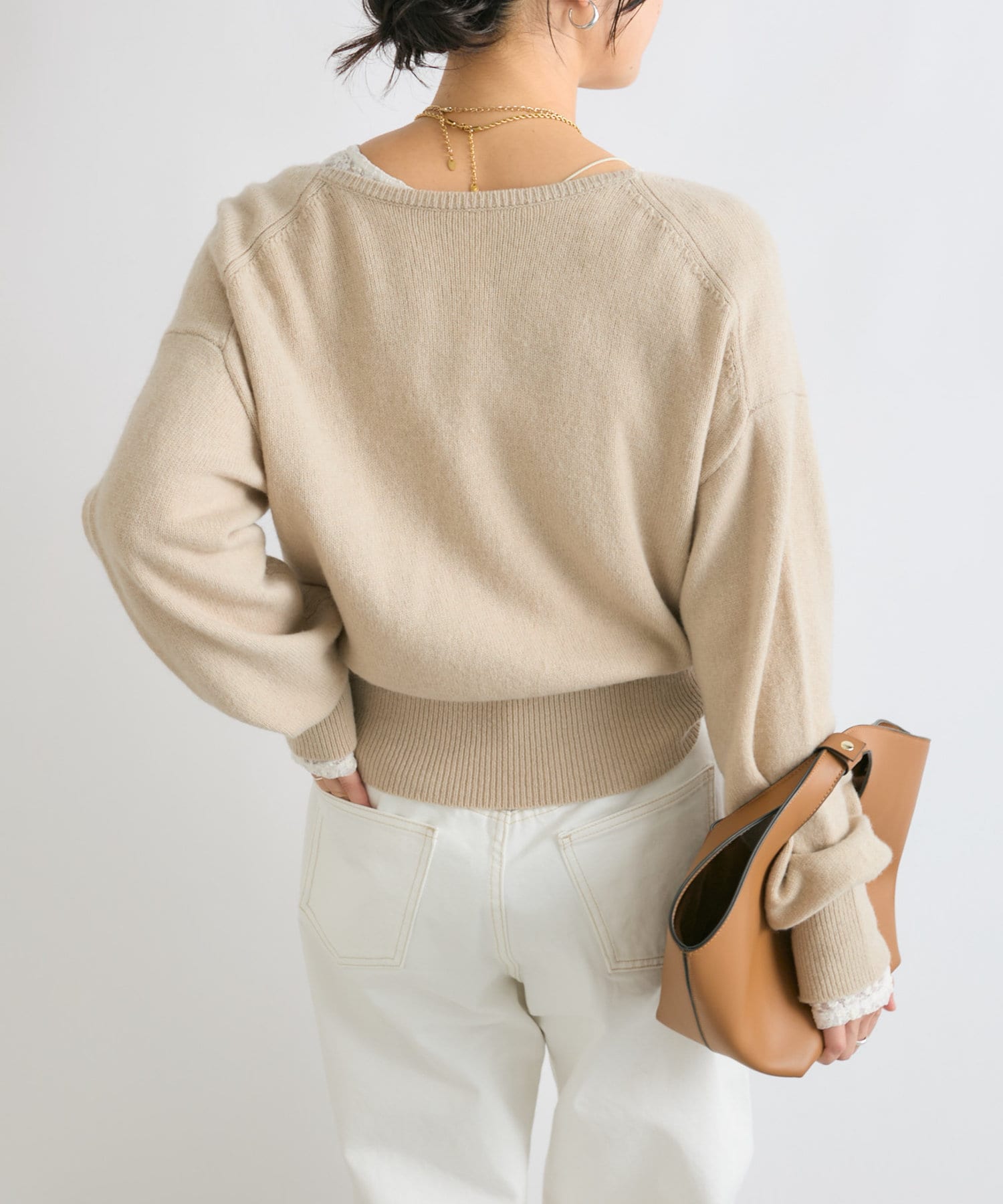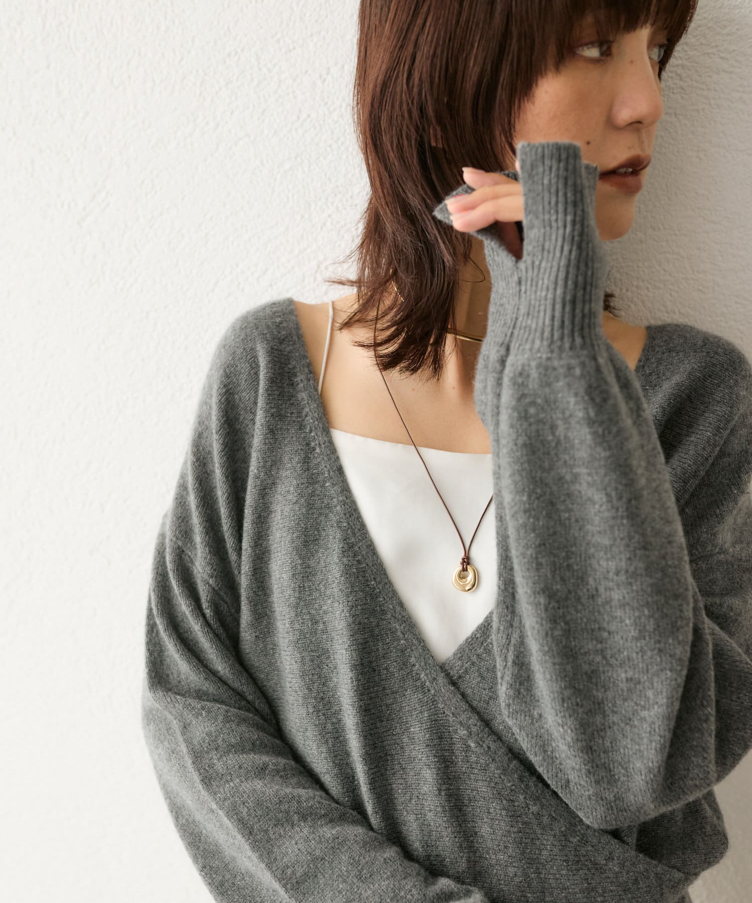 袖リブの長さも着丈に合わせたバランスにしているのでYAK100カシュクールニット(RDZ1042305A0001)とは違った印象で着ていただけます。