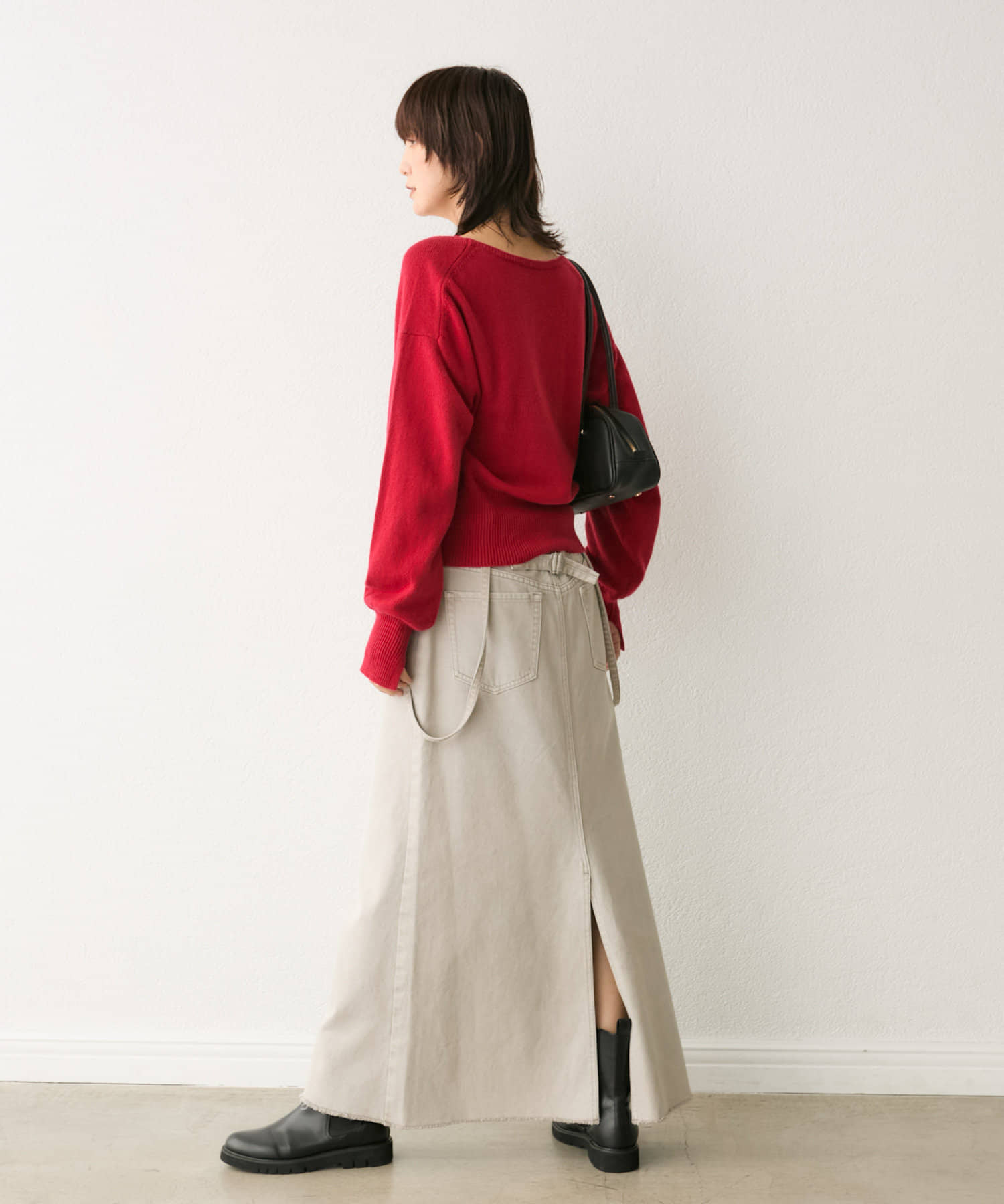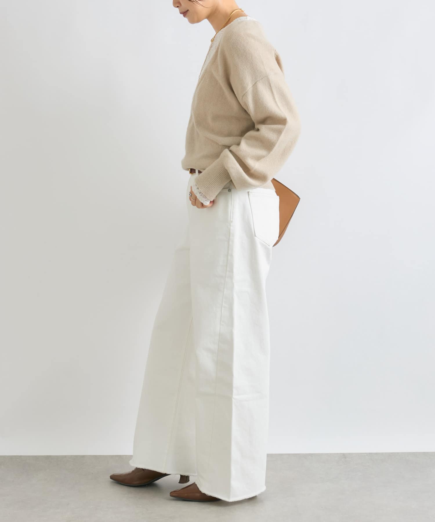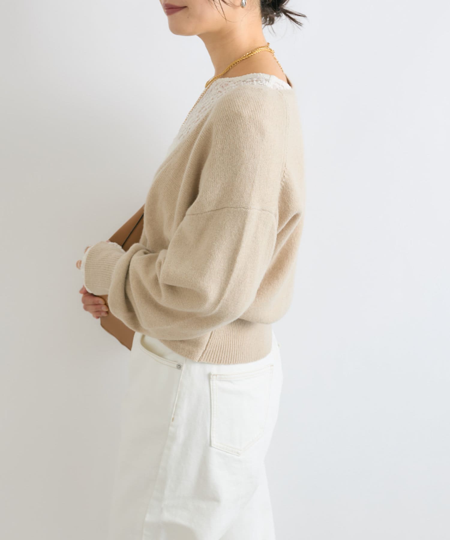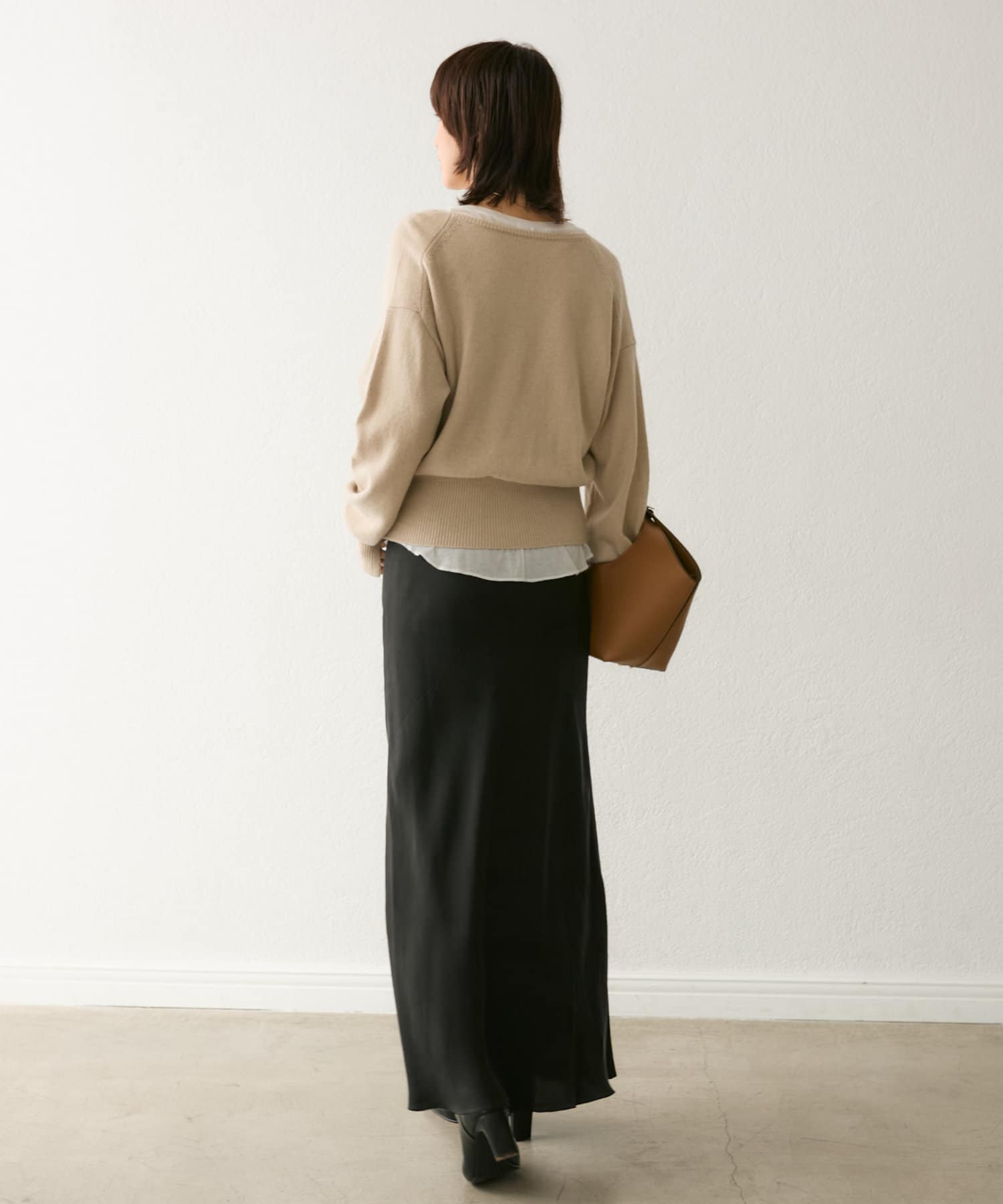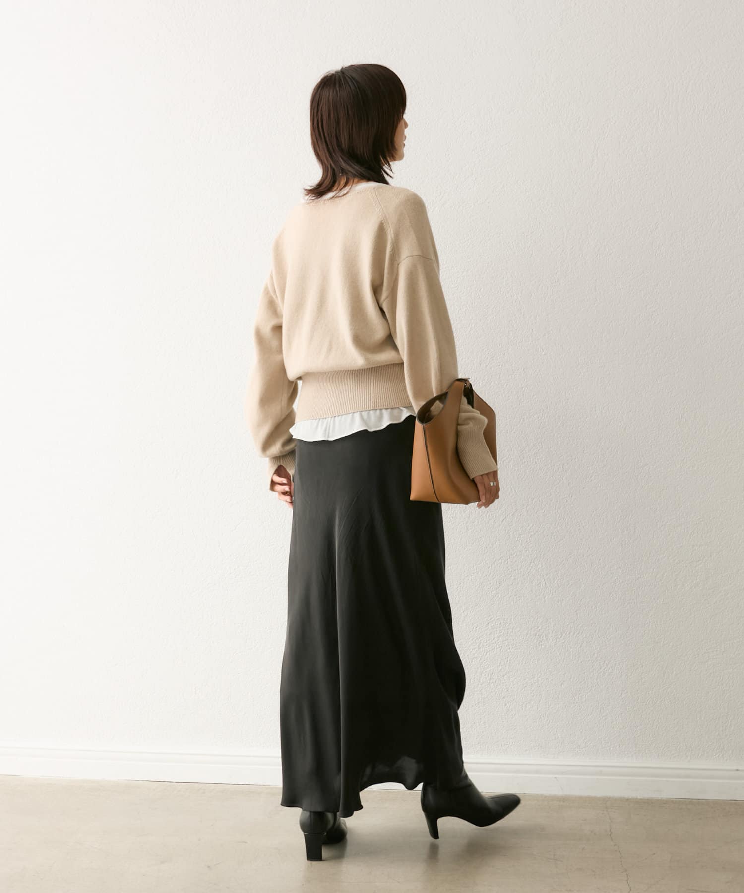 袖リブの長さも着丈に合わせたバランスにしているのでYAK100カシュクールニット(RDZ1042305A0001)とは違った印象で着ていただけます。