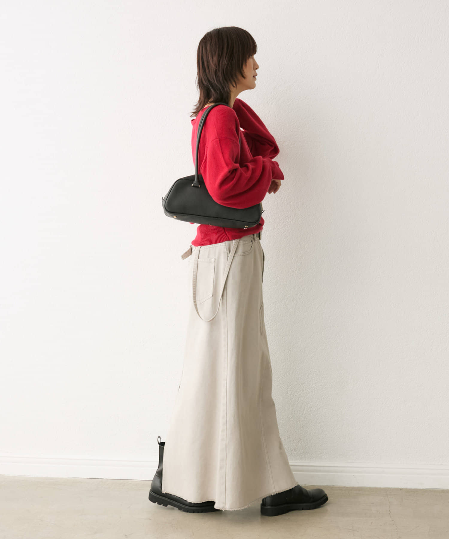 重心が上がって見えるのでボリュームのあるボトムとのバランスがとりやすく、お腹まわりもスッキリ見えるところがポイント。