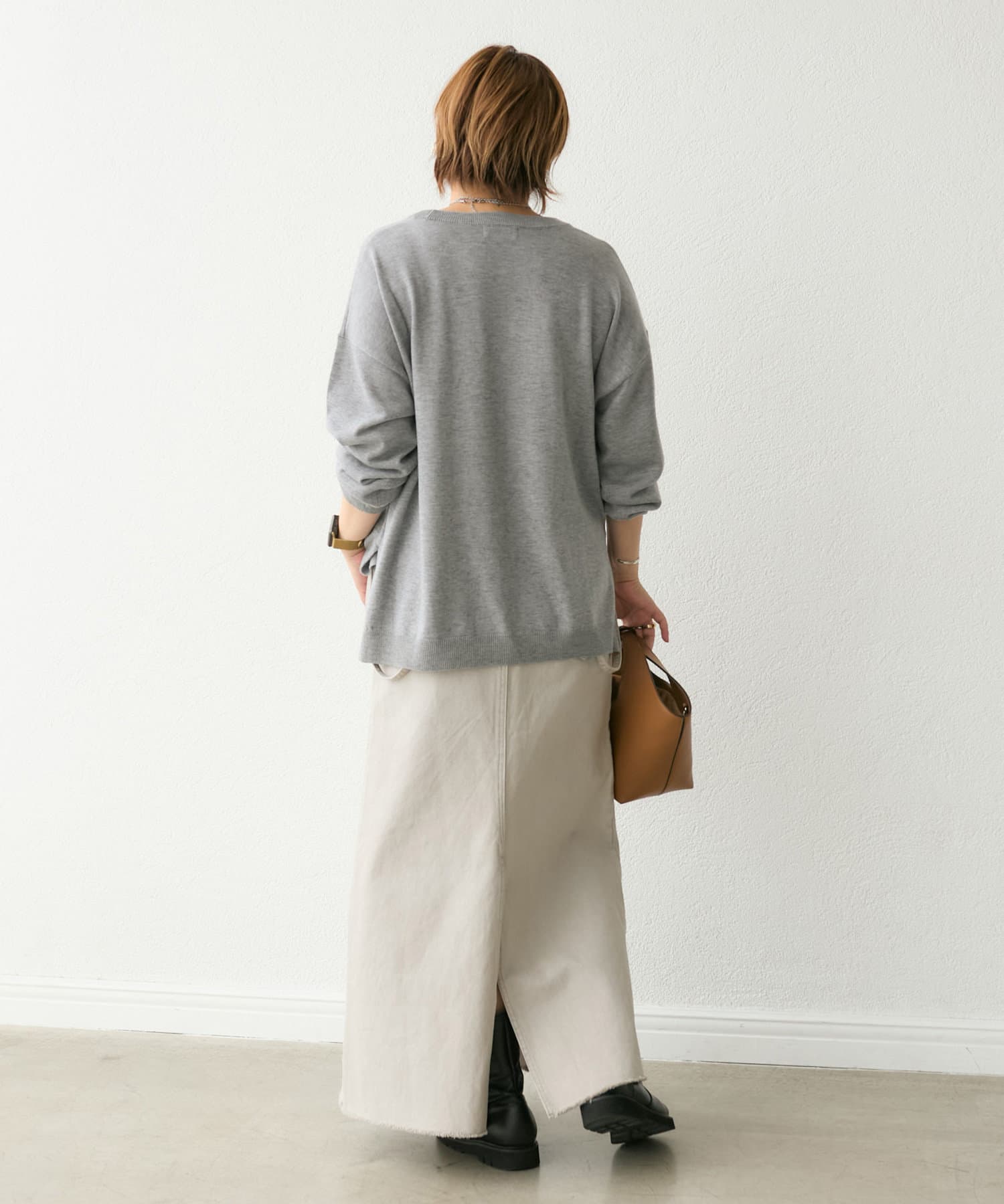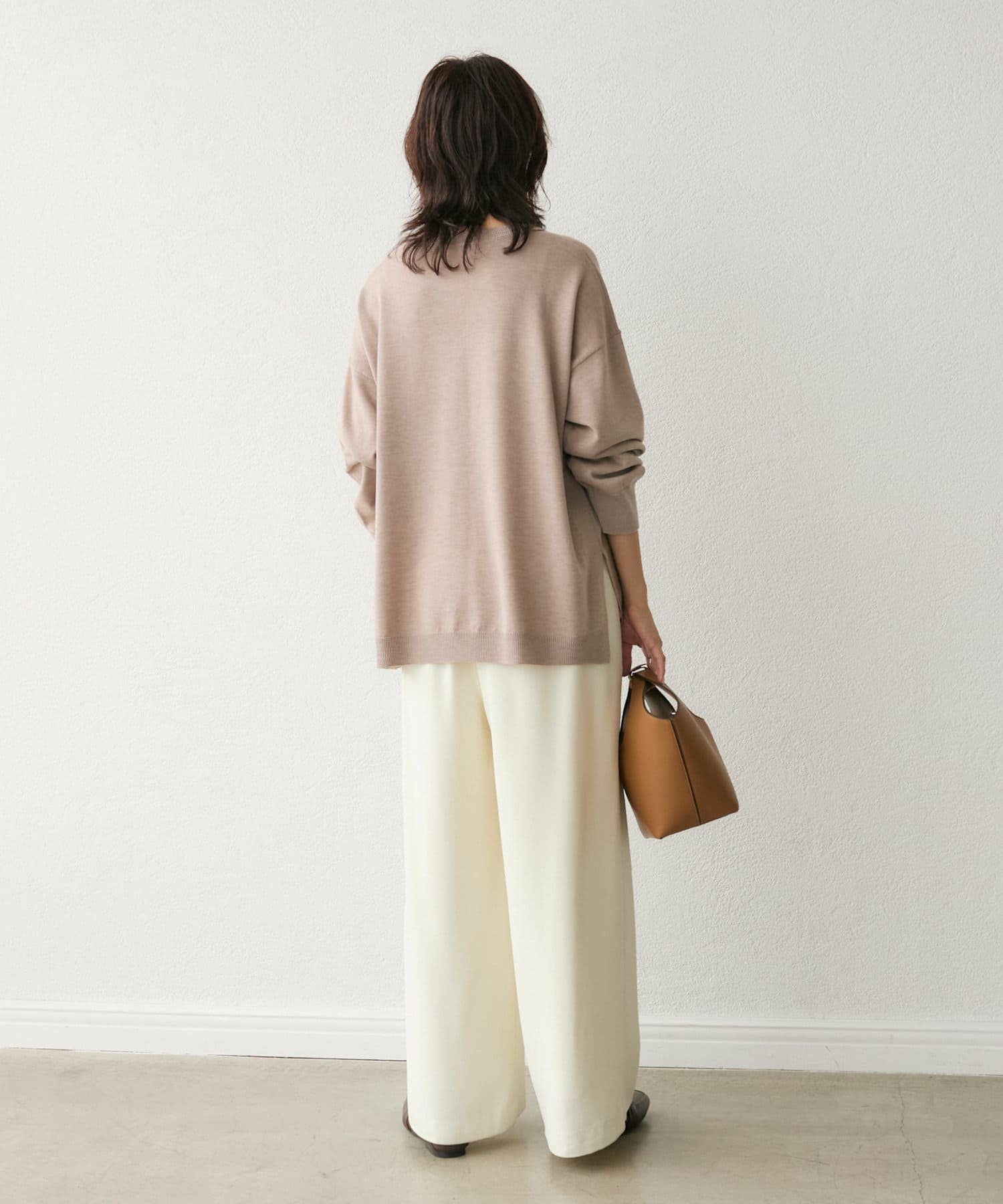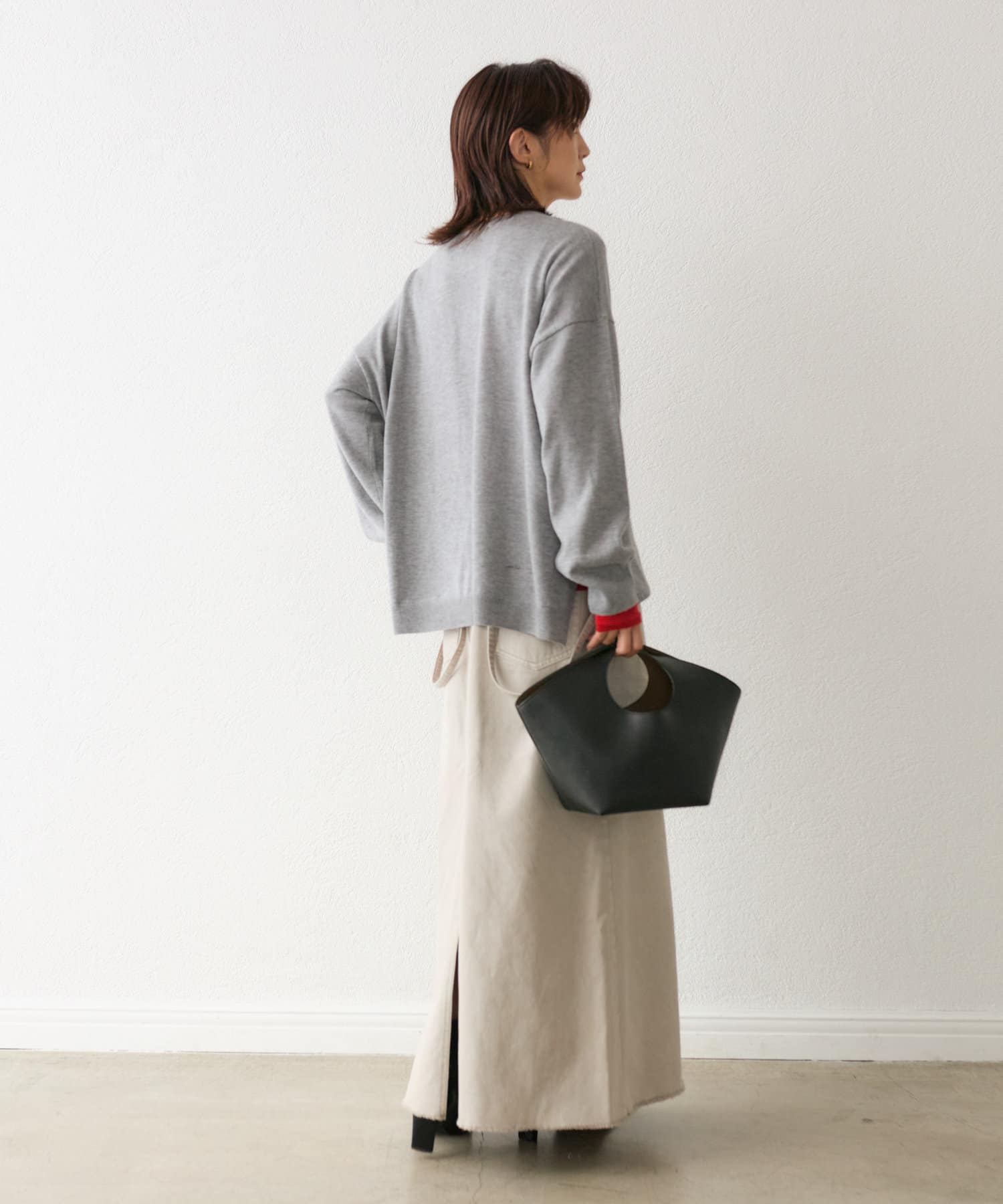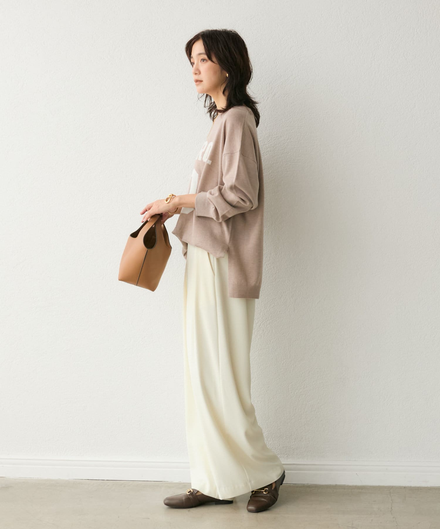 程よくヌケのあるクルーネックや、ロンTEEやシャツが入れやすい肩の力の抜けたシルエットも魅力。