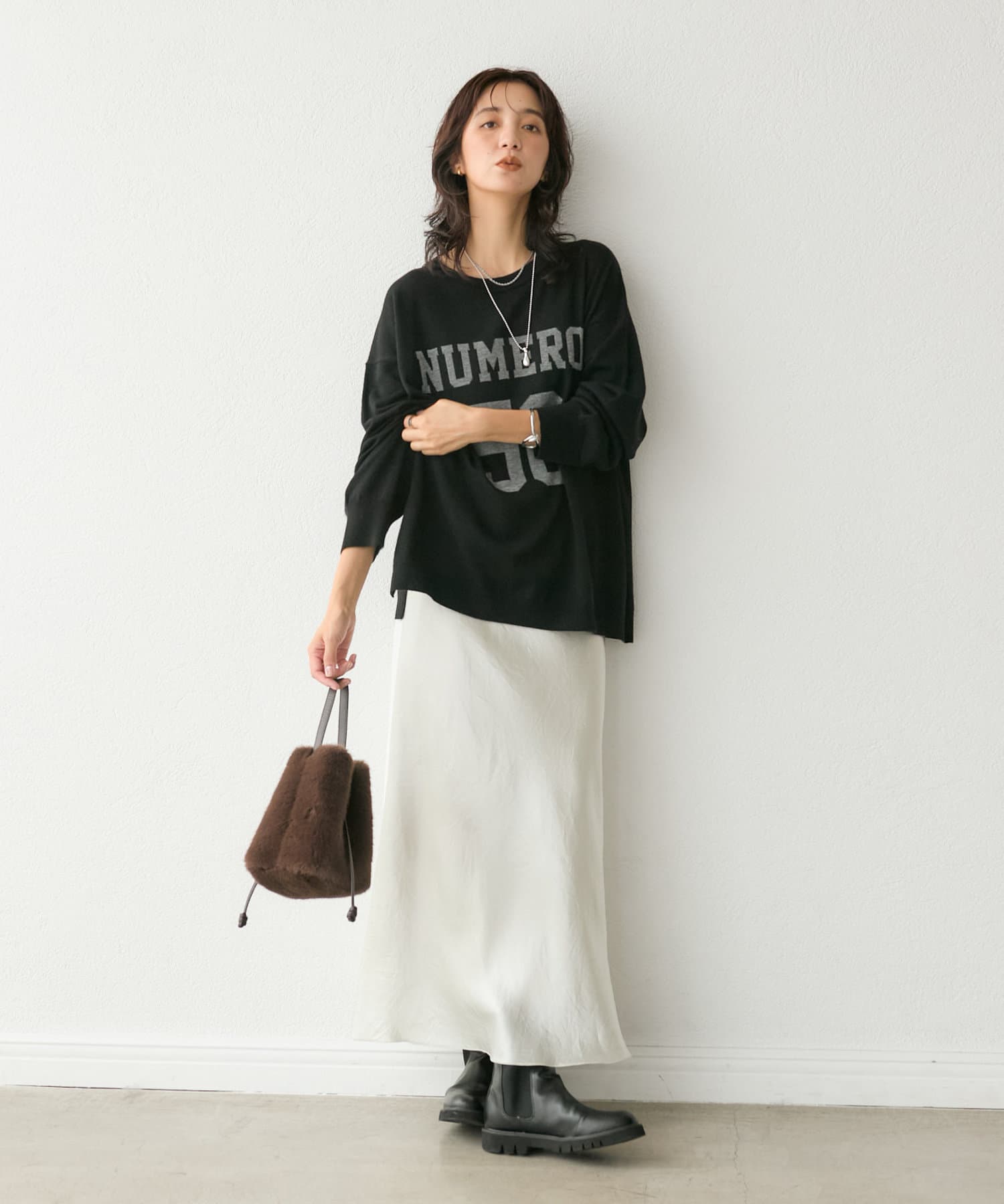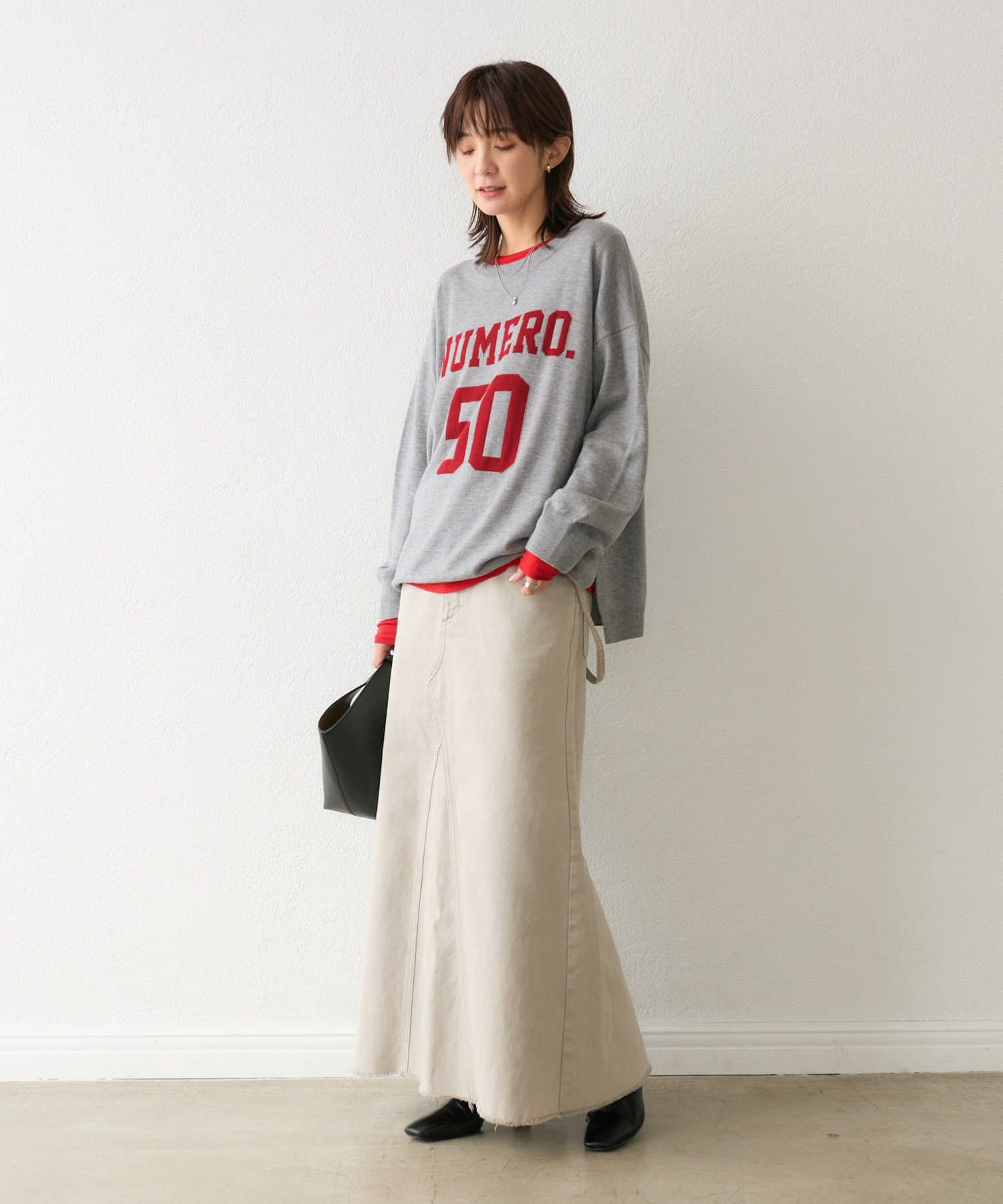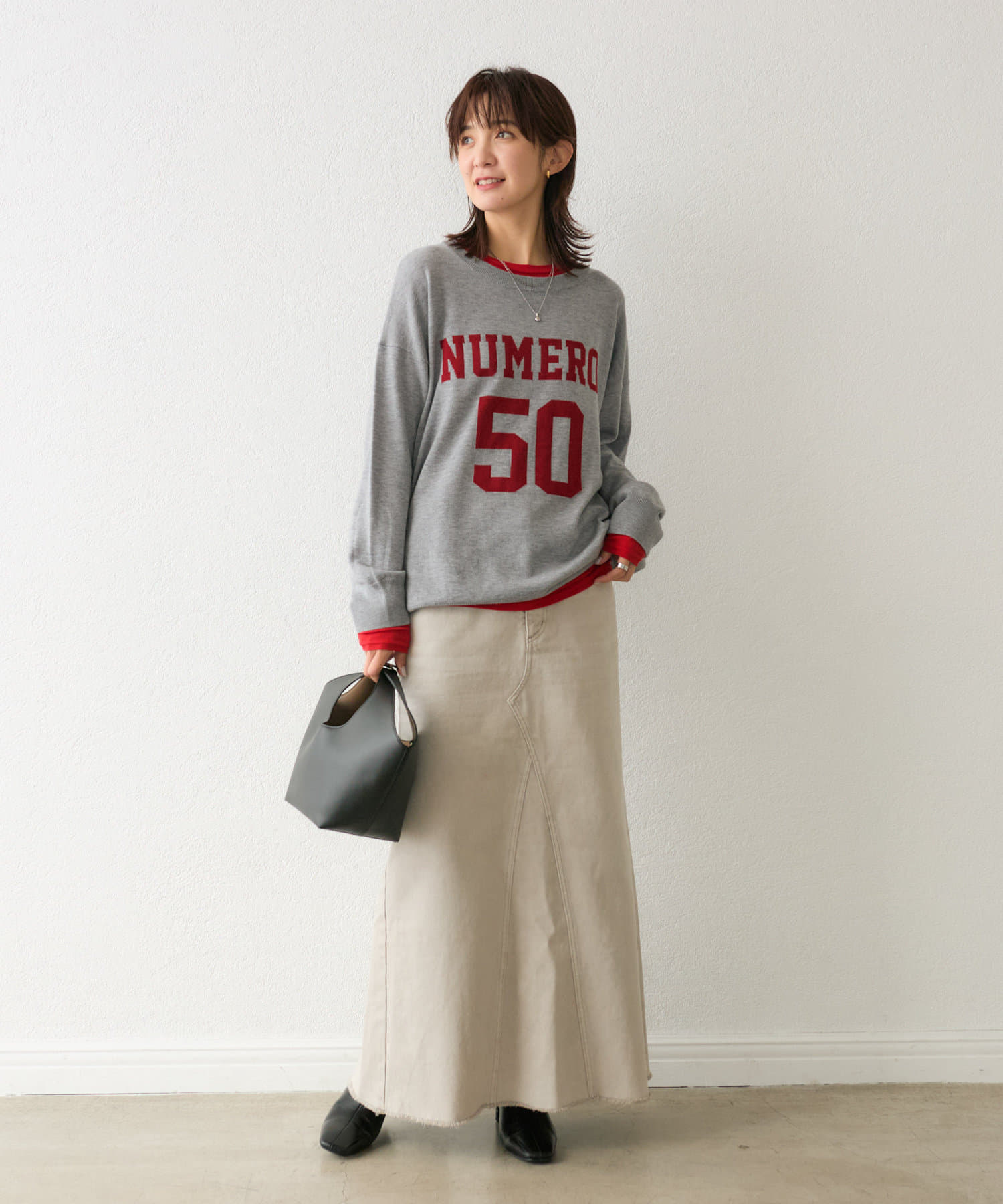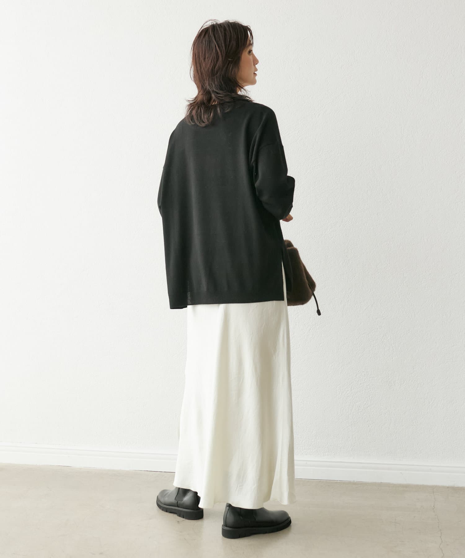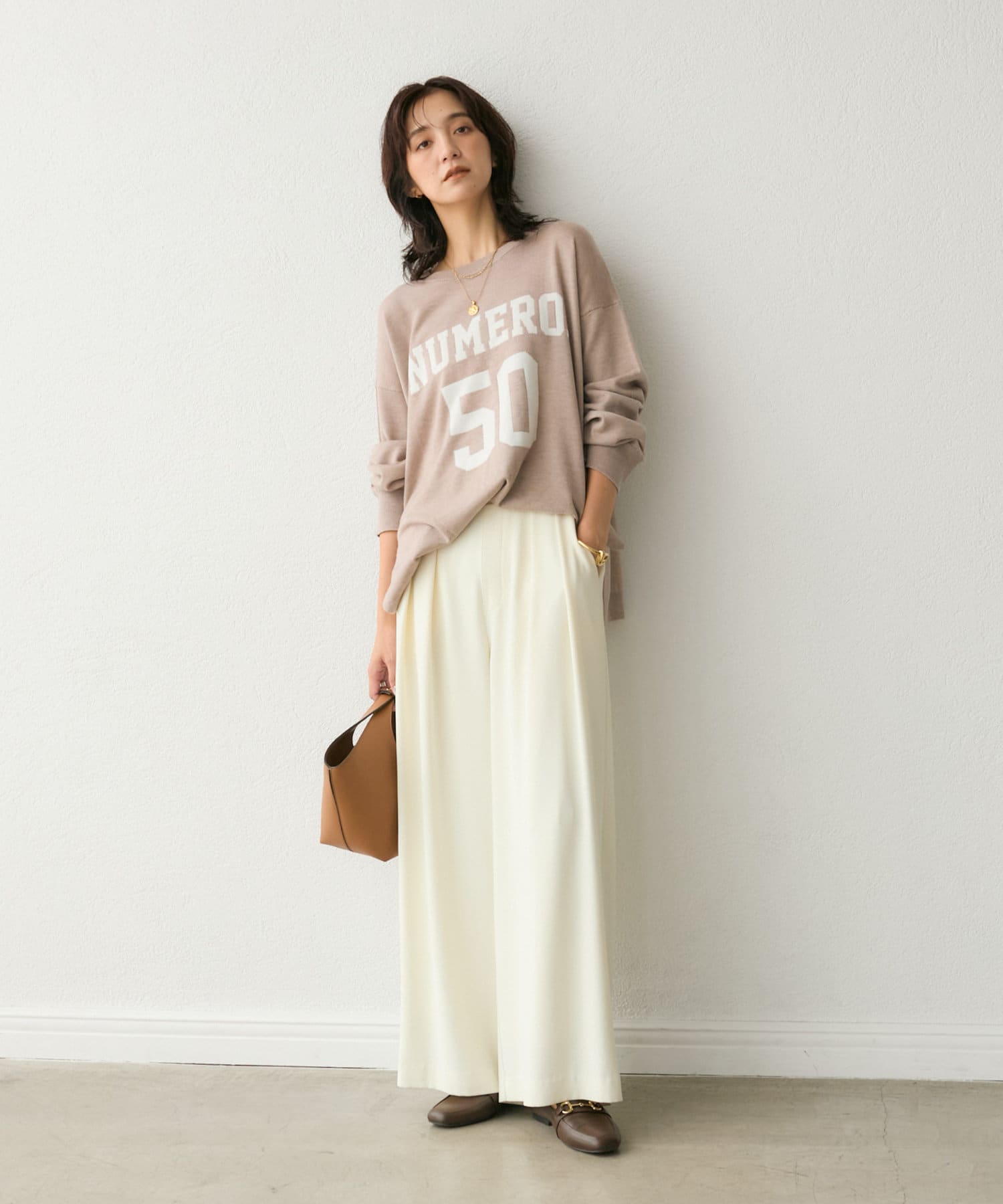 程よくヌケのあるクルーネックや、ロンTEEやシャツが入れやすい肩の力の抜けたシルエットも魅力。