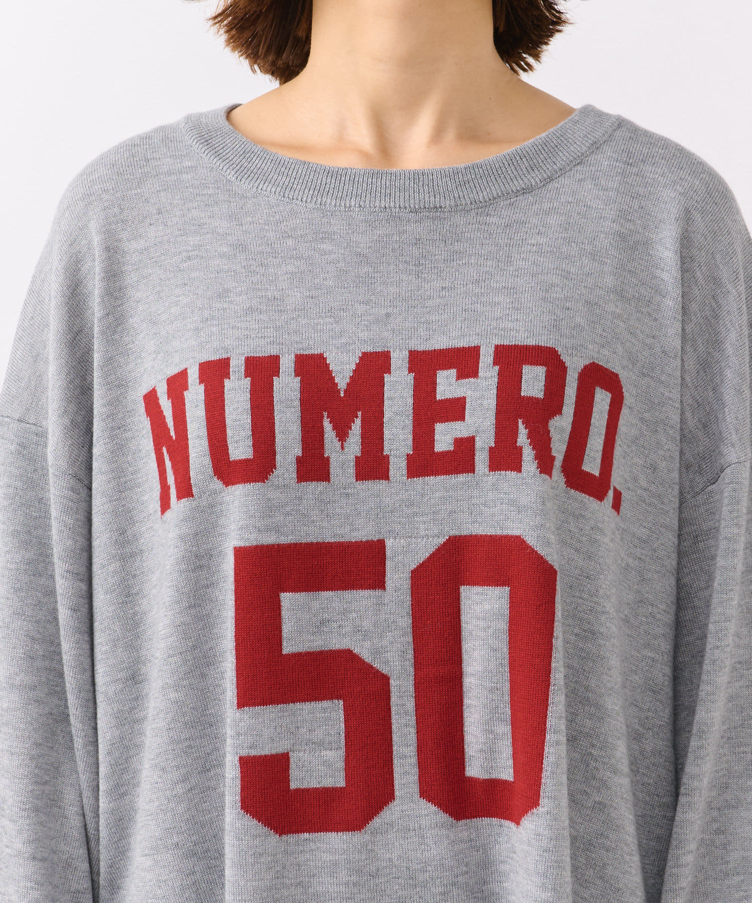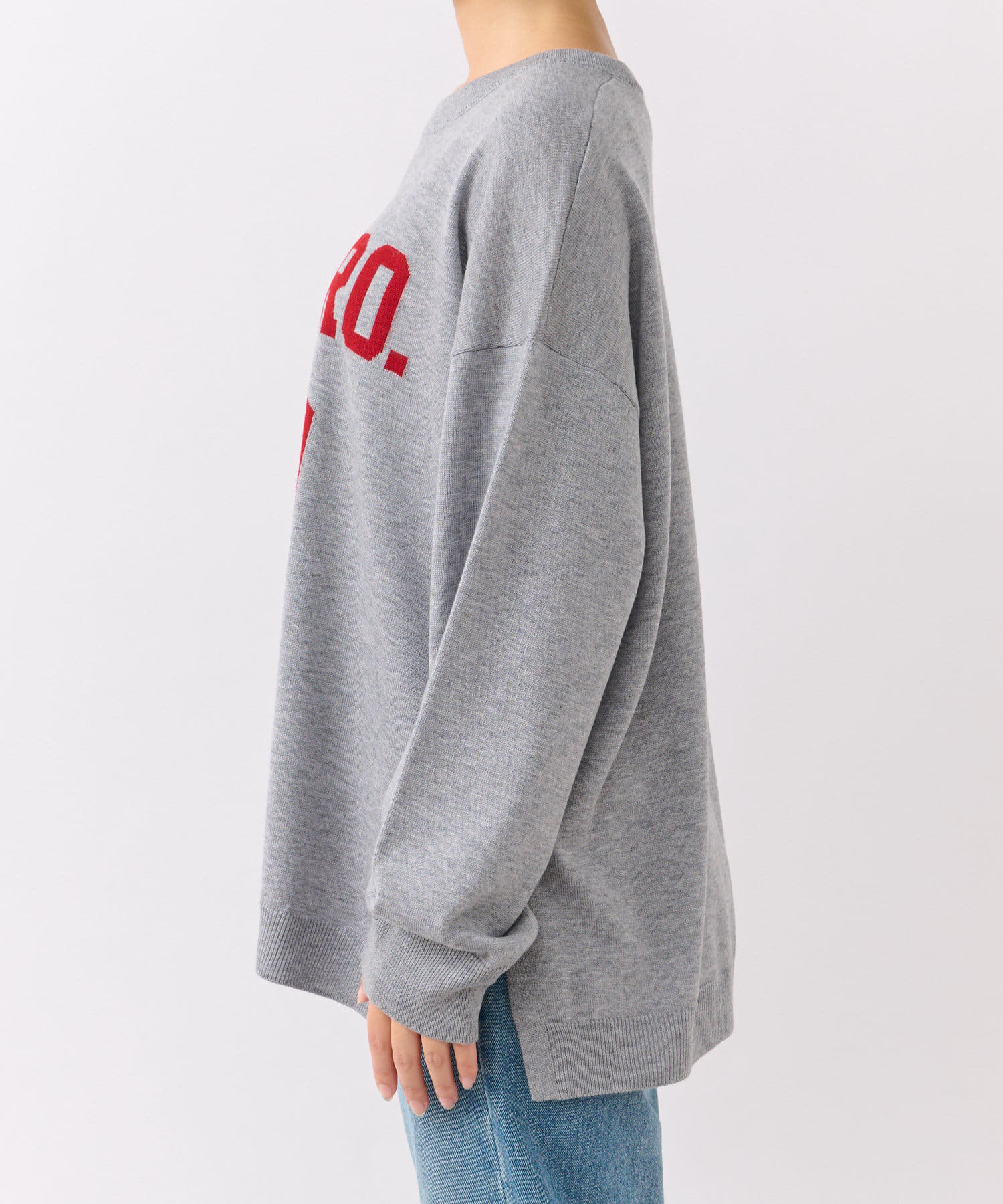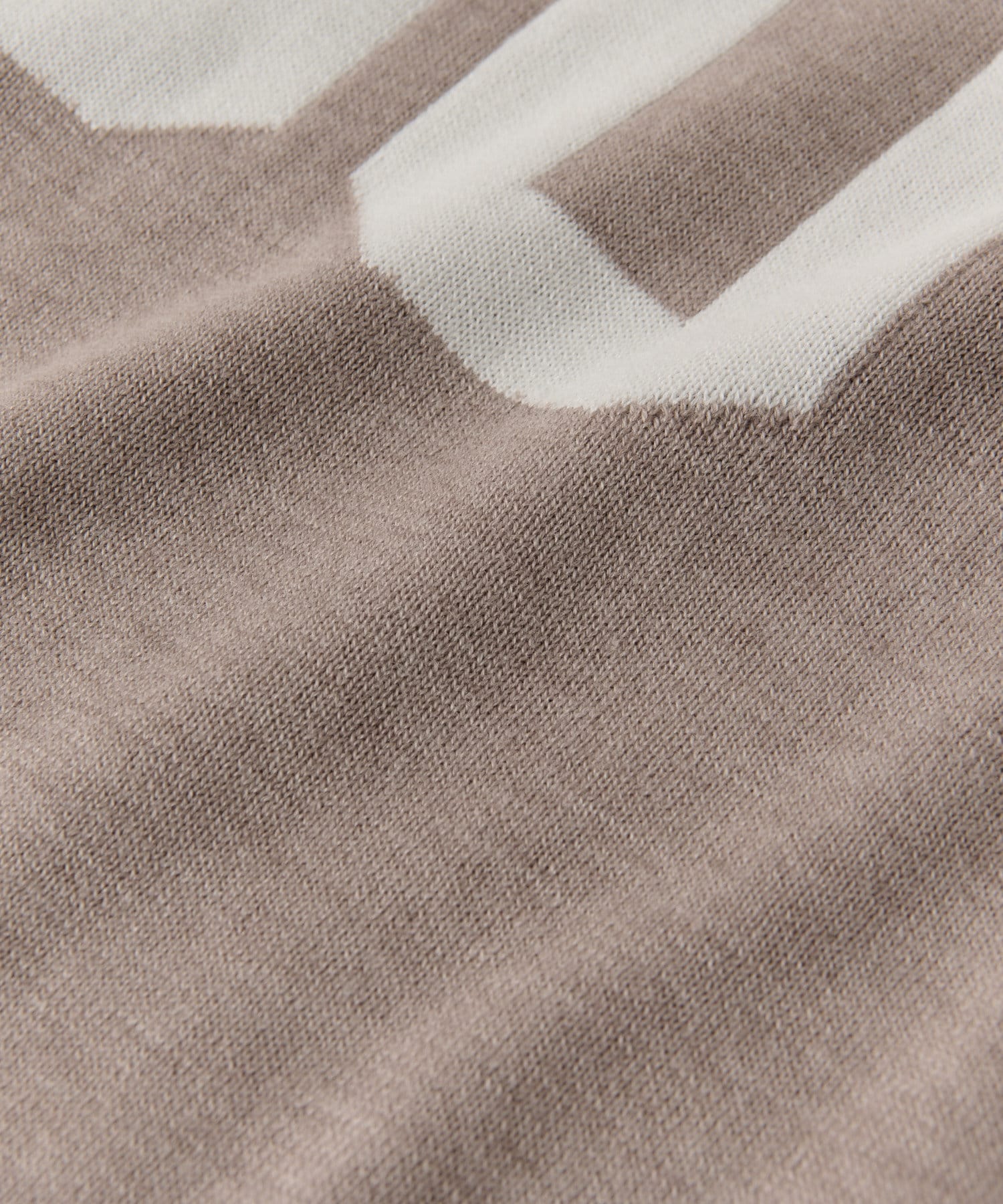 ウール混のセミ梳毛を使用したハイゲージロゴニット。