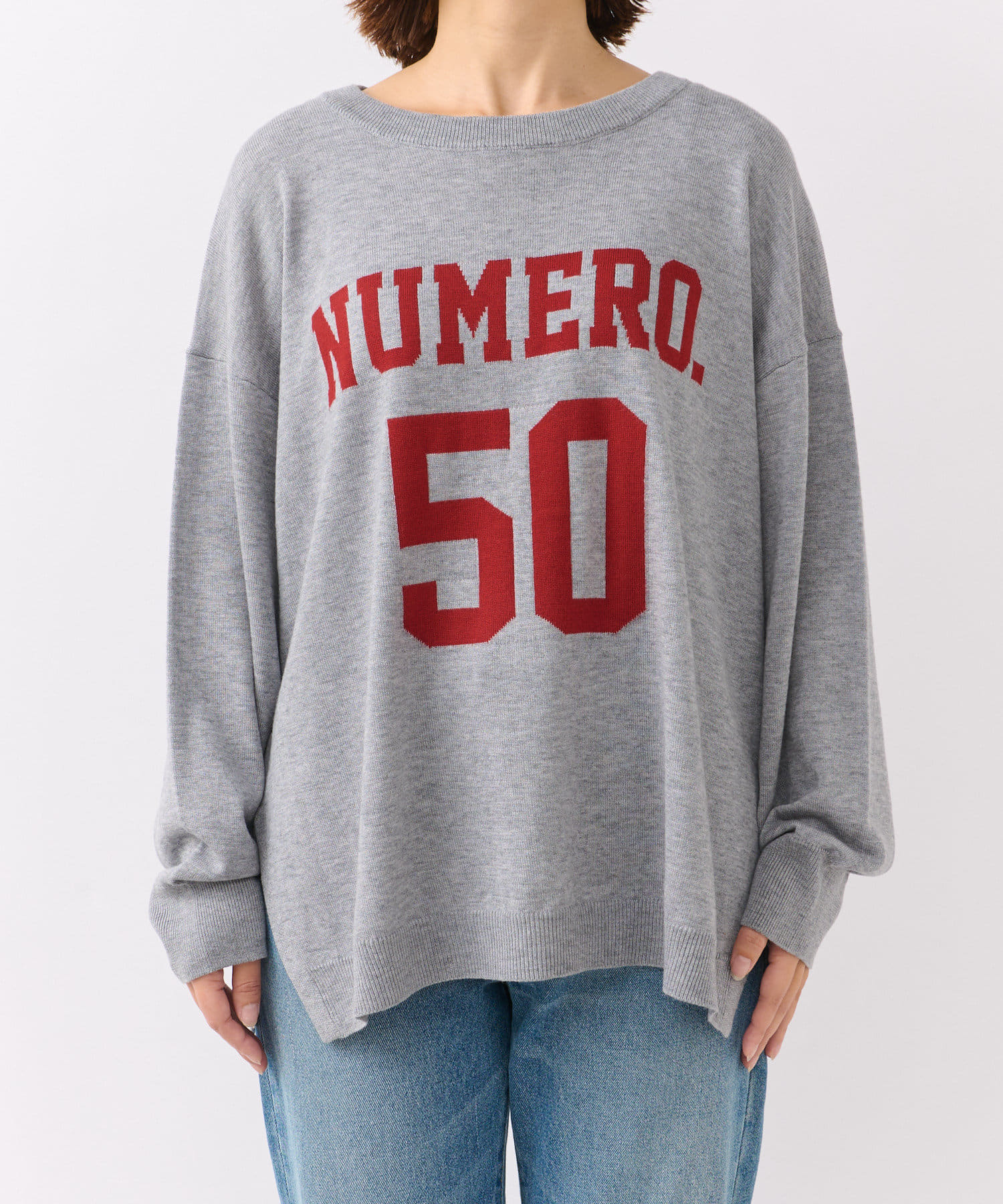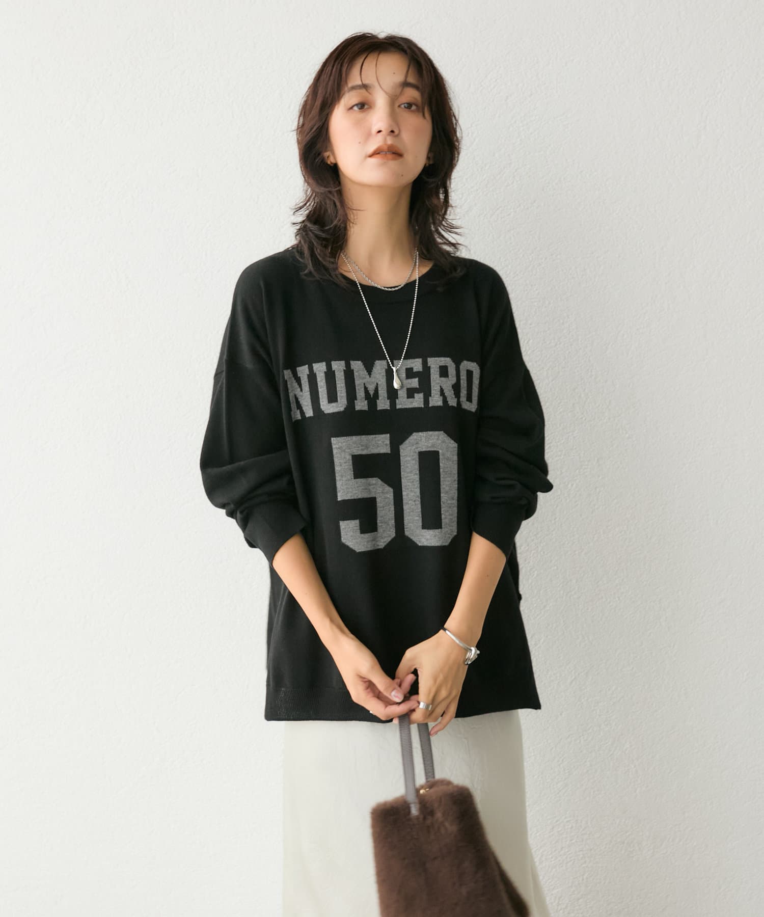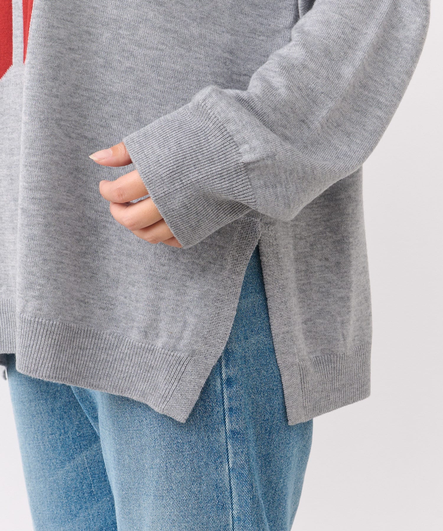ウール混のセミ梳毛を使用したハイゲージロゴニット。
