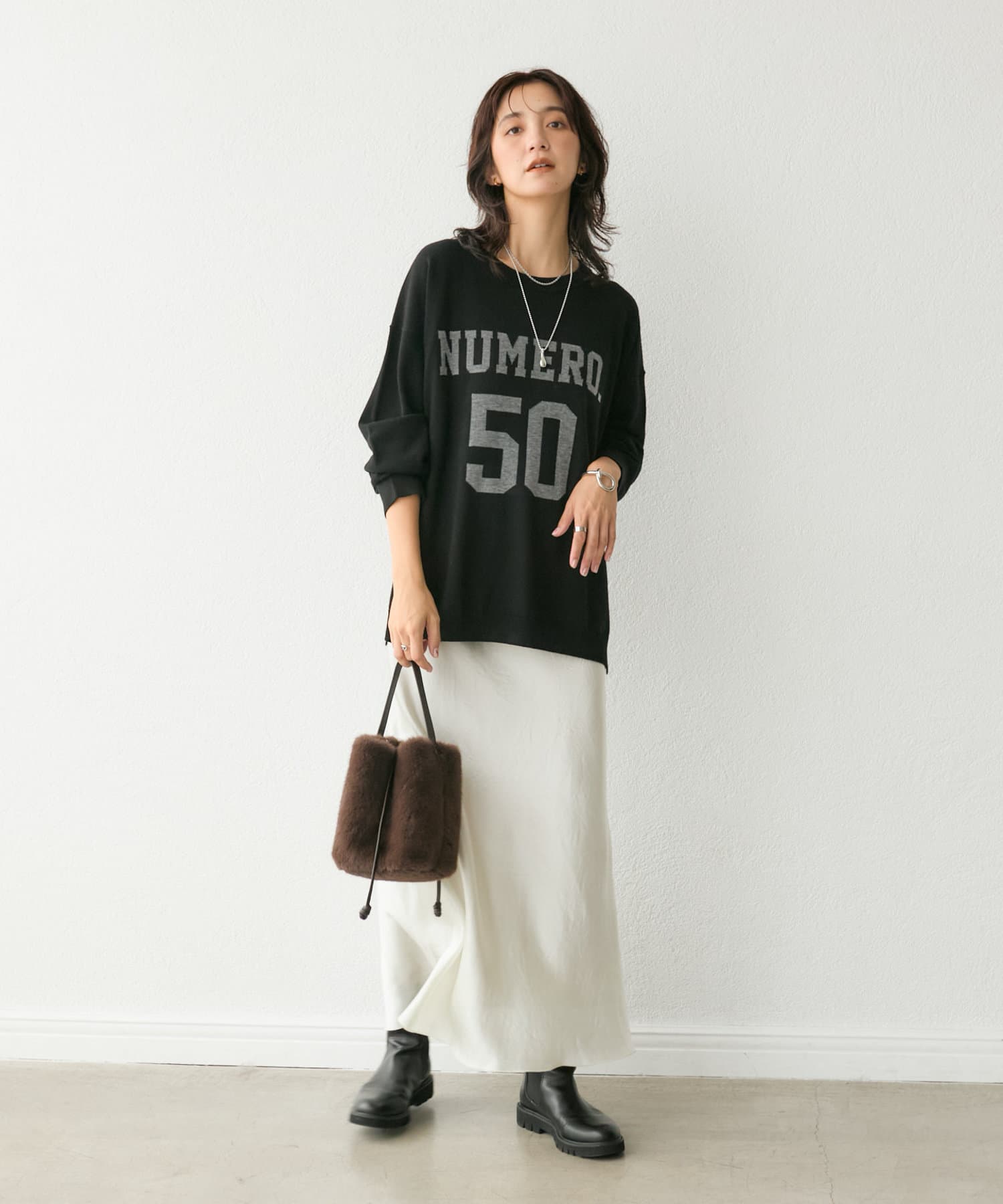 ベージュとブラックは大人が着やすいなじませロゴに。ワントーンの大人な着こなしも楽しんでいただけるカラーです。