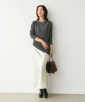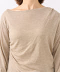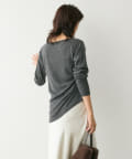 ボートネックでデコルテラインも綺麗に見え、また少しシェイプの入ったウエストラインでスタイルアップ効果も◎