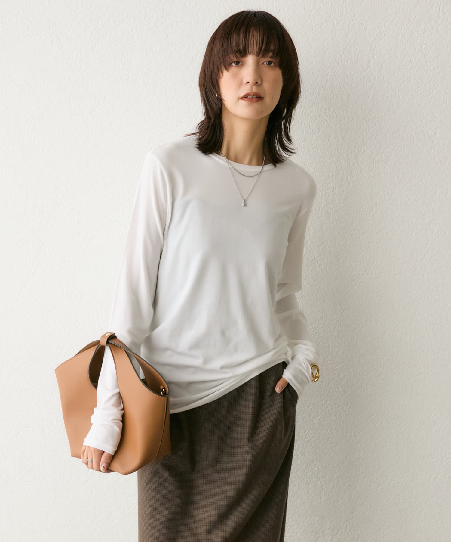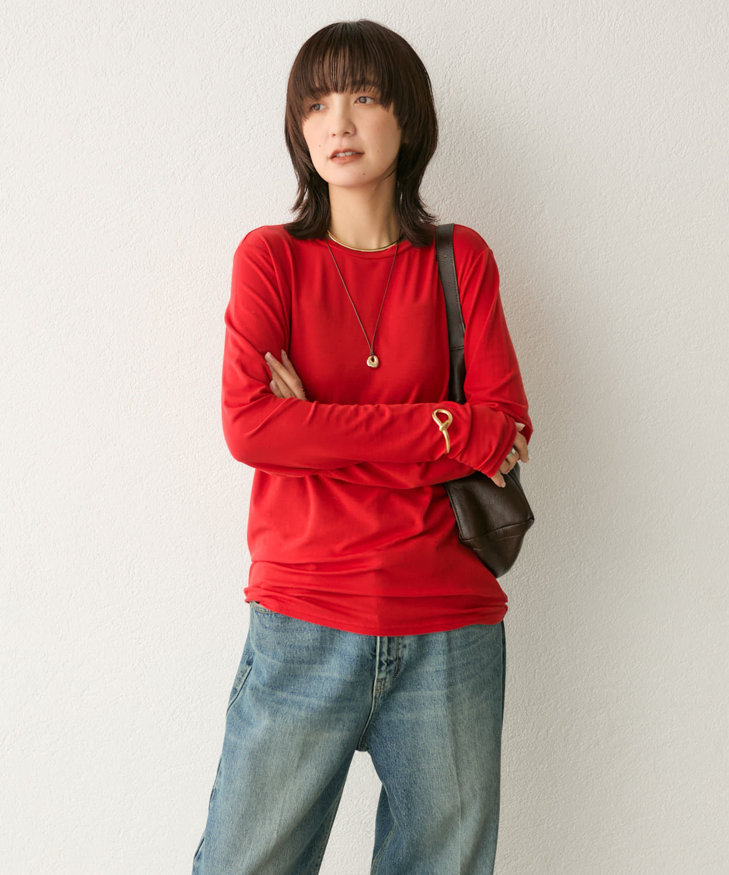 なめらかで柔らかく肌触りが心地よいリヨセルフライス素材を使用した、シンプルで使いやすいカットソー。