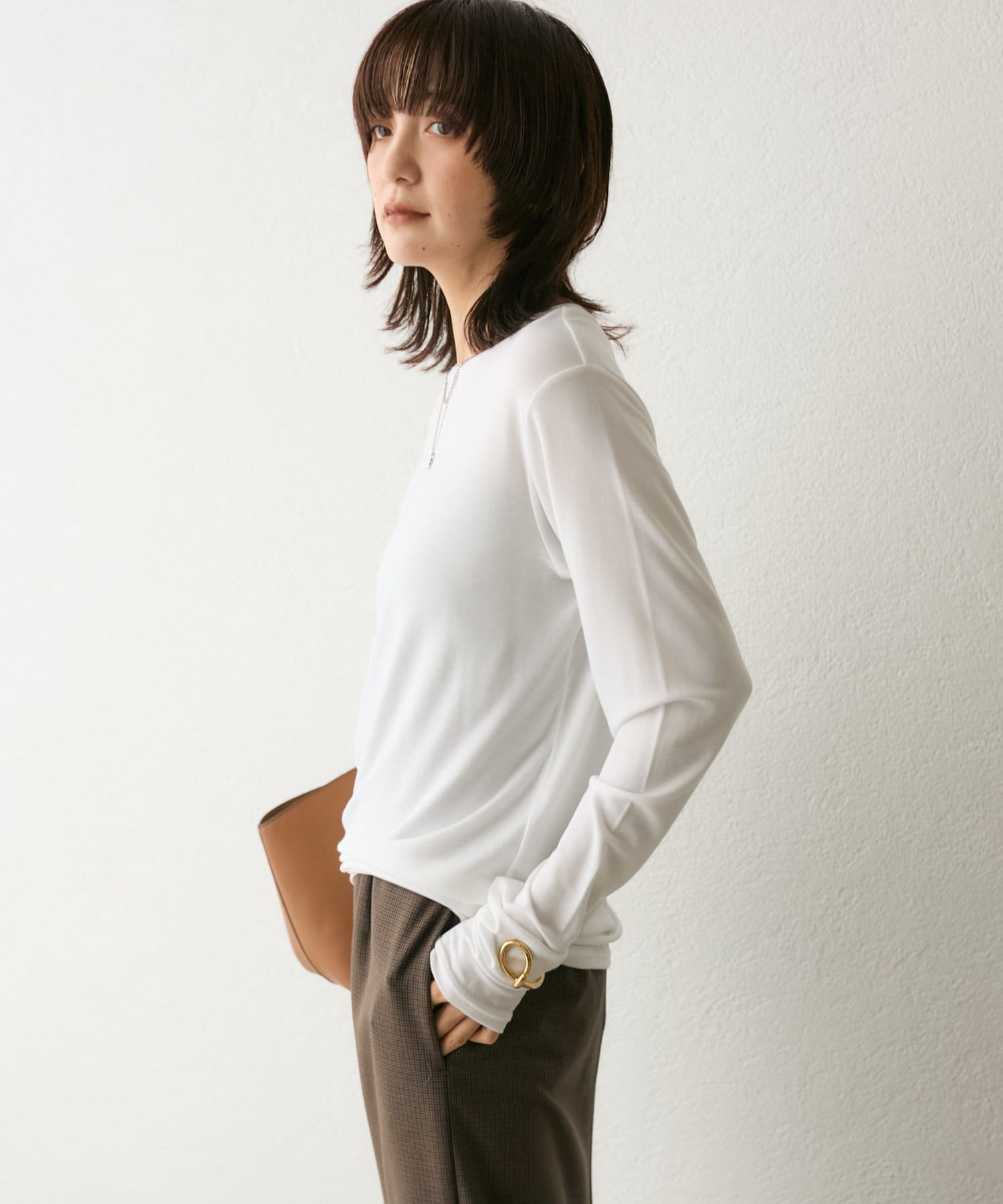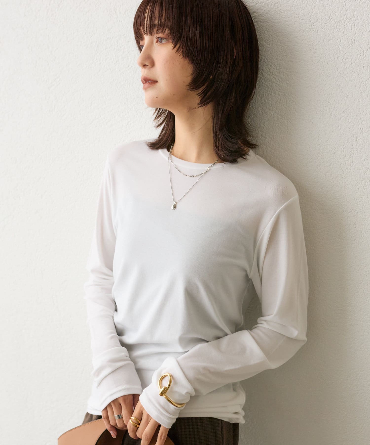 ニットなどのインナーとしてさりげなく襟元からのぞかせたり、袖口からのぞかせたりしていただけるサイズ感になっており、
