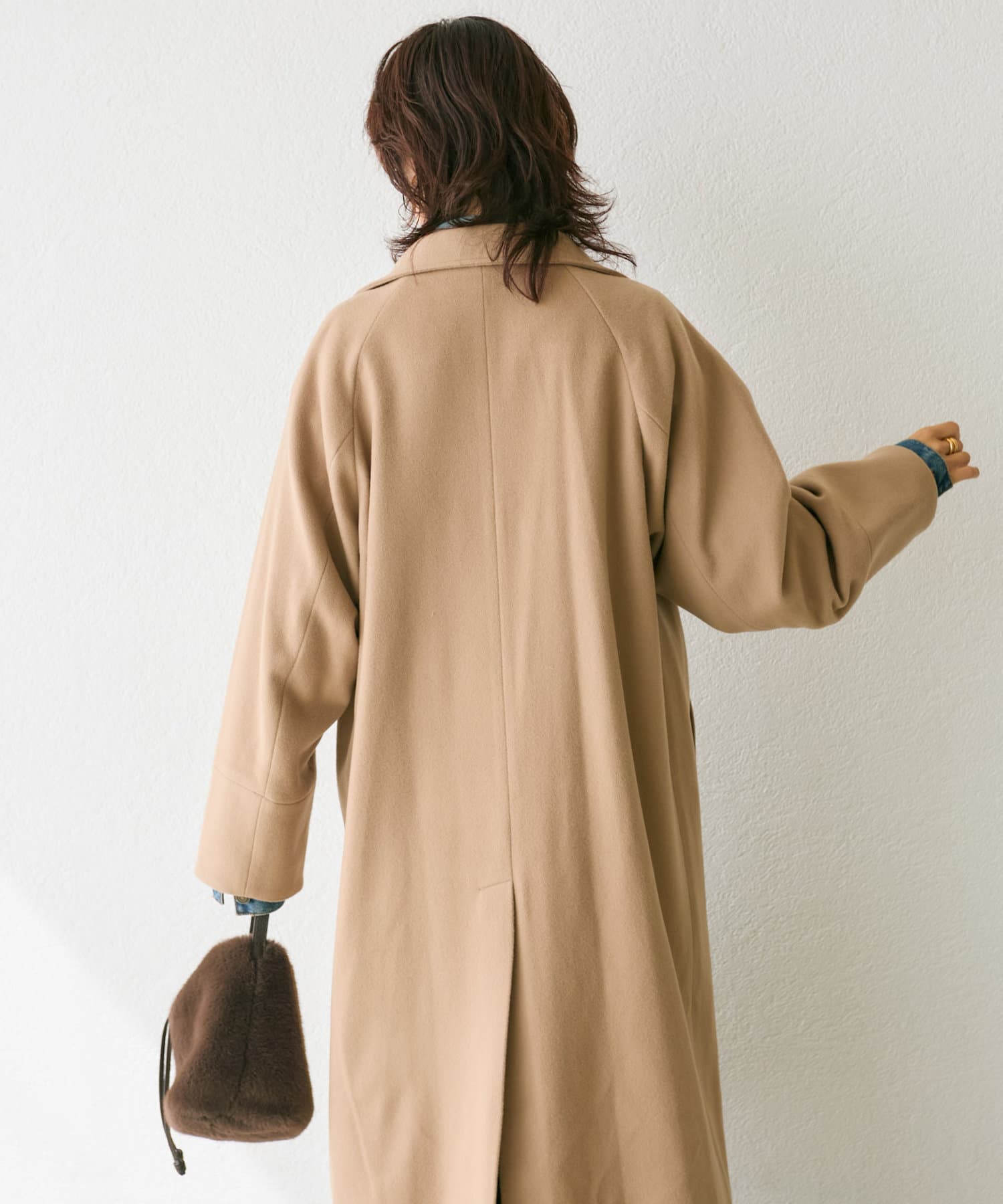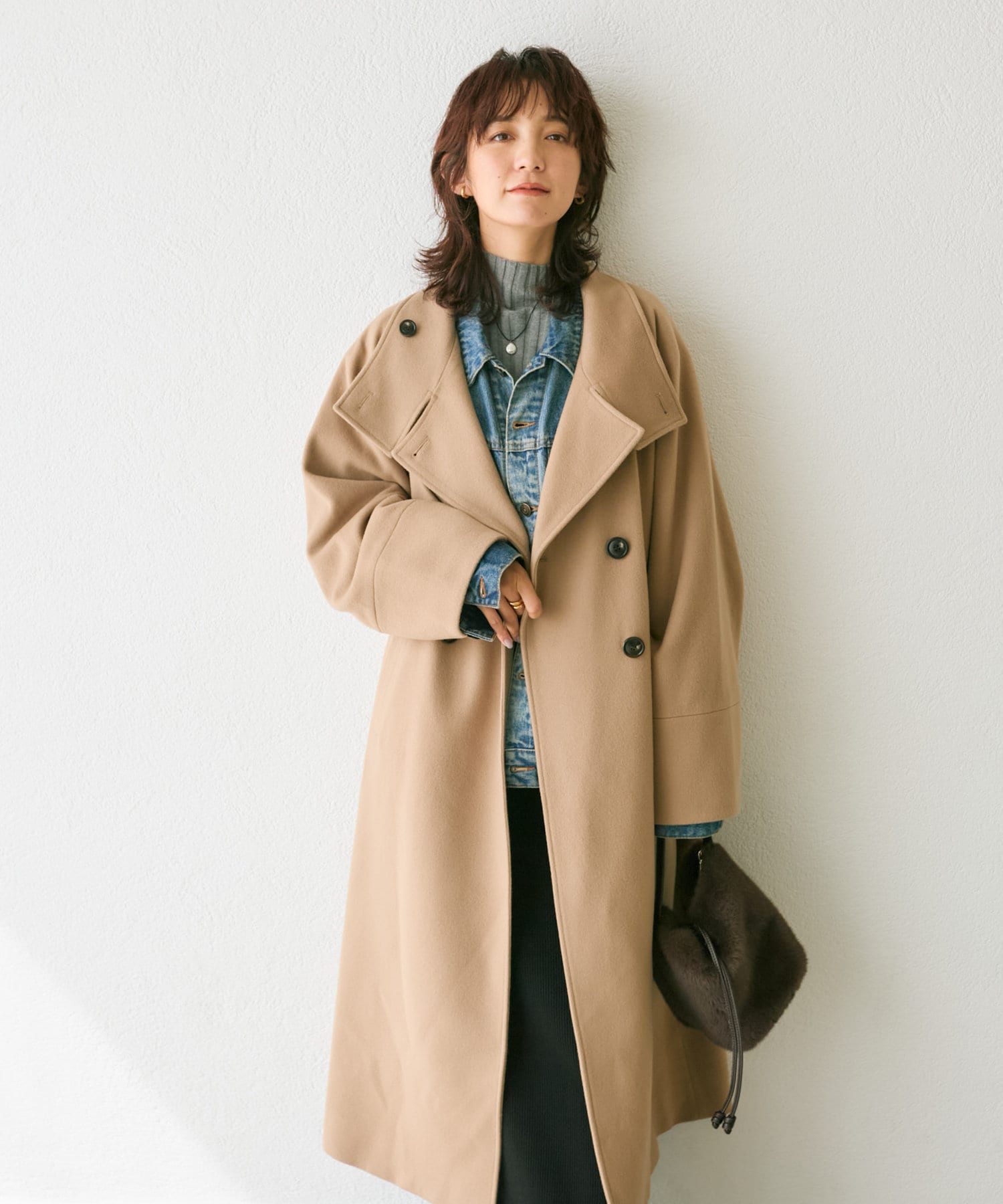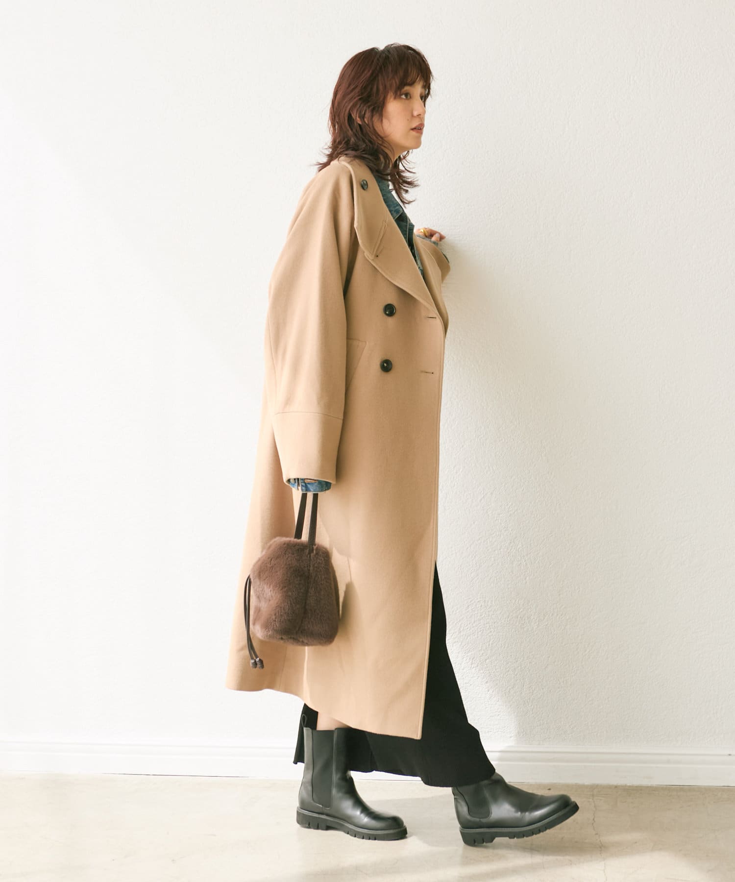 着丈は長めで、冬も暖かく、また、羽織るだけでトレンドライクに決まります。