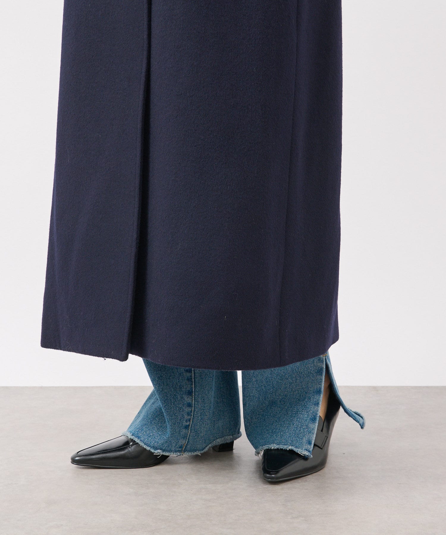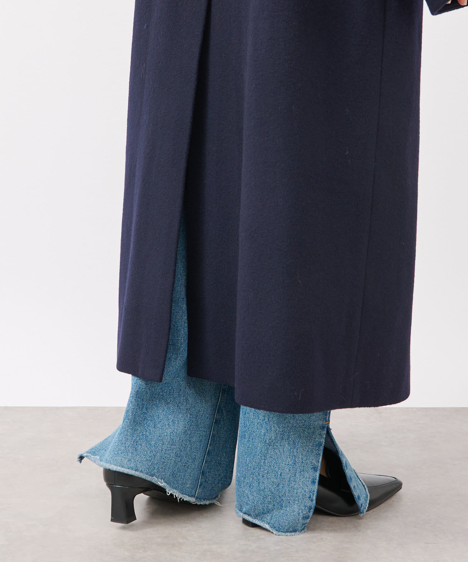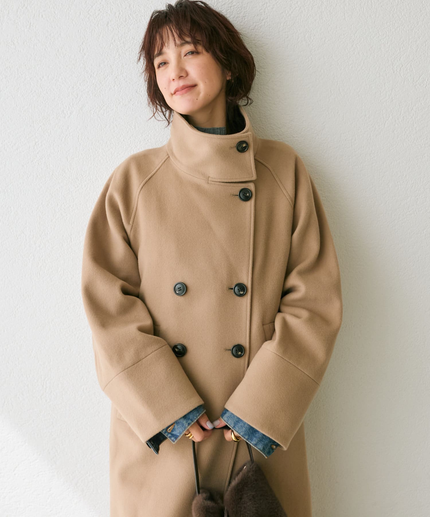 着丈は長めで、冬も暖かく、また、羽織るだけでトレンドライクに決まります。
