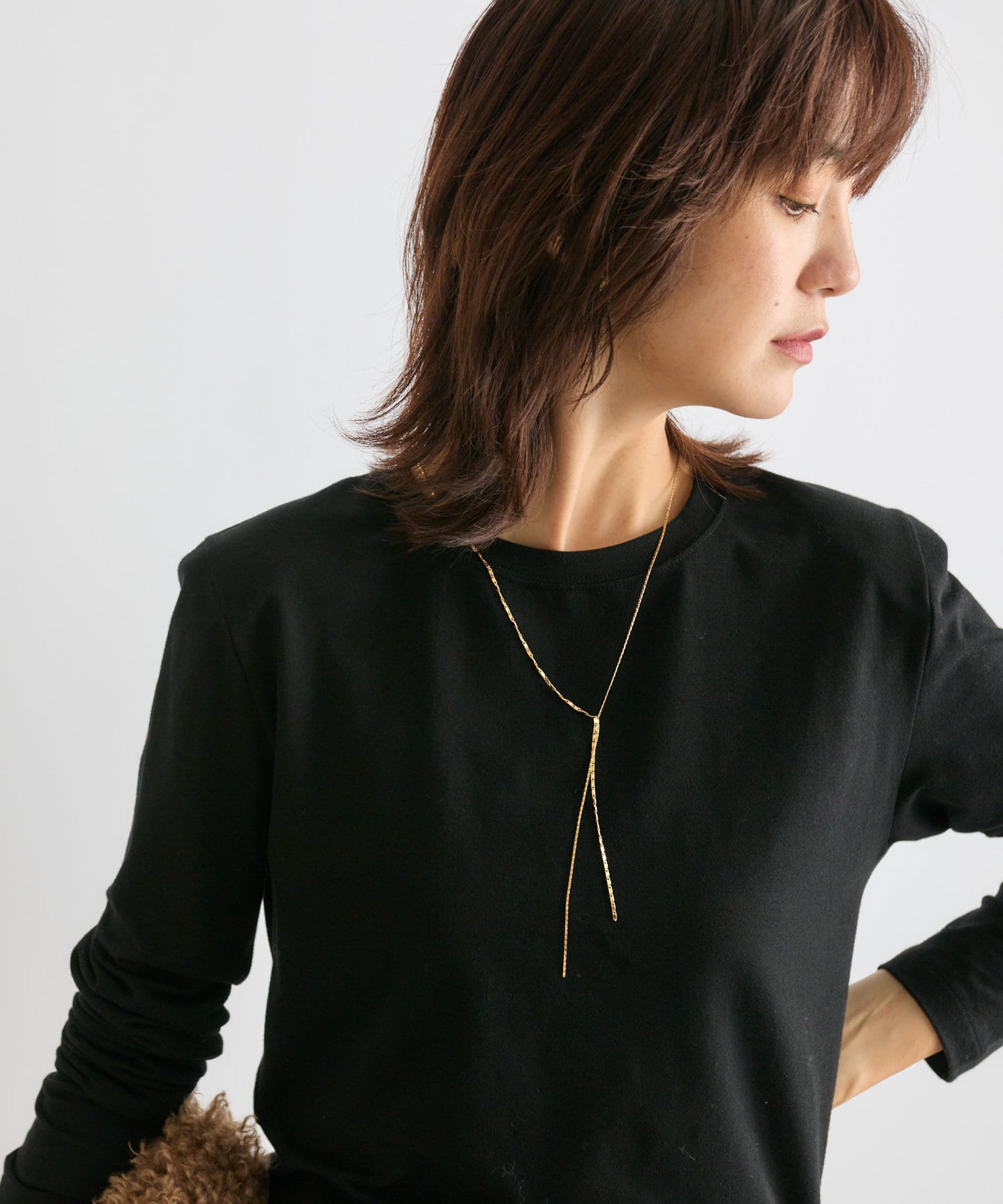 シンプルなデザインながら、きらきらとさりげない存在感を発揮するネックレス。