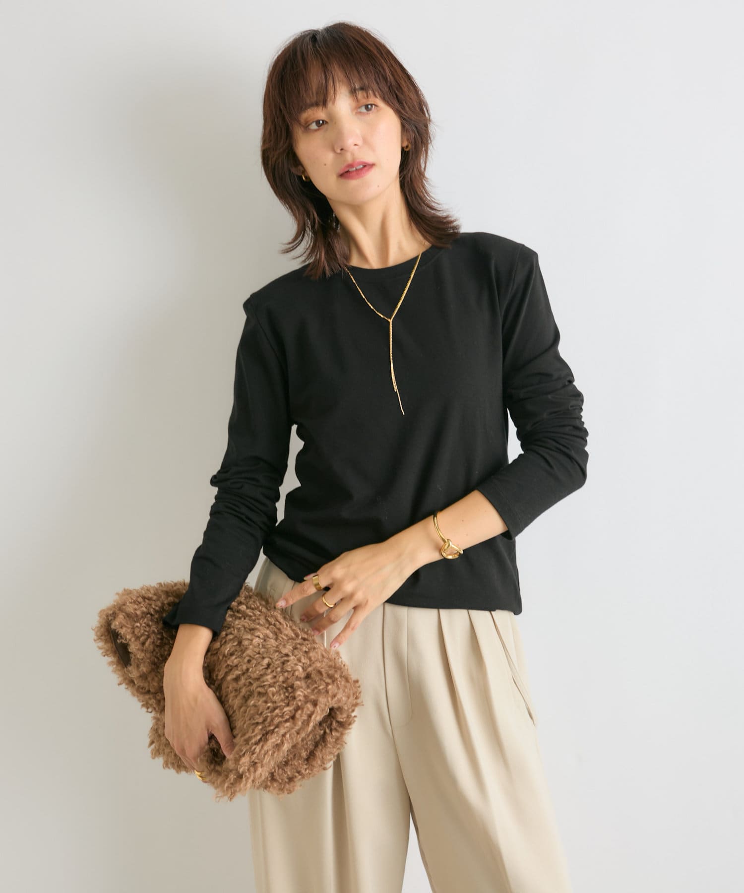 カジュアルにもキレイ目にも使いやすいデザインで、オフィスにもおすすめ。