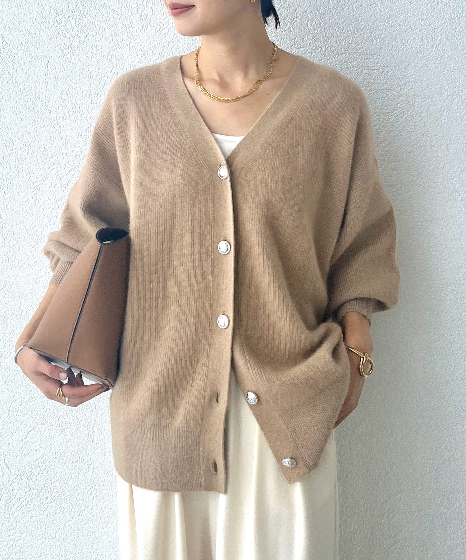 シンプルなトップスと合わせるだけでも十分ポイントになってくれます。