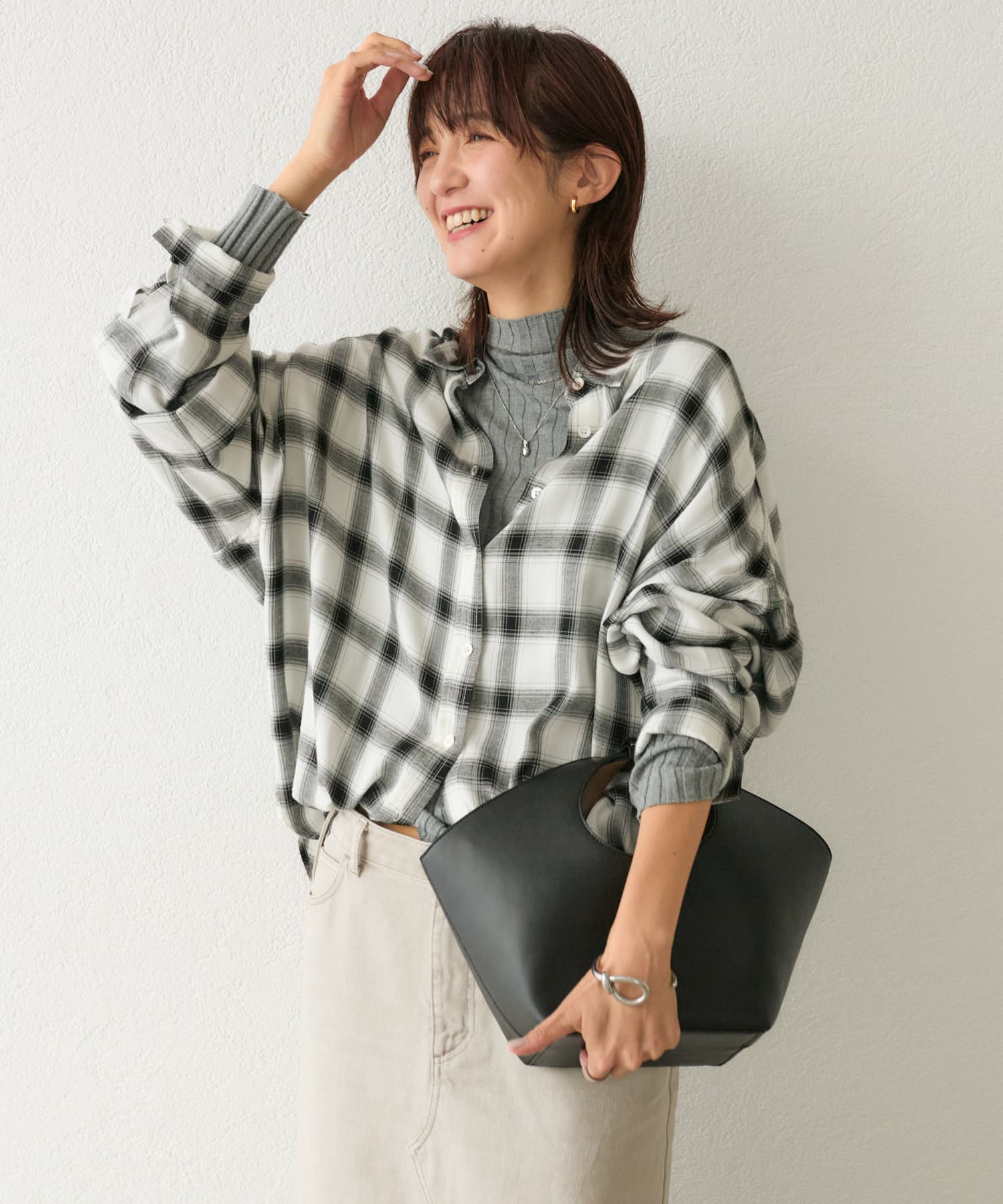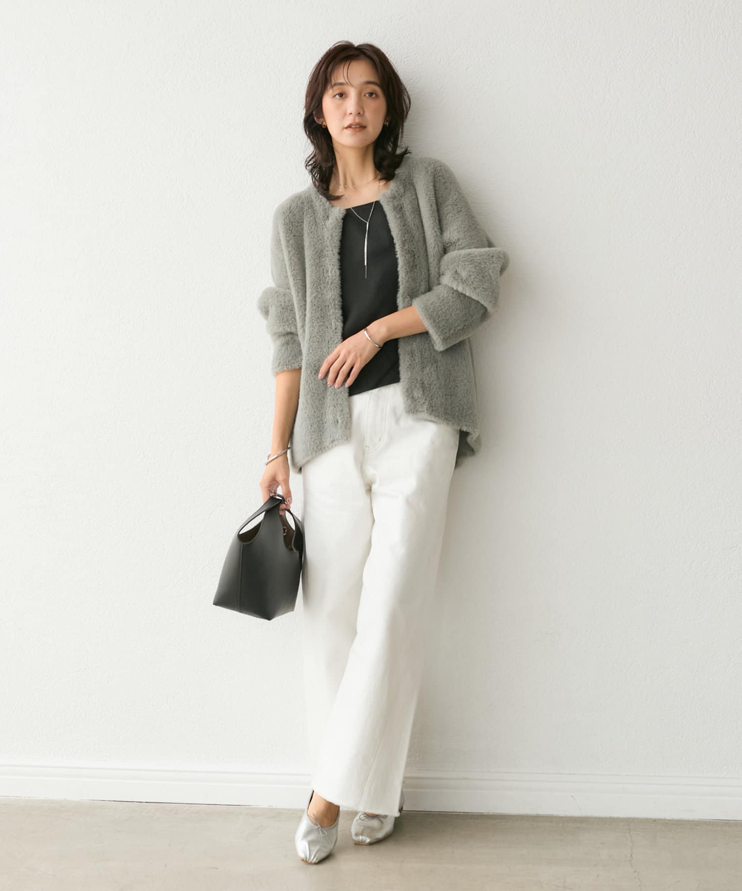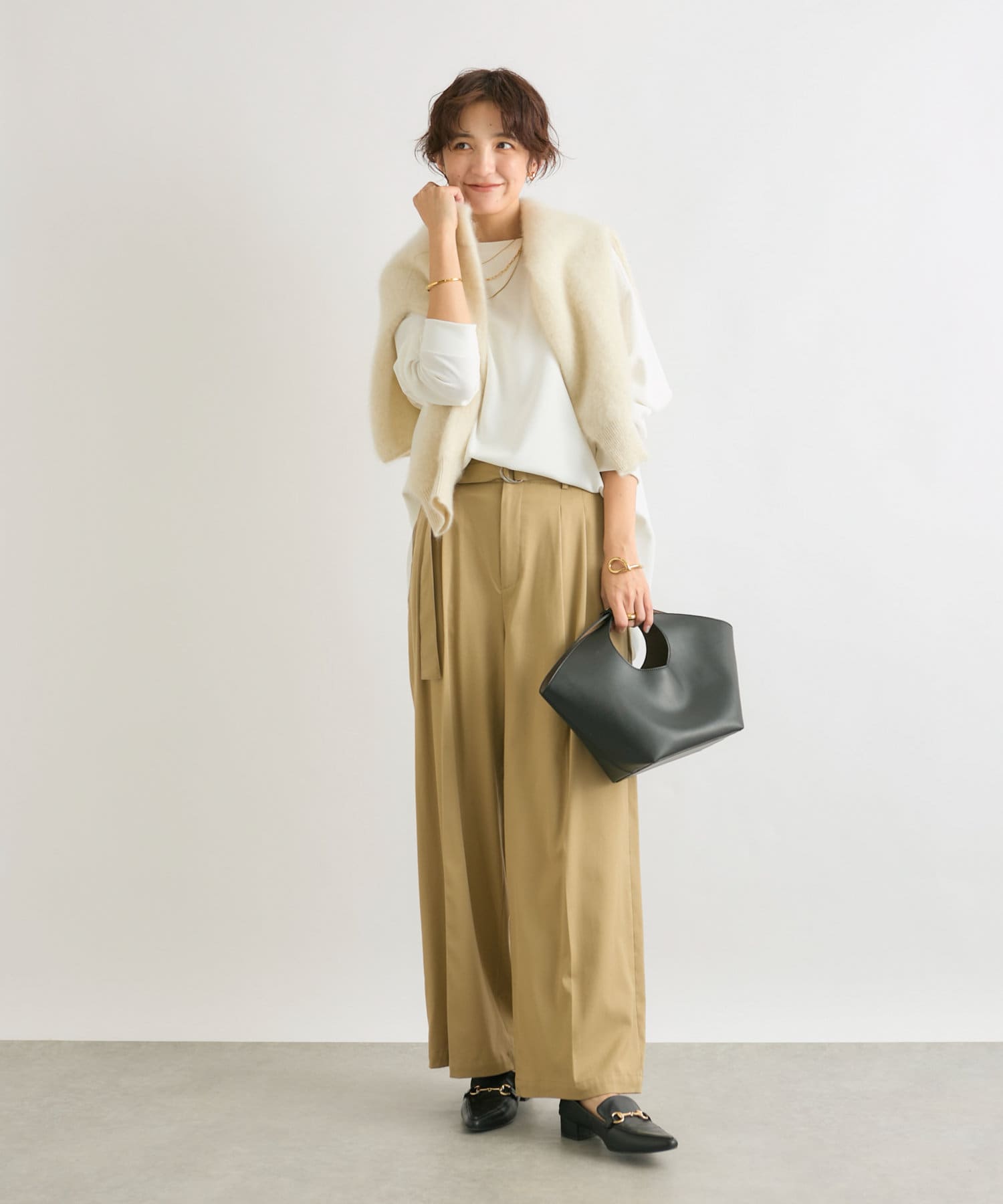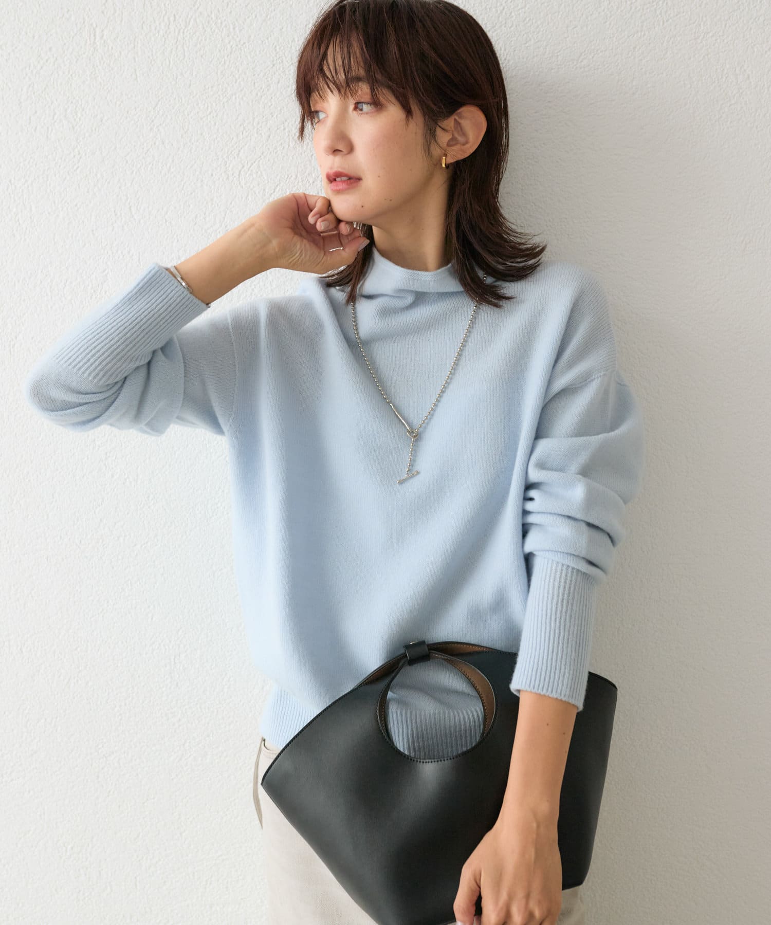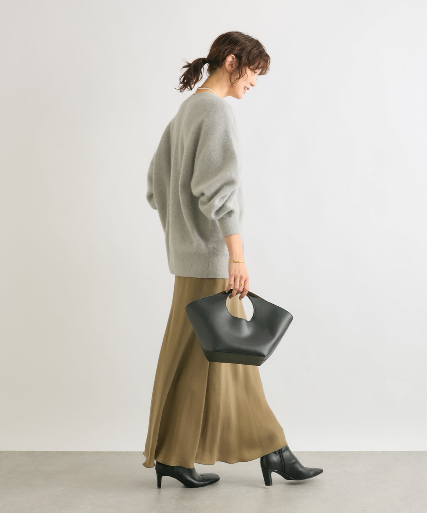 シーズンレスで楽しめるデザインですが、冬の毛足のあるニットやアウターとも相性良く持って頂けるアイテムです。