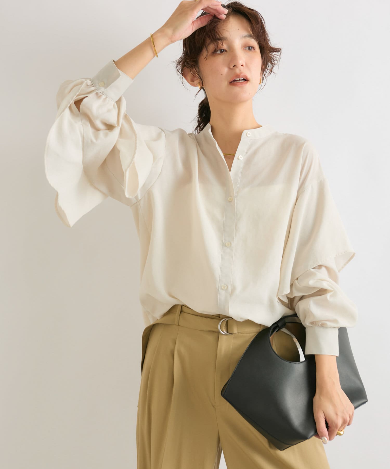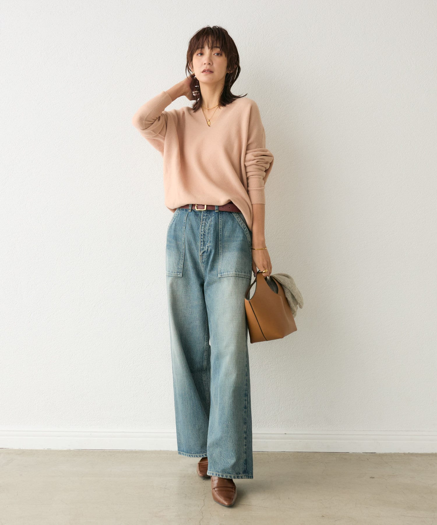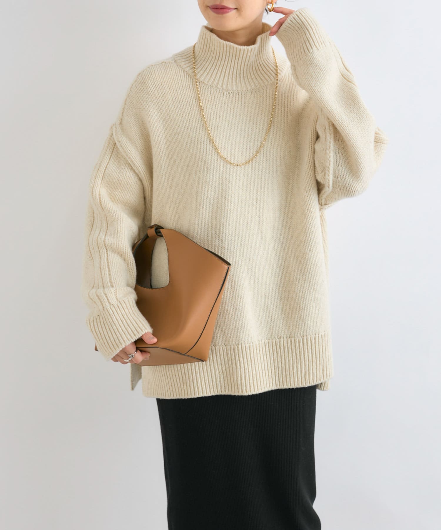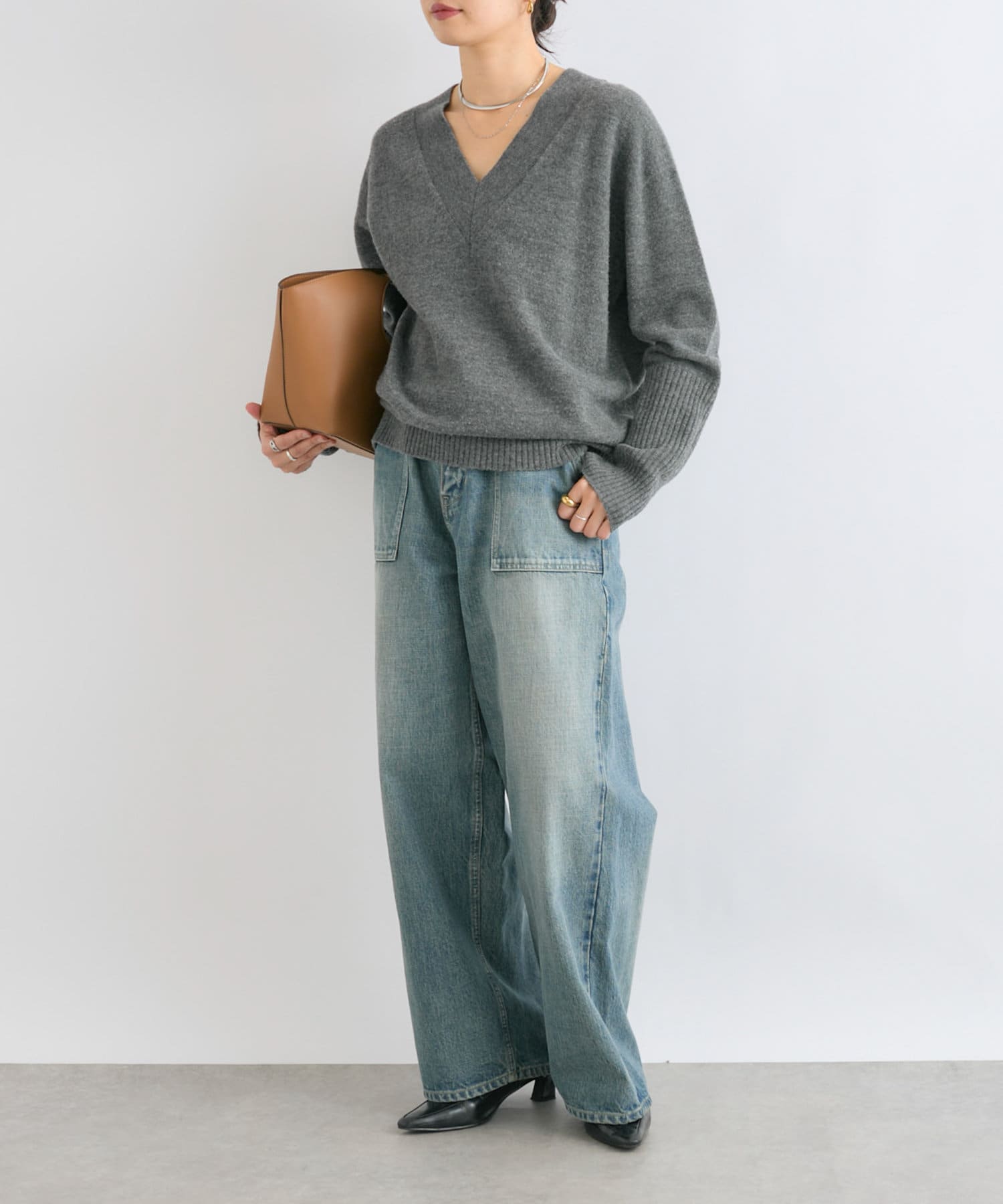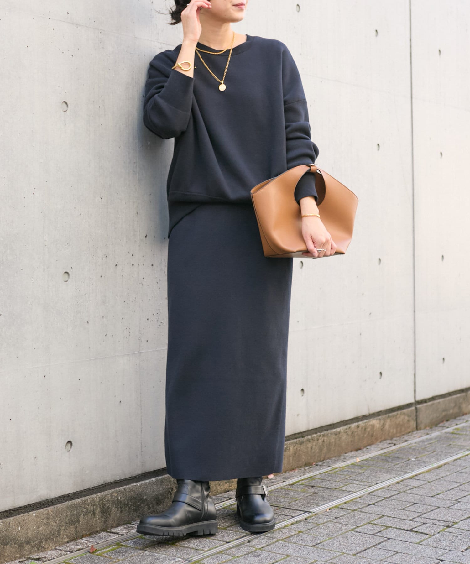 シーズンレスで楽しめるデザインですが、冬の毛足のあるニットやアウターとも相性良く持って頂けるアイテムです。