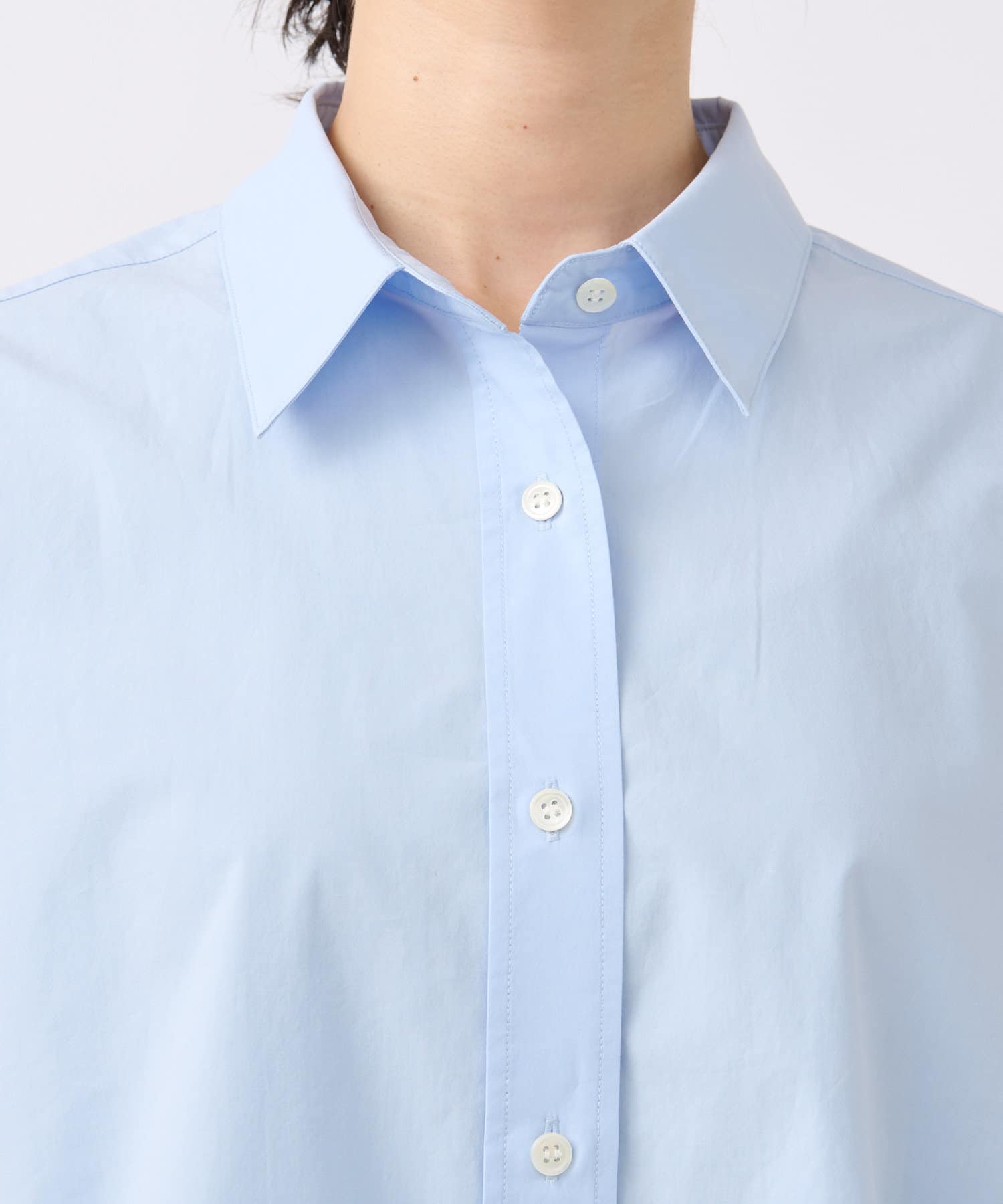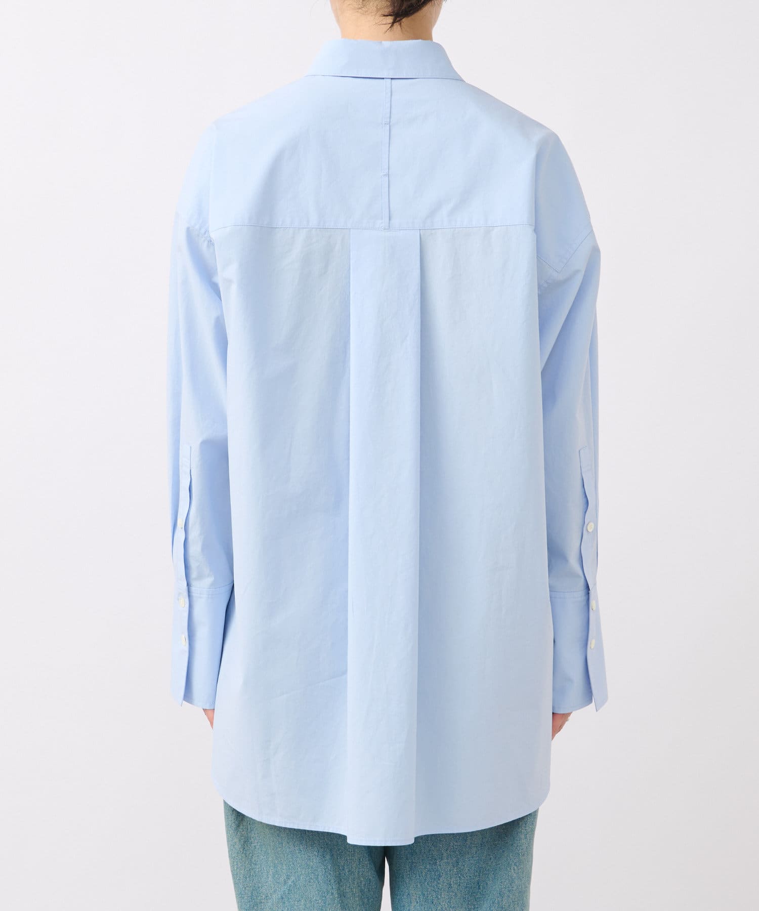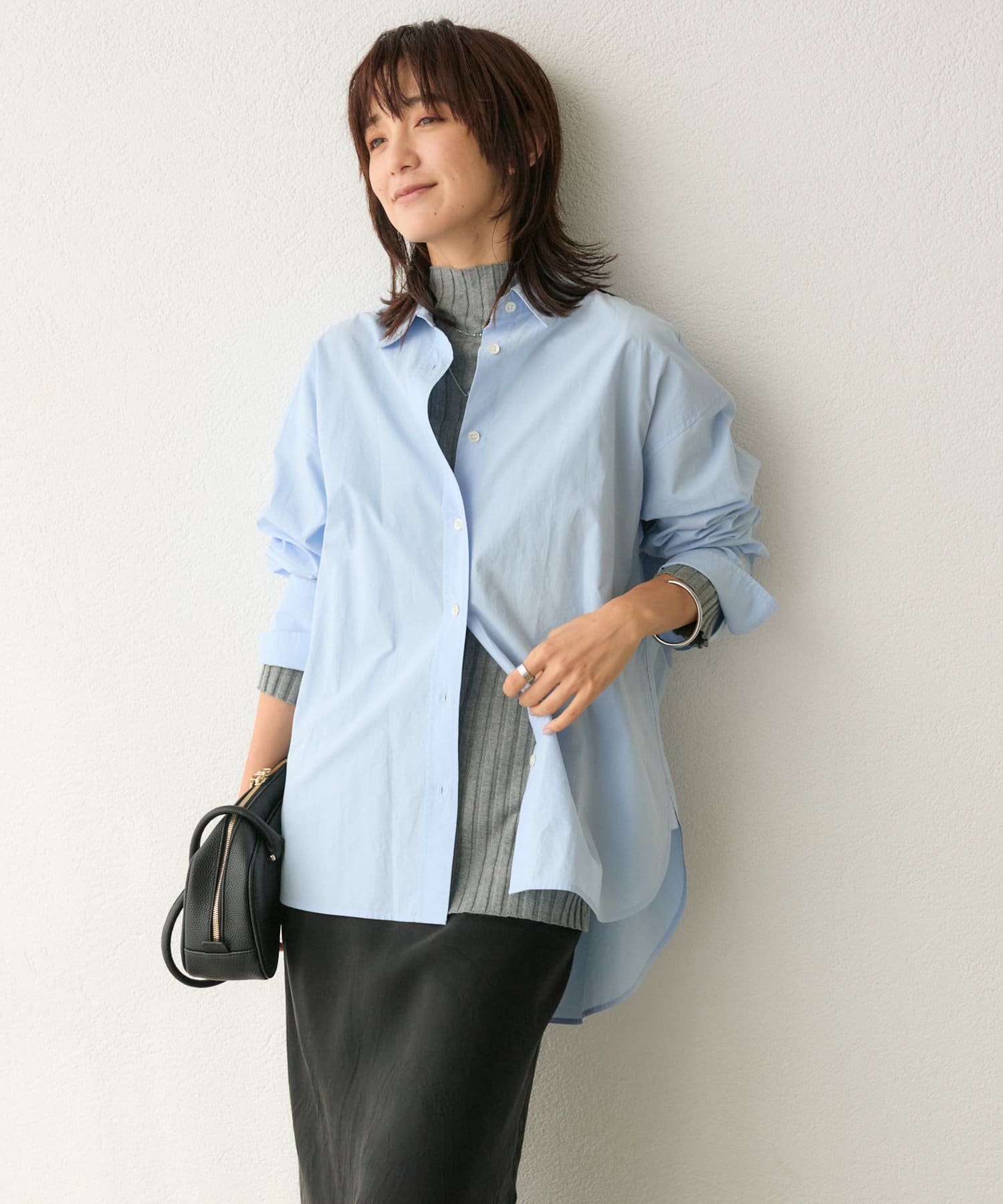シンプルなオーバーシルエットのシャツで、パリッとしすぎないように洗いをかけてカジュアルな風合いになっております。