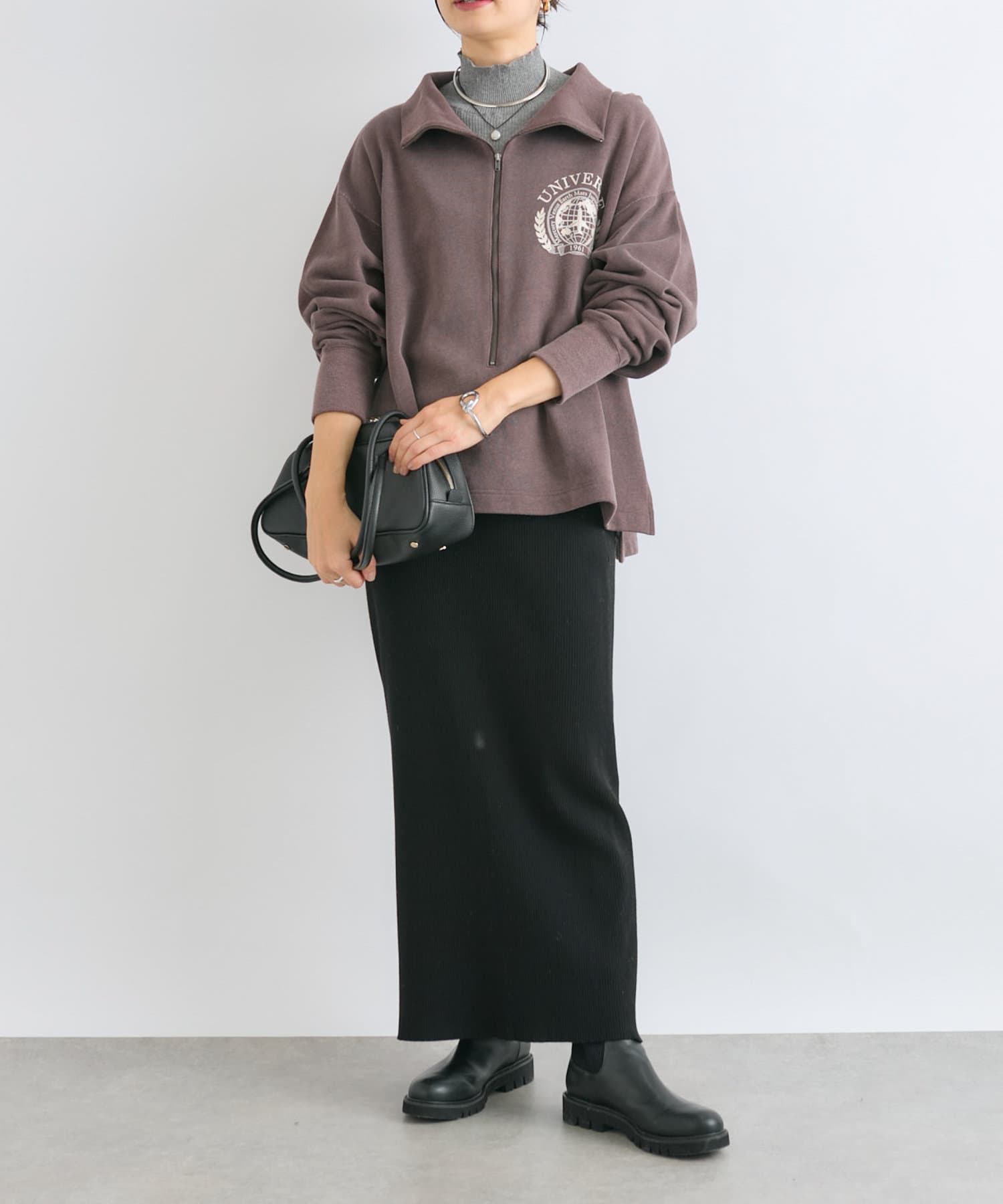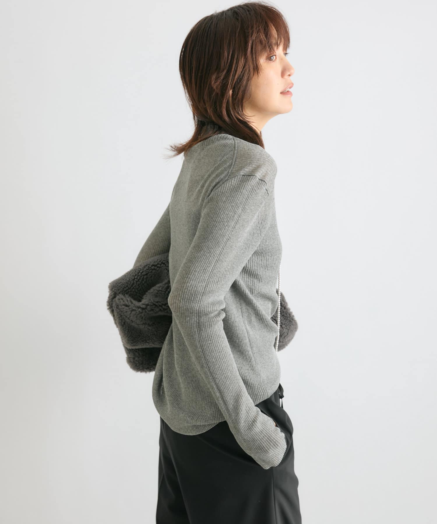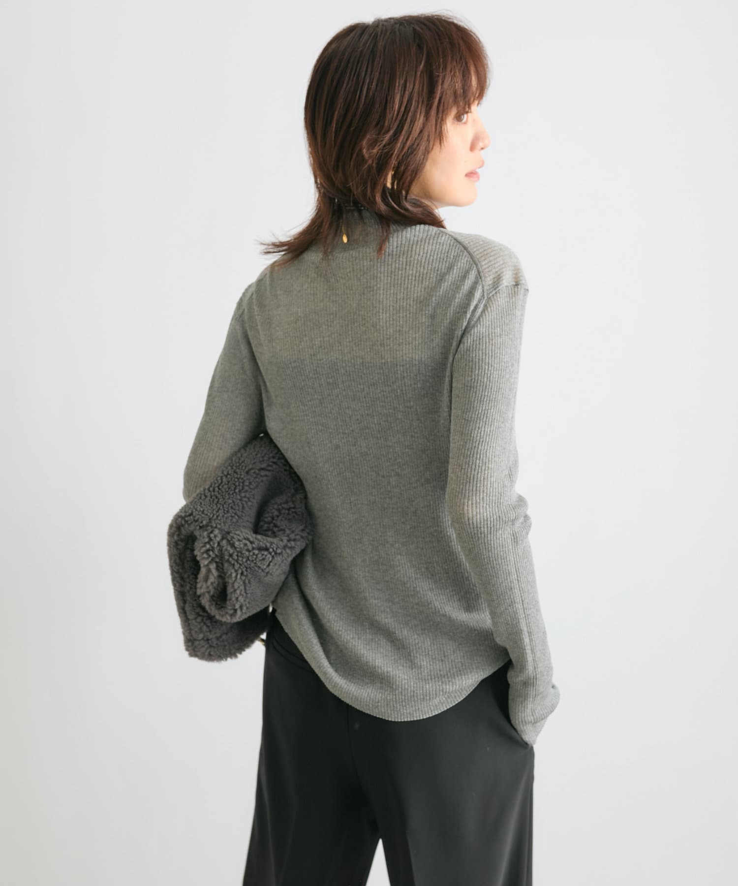 ネック部分も程よくフィットしてくれるので、もたつかずスッキリとしたシルエットに。