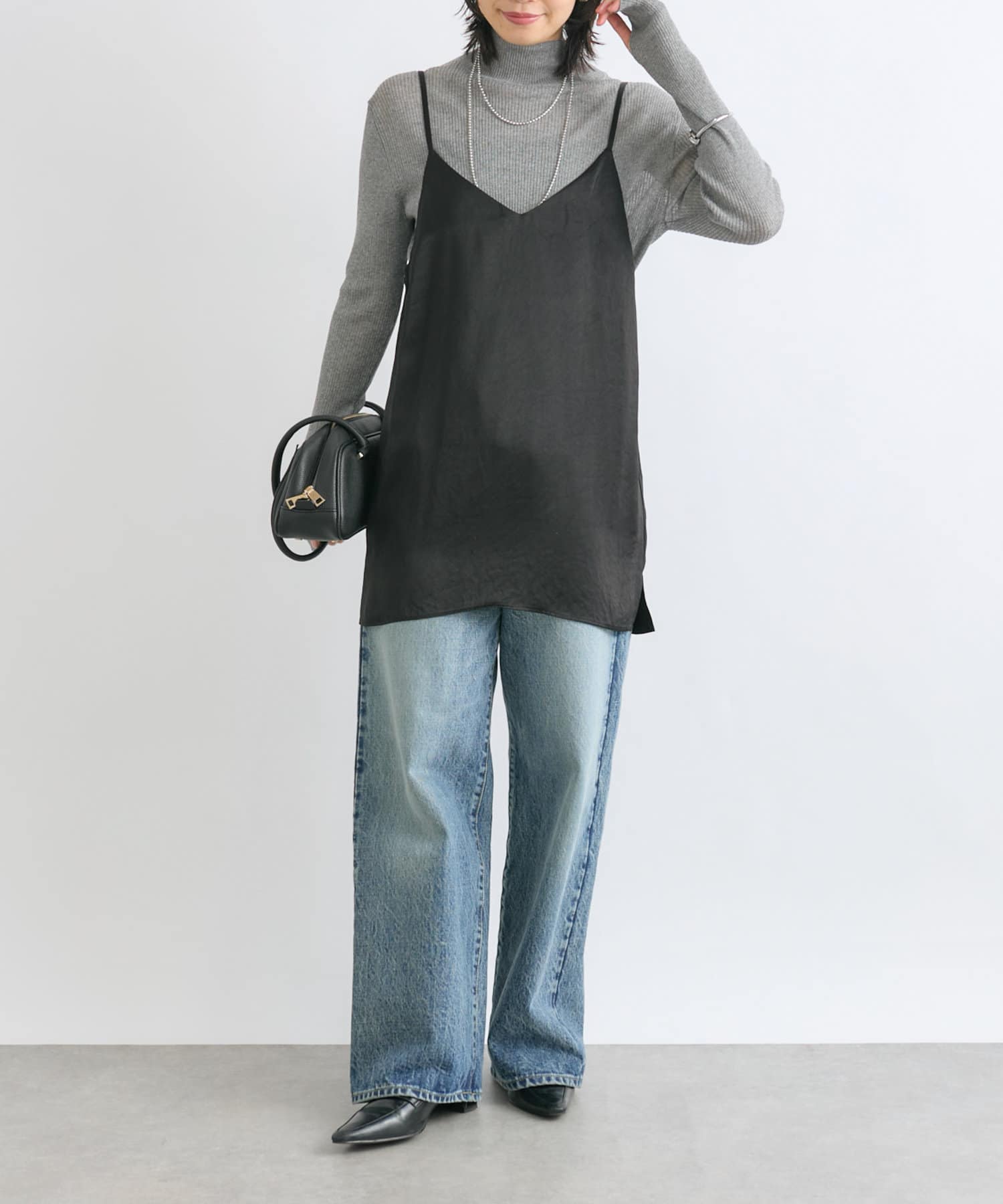 さらっとした素材感と程よいシアー感で、一枚でもニットやスウェットのインに着るレイヤードアイテムとしてもおすすめ。