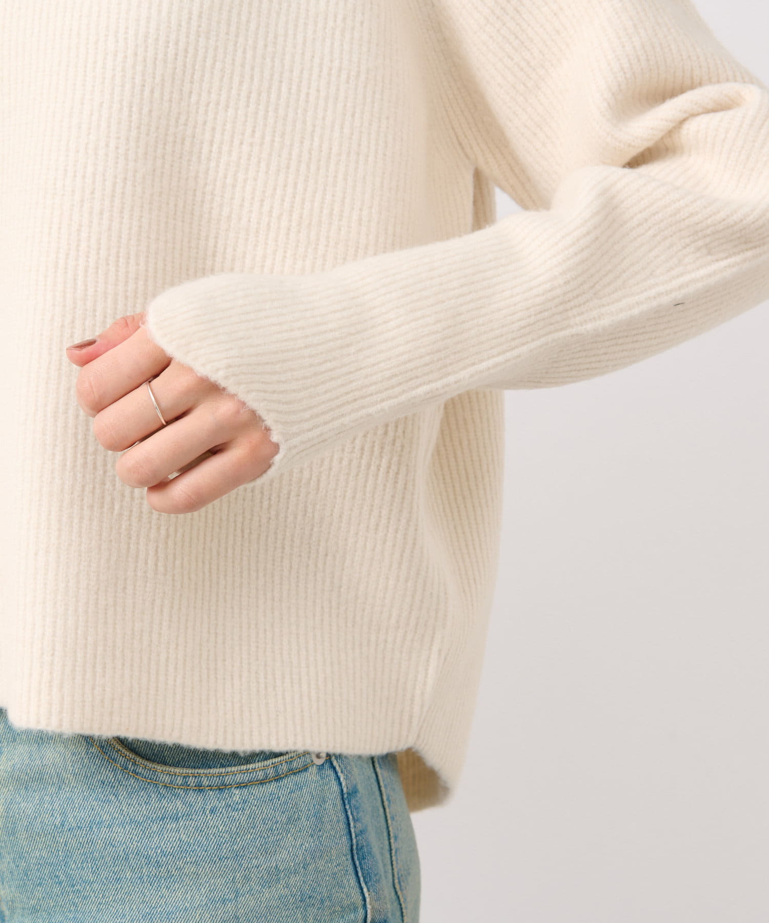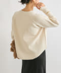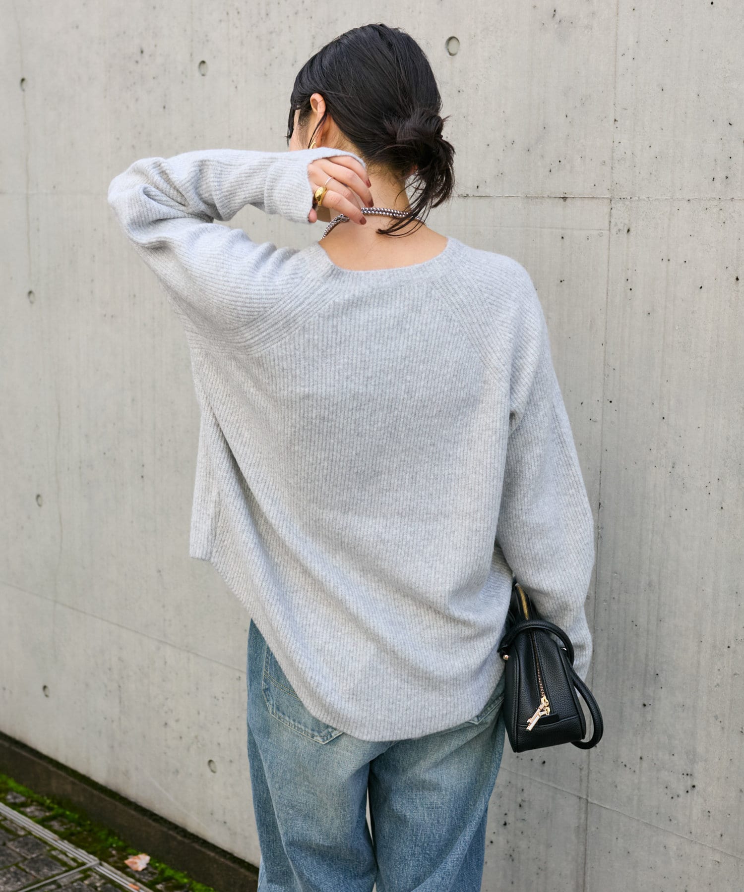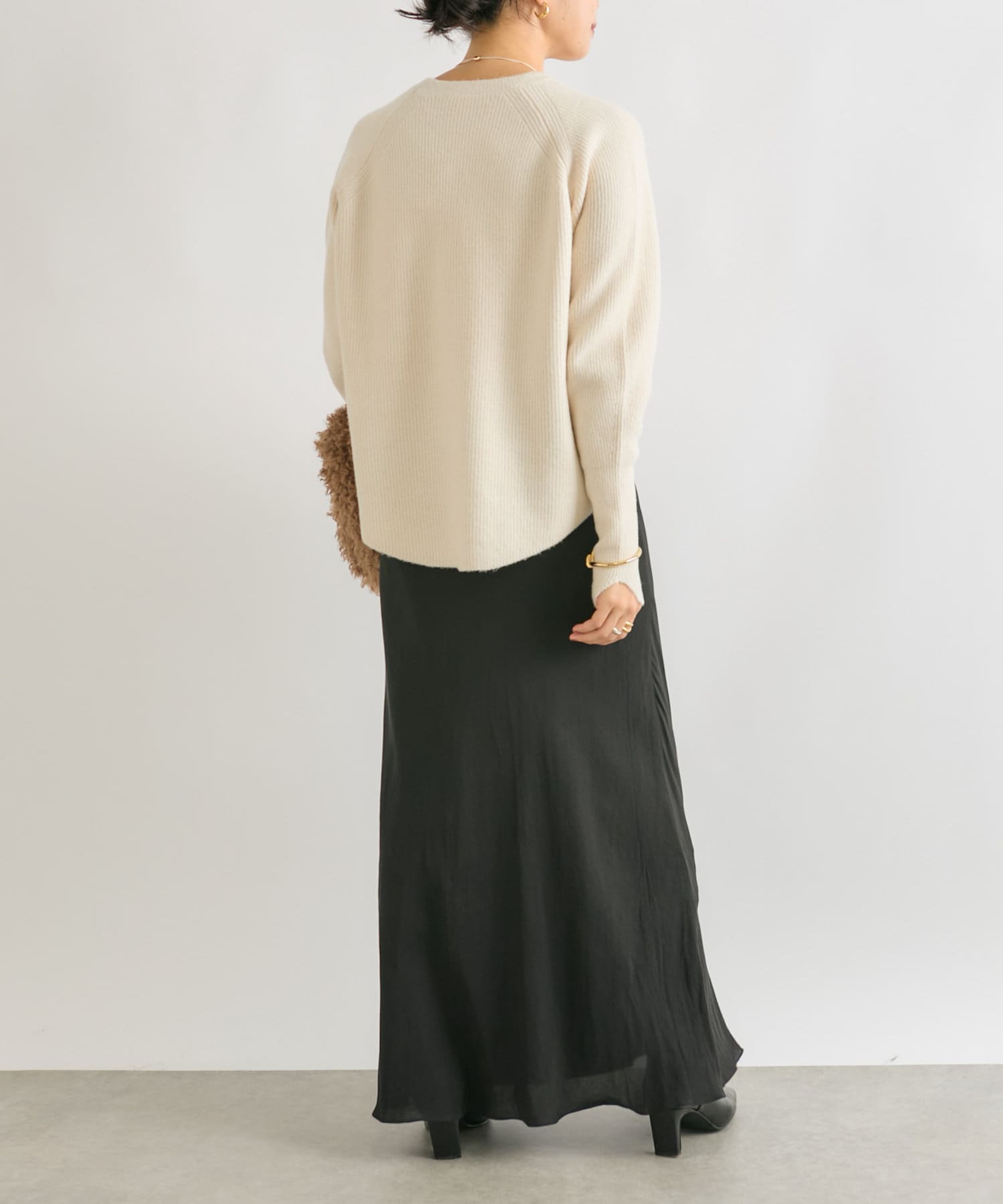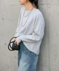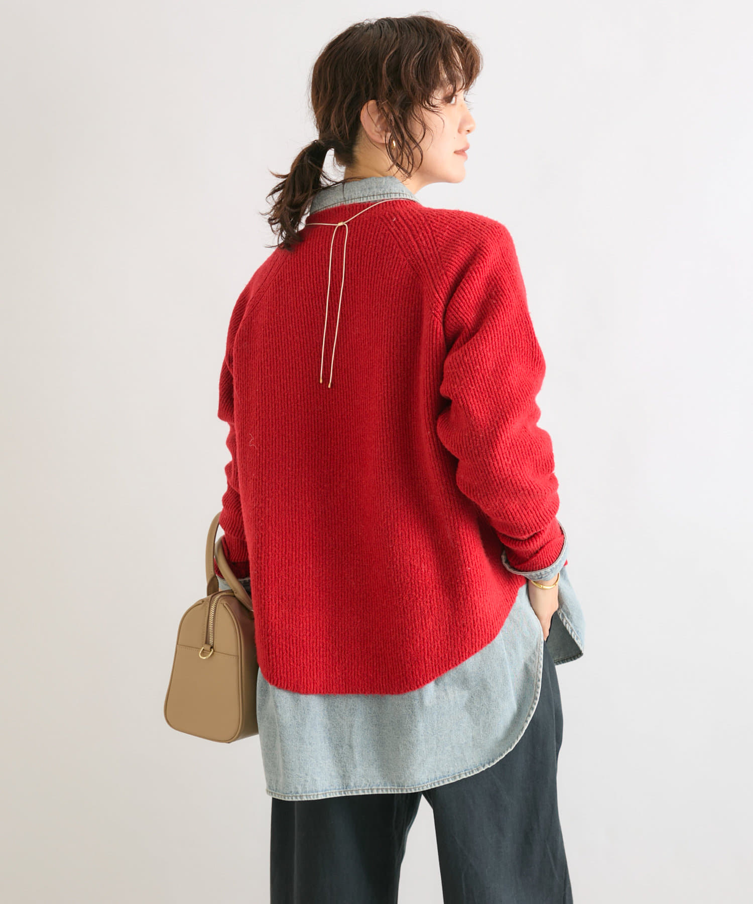 アームウォーマー風の長めの袖と、ヒップ回りをカバーするやや長めの後ろ着丈で着るだけで決まるデザイン。