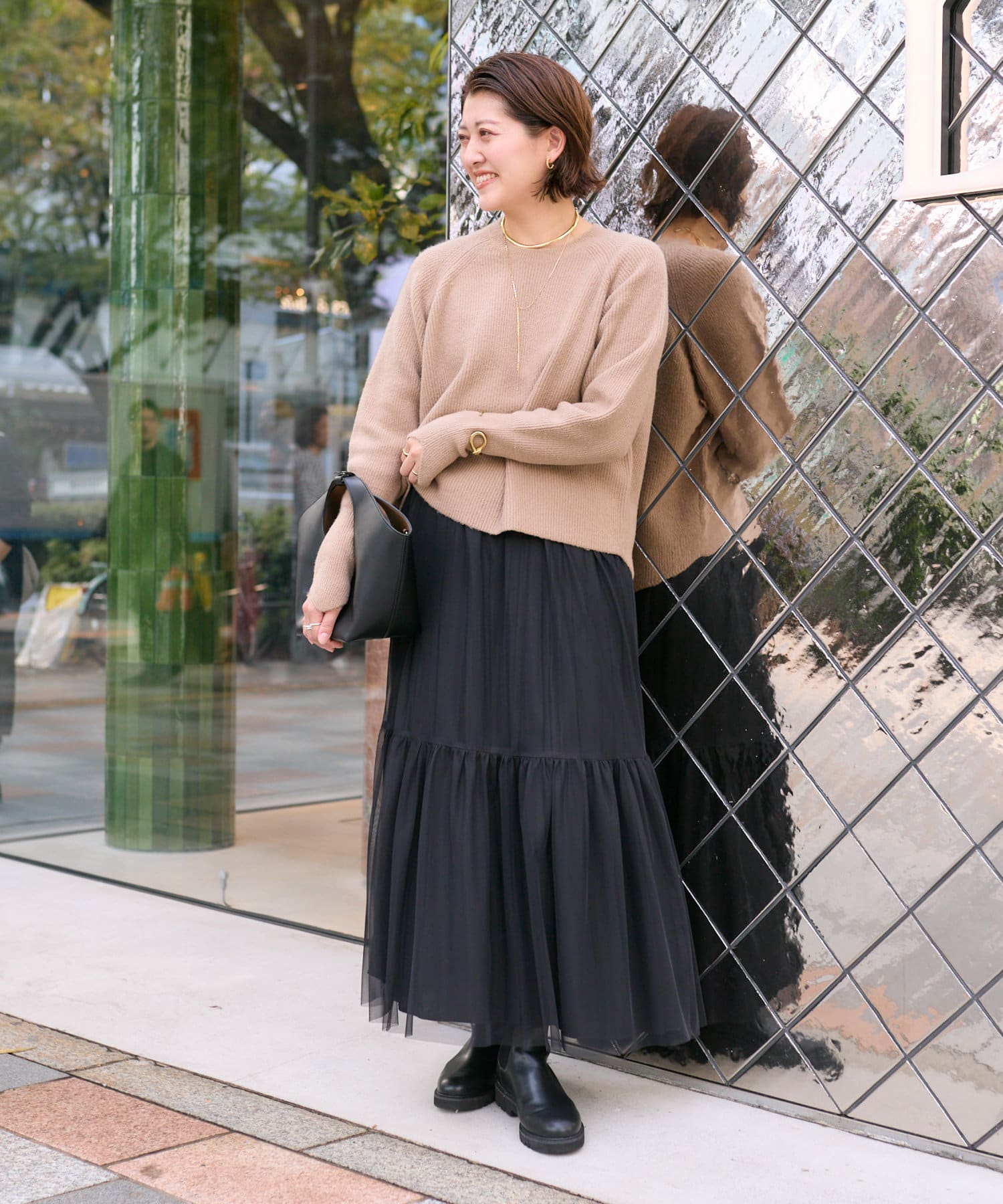 カジュアルにはもちろんフェミニンにも着れるデザインで、デイリーに着回したい一着。
