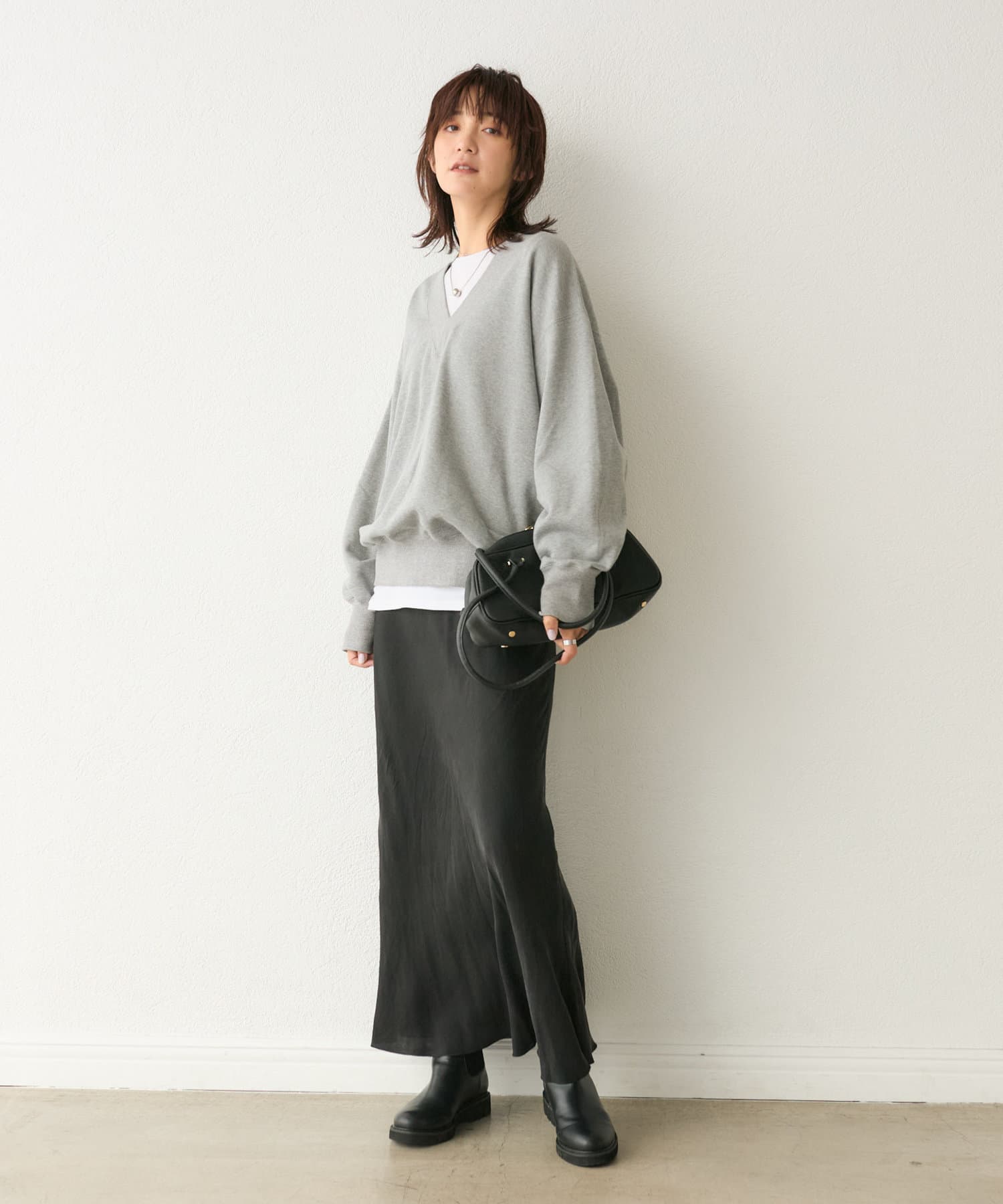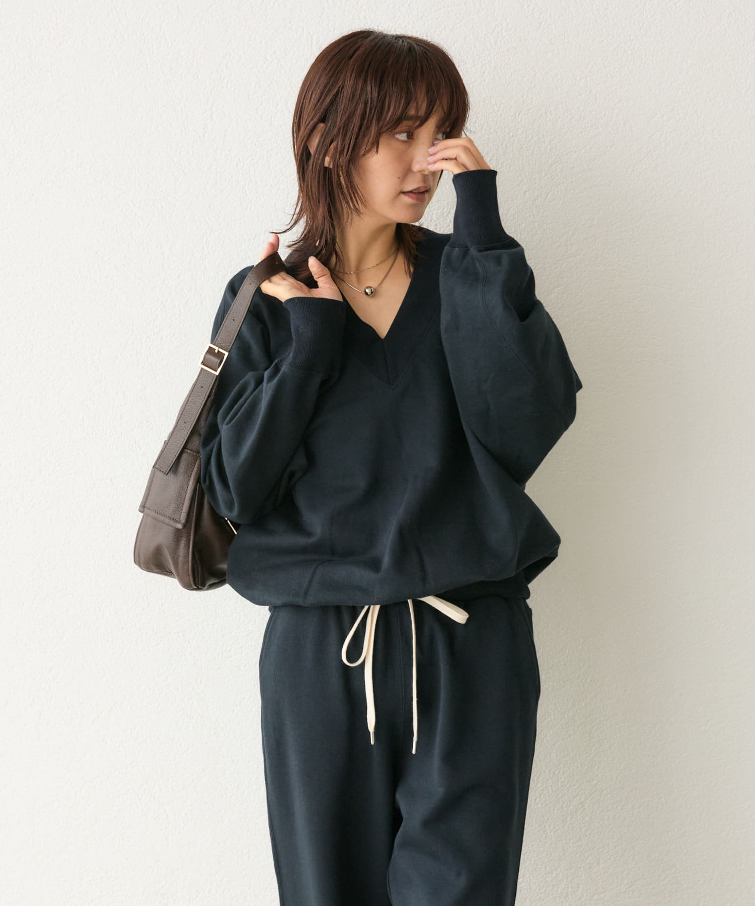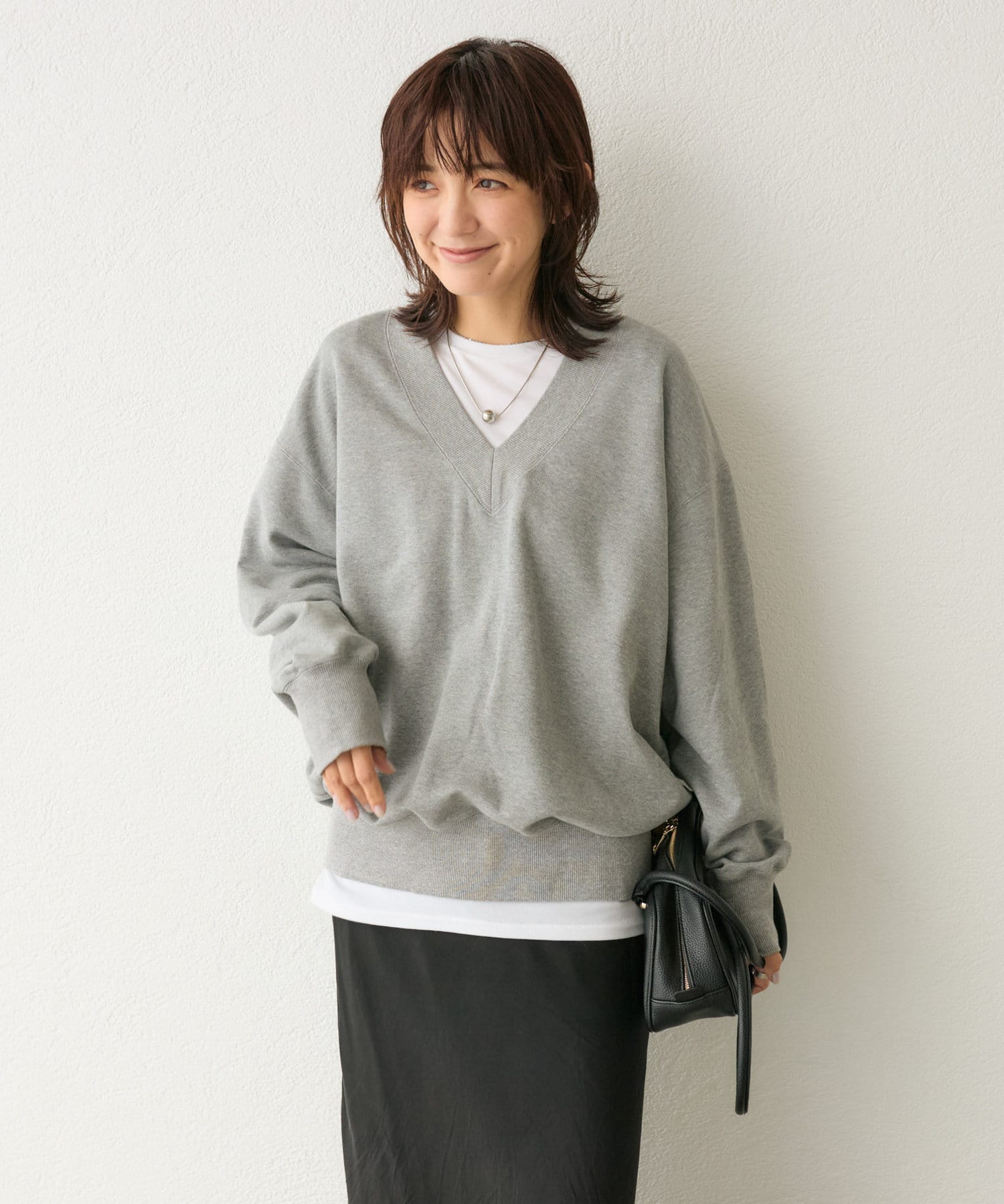 Vネックでゆったりとした抜け感のあるシルエットが、カジュアルになりすぎずに着用いただける大人のスウェット。