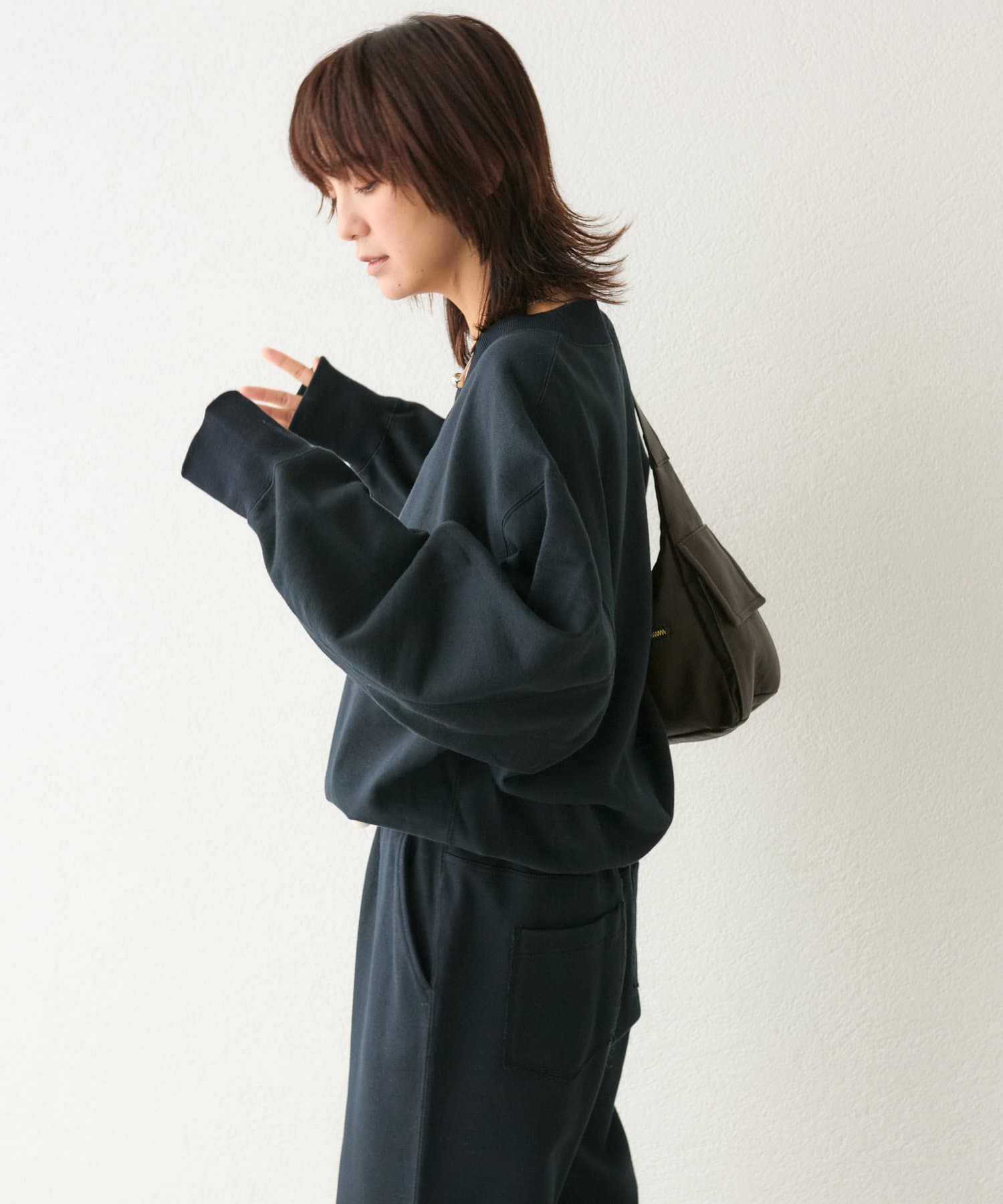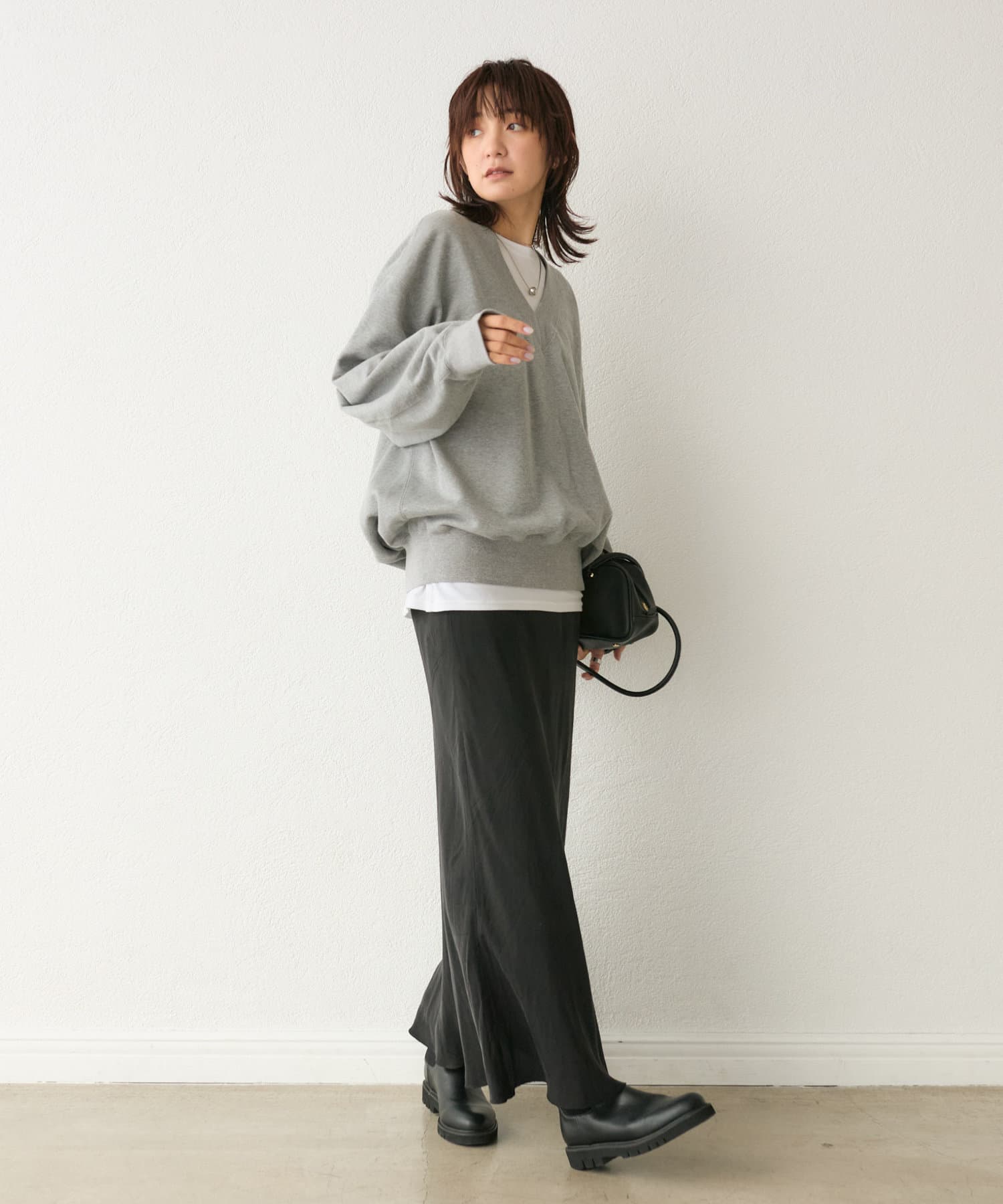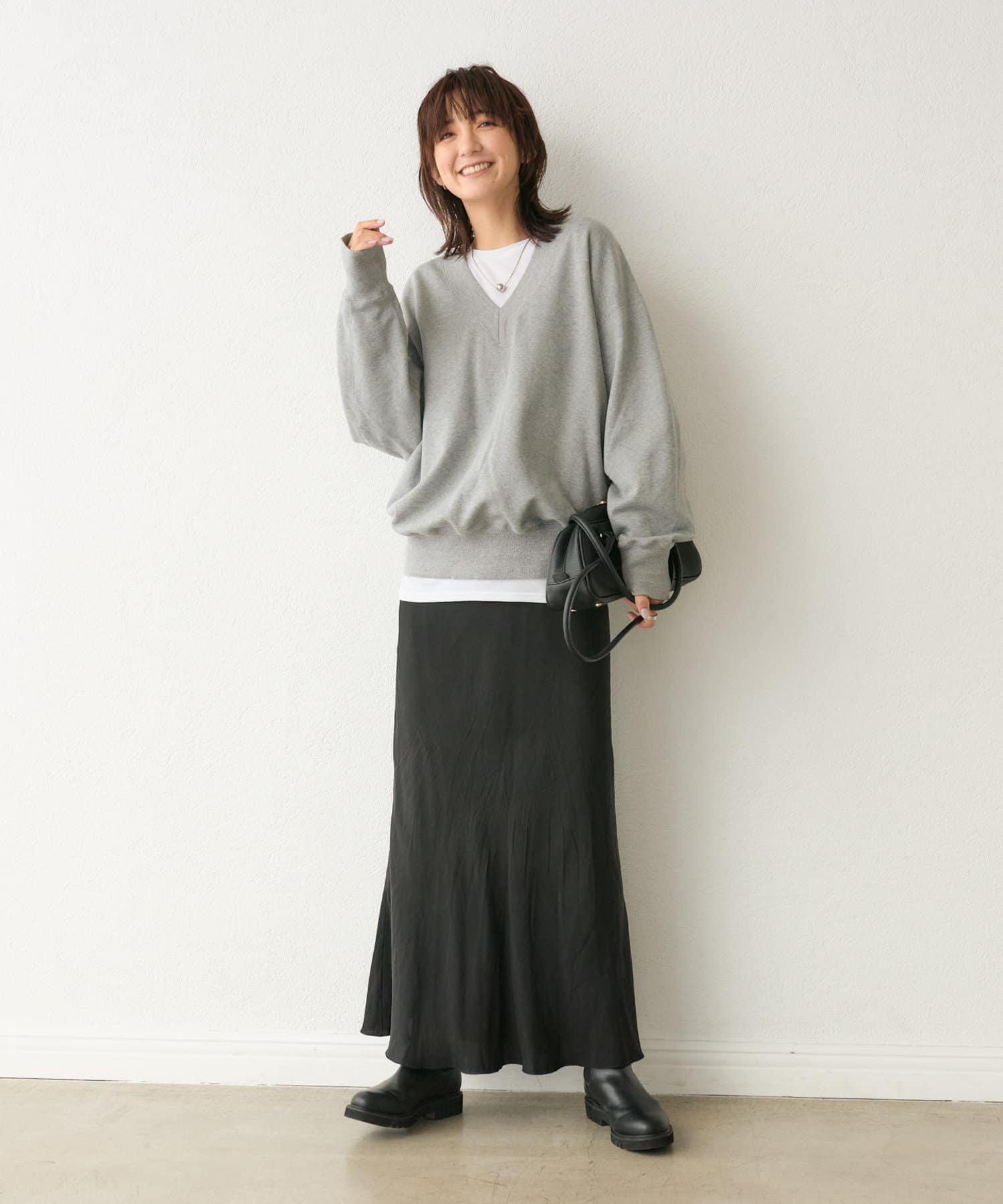 Vネックでゆったりとした抜け感のあるシルエットが、カジュアルになりすぎずに着用いただける大人のスウェット。